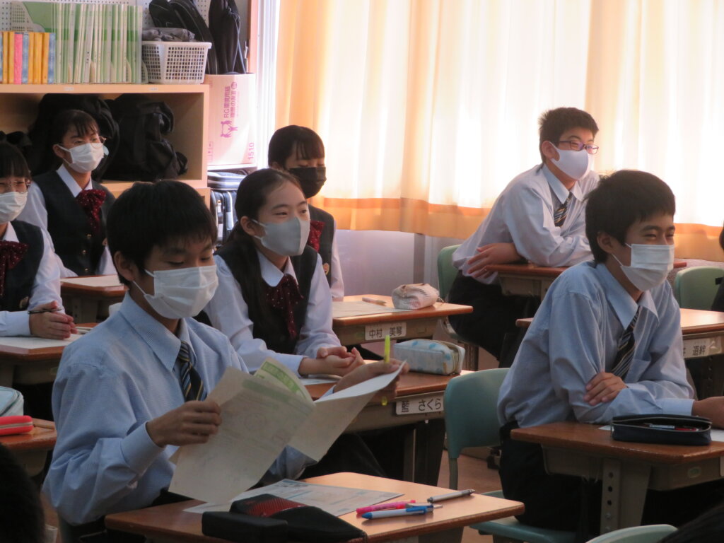 J1-Aは、より良いクラスにするために、クラスの課題について考えていました。まとめたものを後日発表するようです。J1-Bは、生きる力をテーマに、生きるためには何が必要か、意見を出し合っていました。