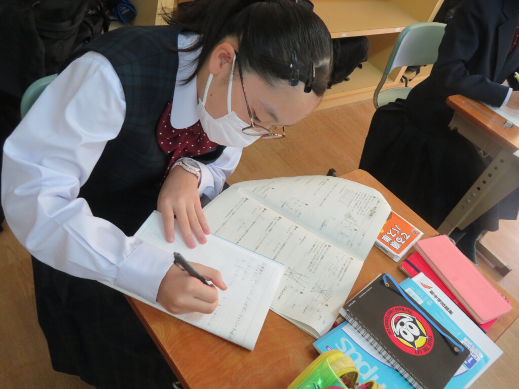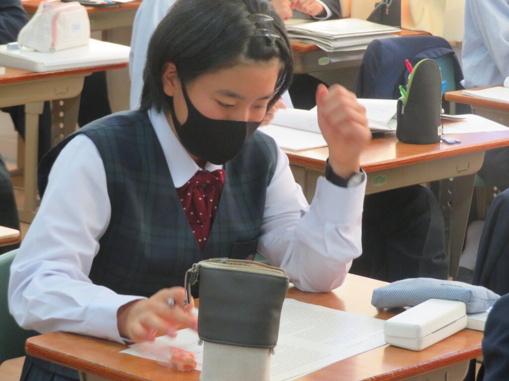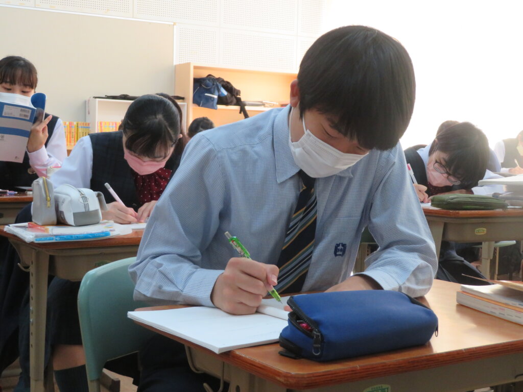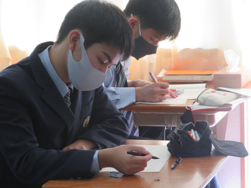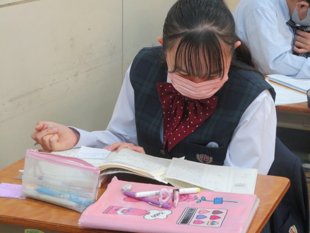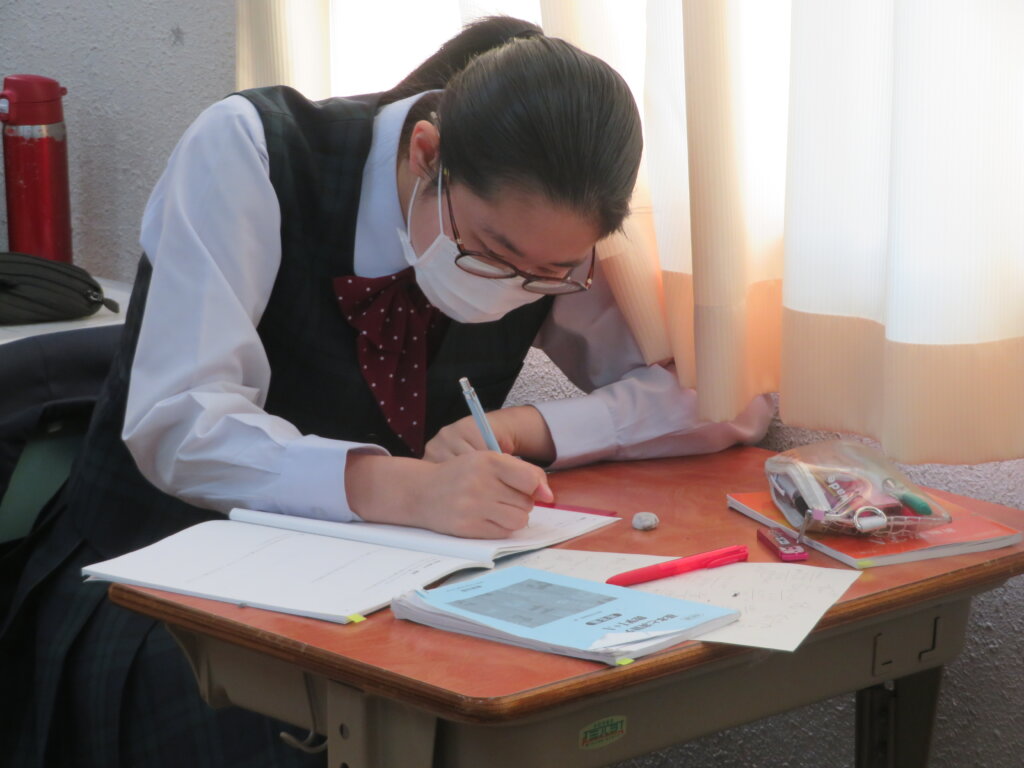 本日は、通常土曜授業です。黙想の様子を写真にて紹介します。毎時間、授業開始1分前に黙想をします。姿勢を正し、心を落ち着かせ授業に臨みます。