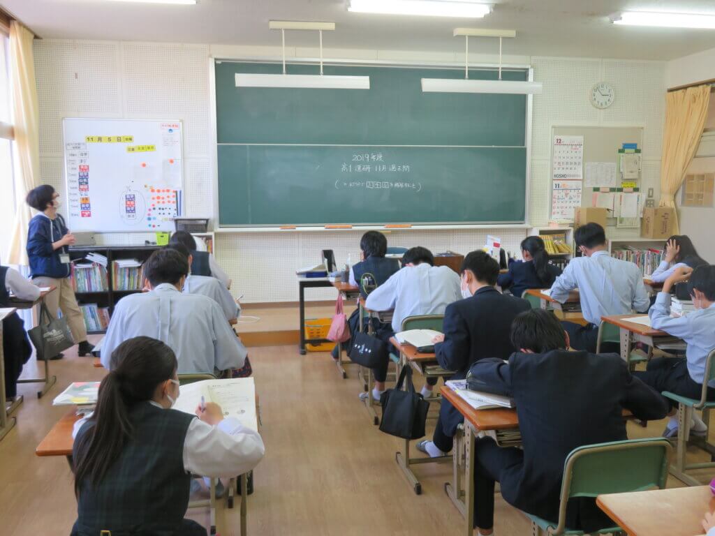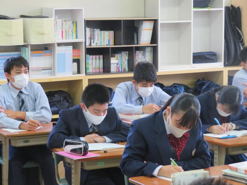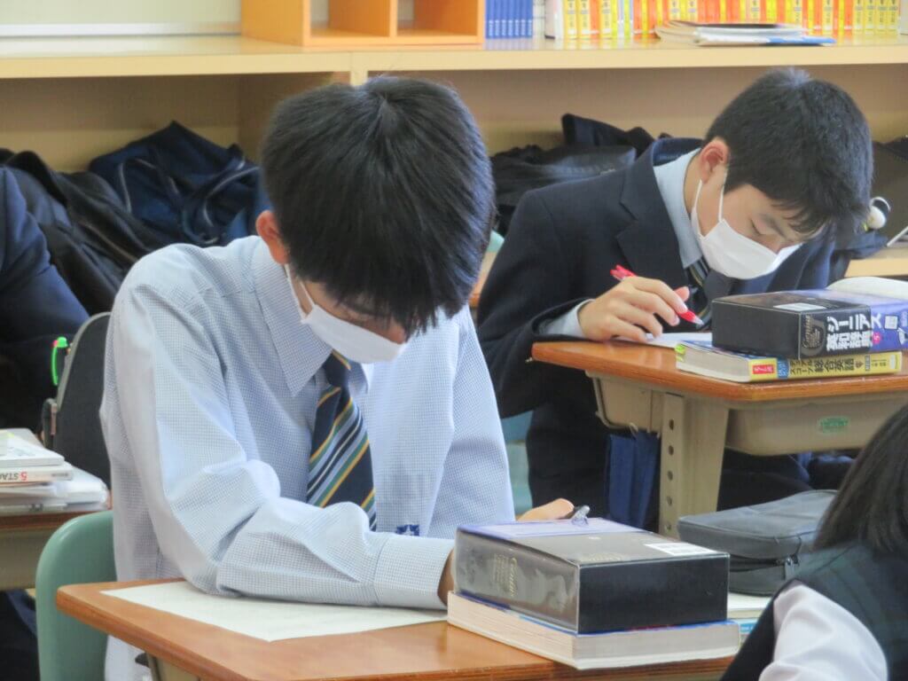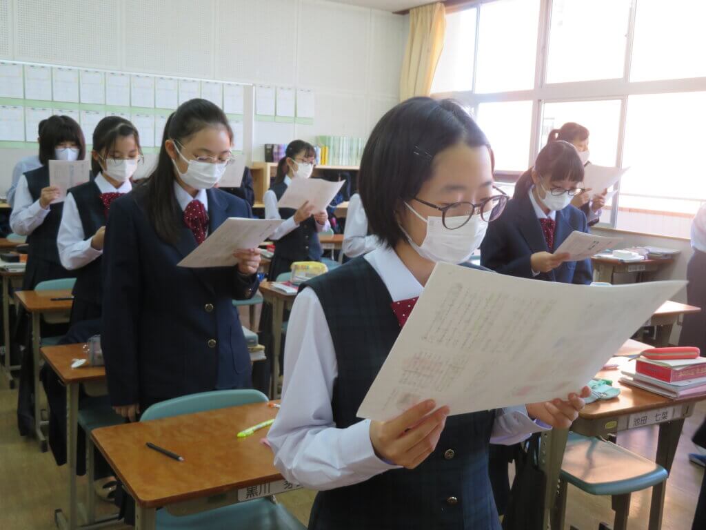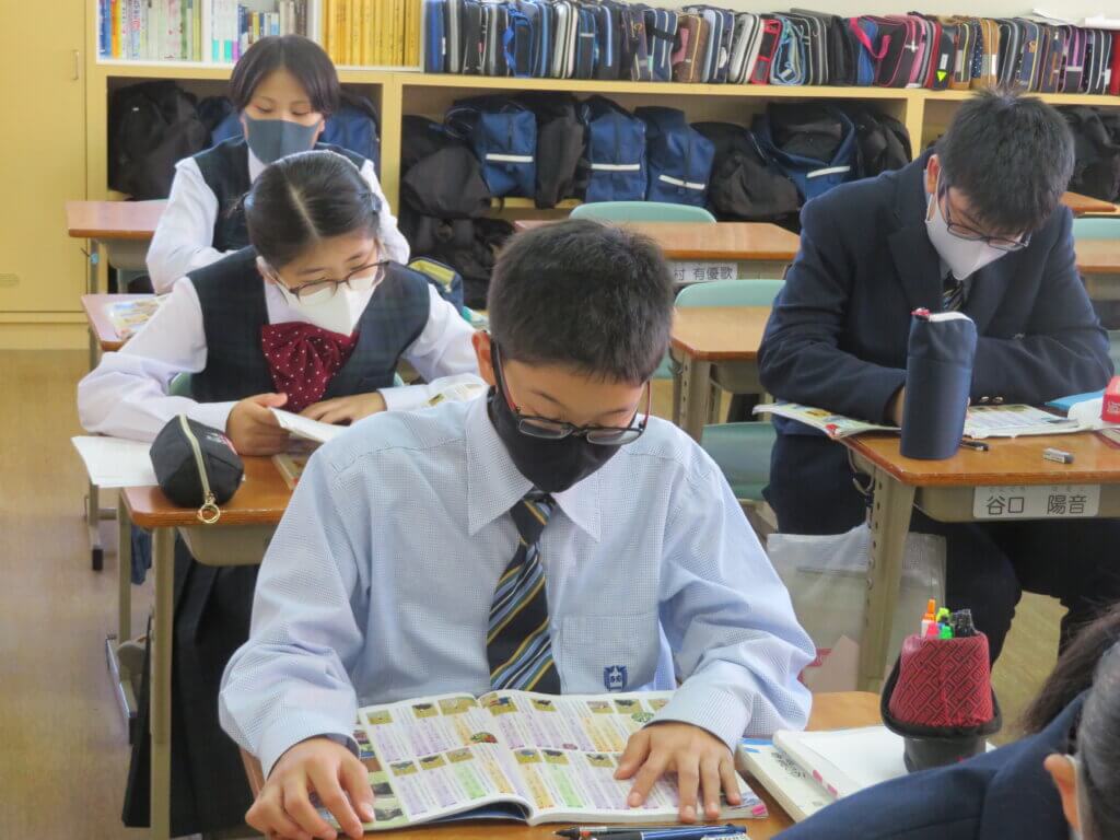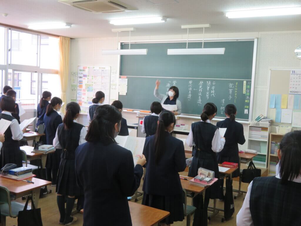 J1生の国語発展クラスは、全員で枕草子を音読していました。