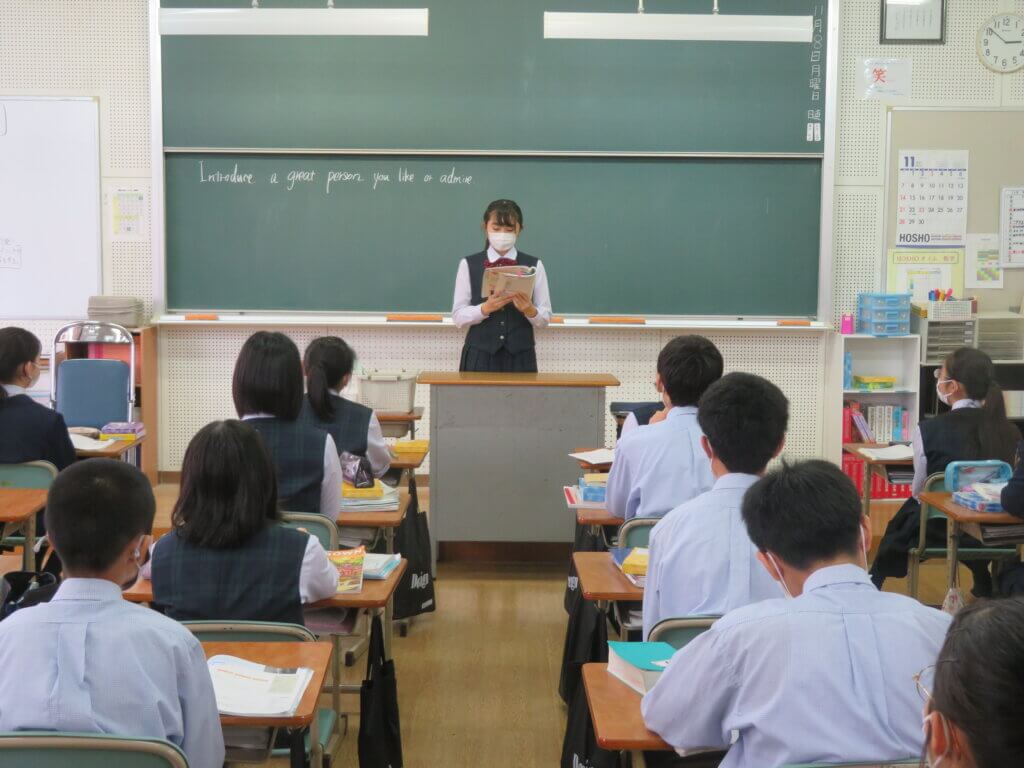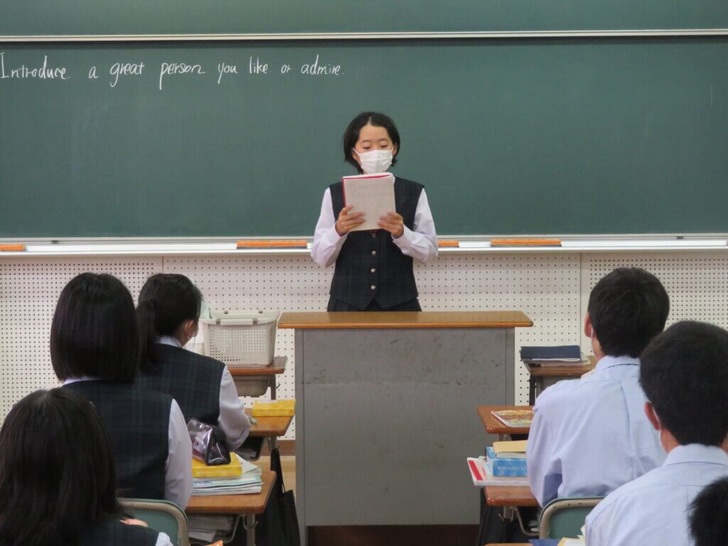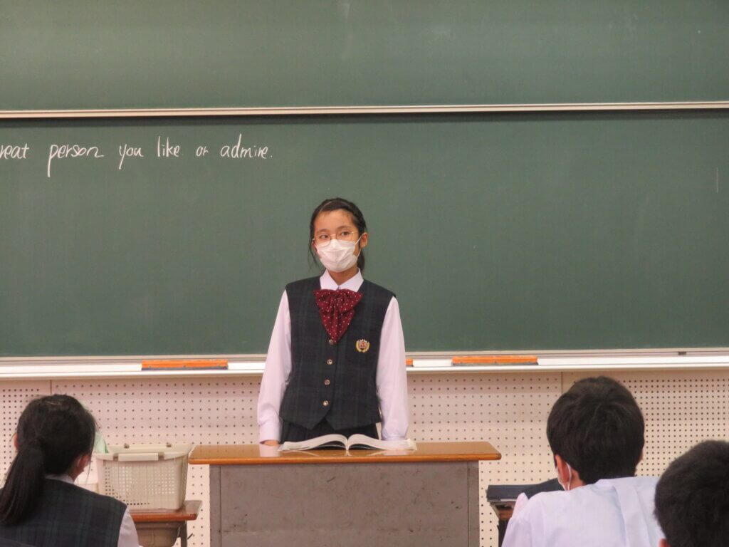 本日J1英語の授業で憧れの人物に関するスピーチを行いました。