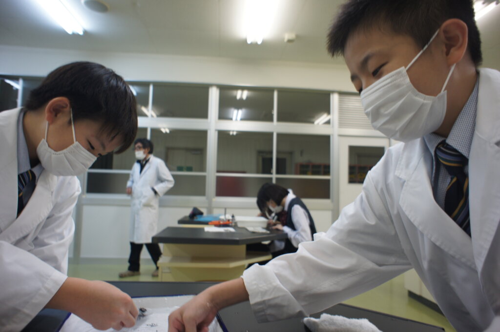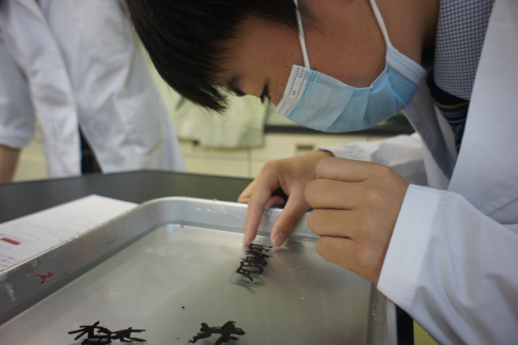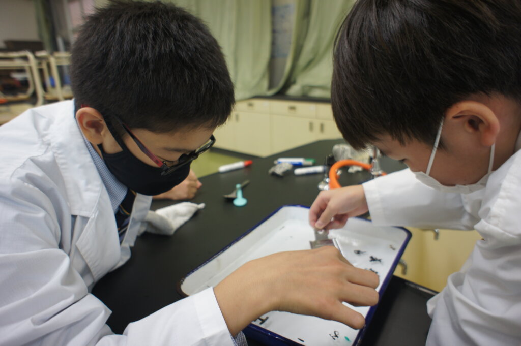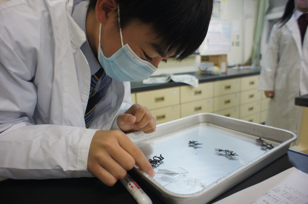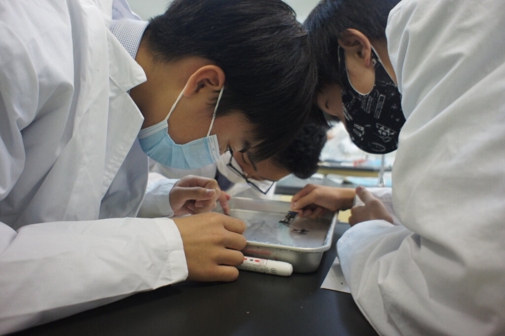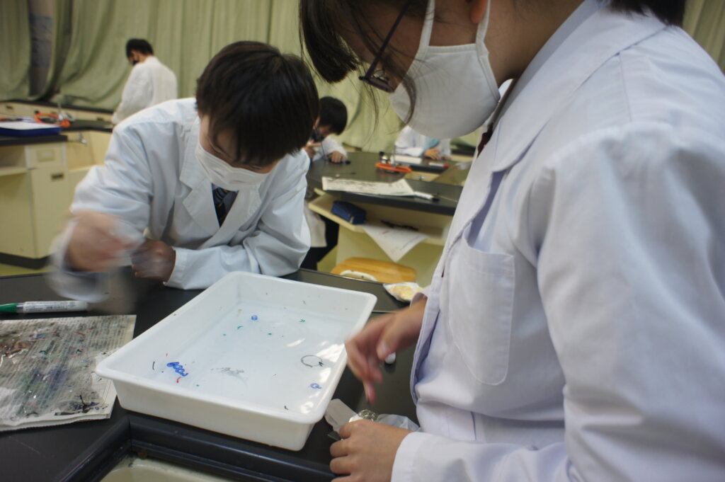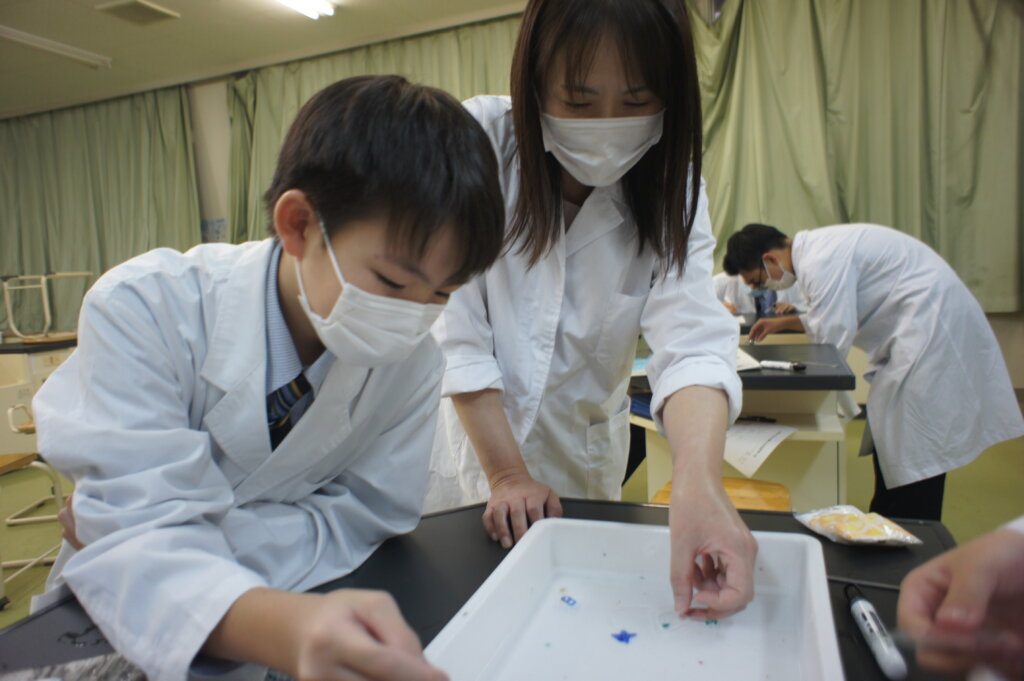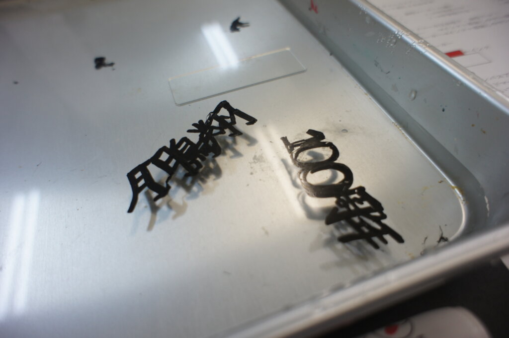 スライドガラスを水につけ、文字をきれいに浮かせるのが難しかった、と教えてくれました。