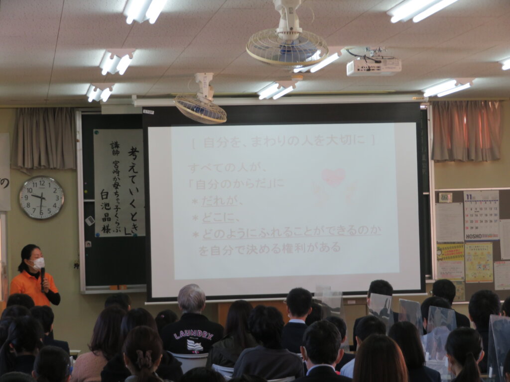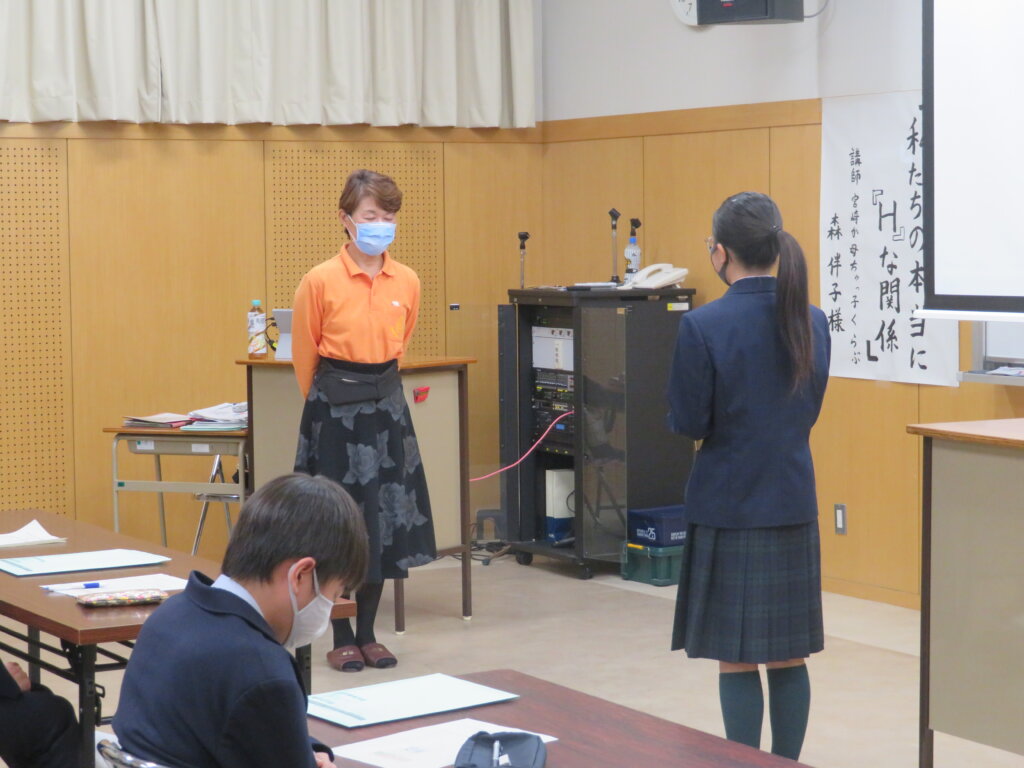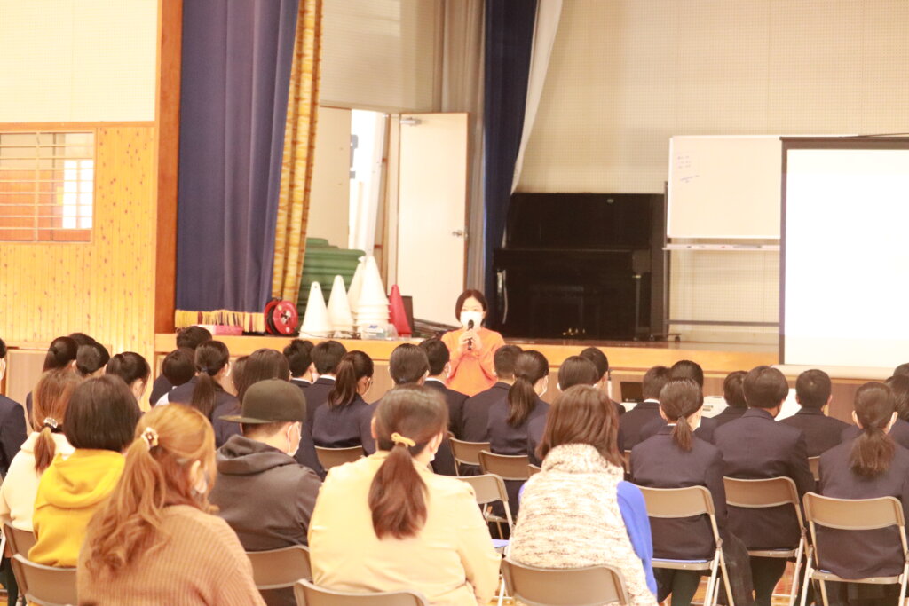 各学年、講師紹介や会場までの誘導、演題作成、お礼の言葉、会場設営など、保健体育委員が行ってくれました。ありがとうございます。