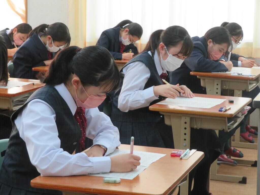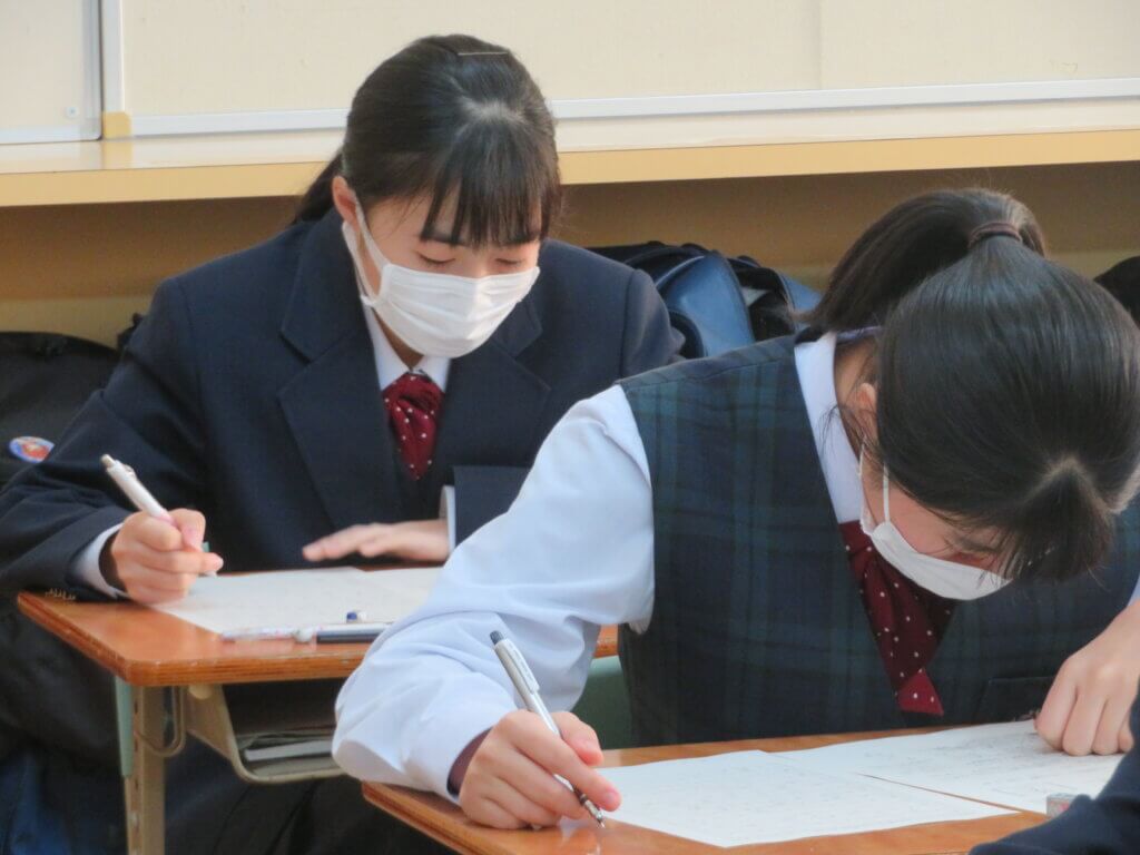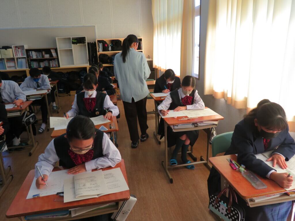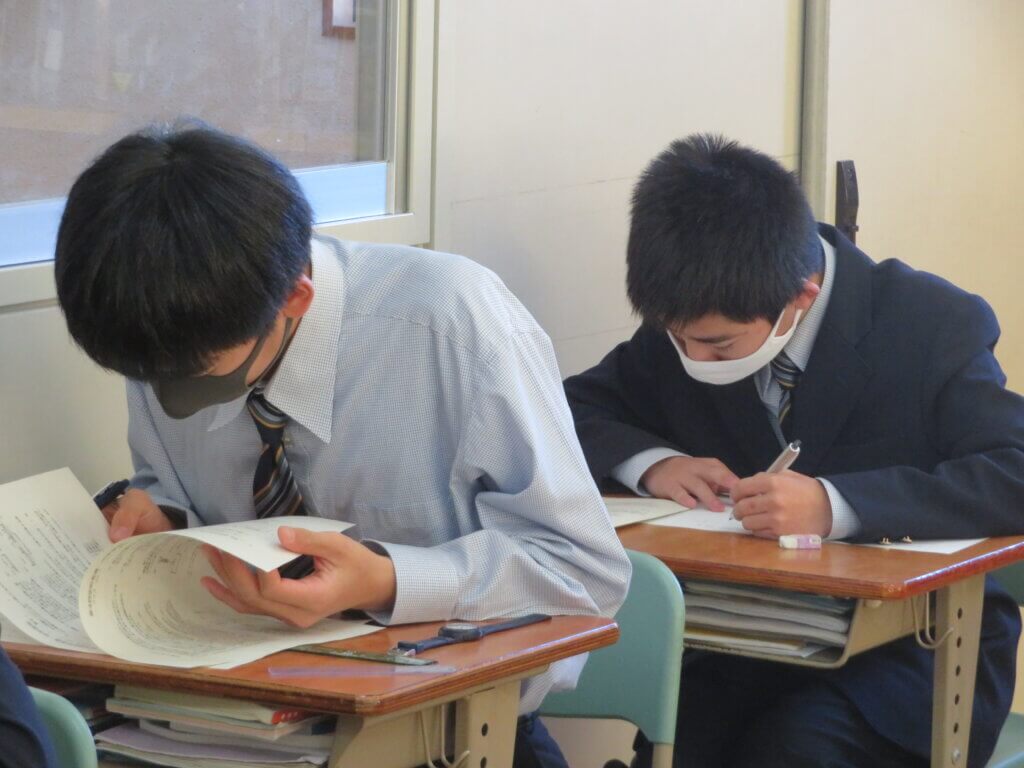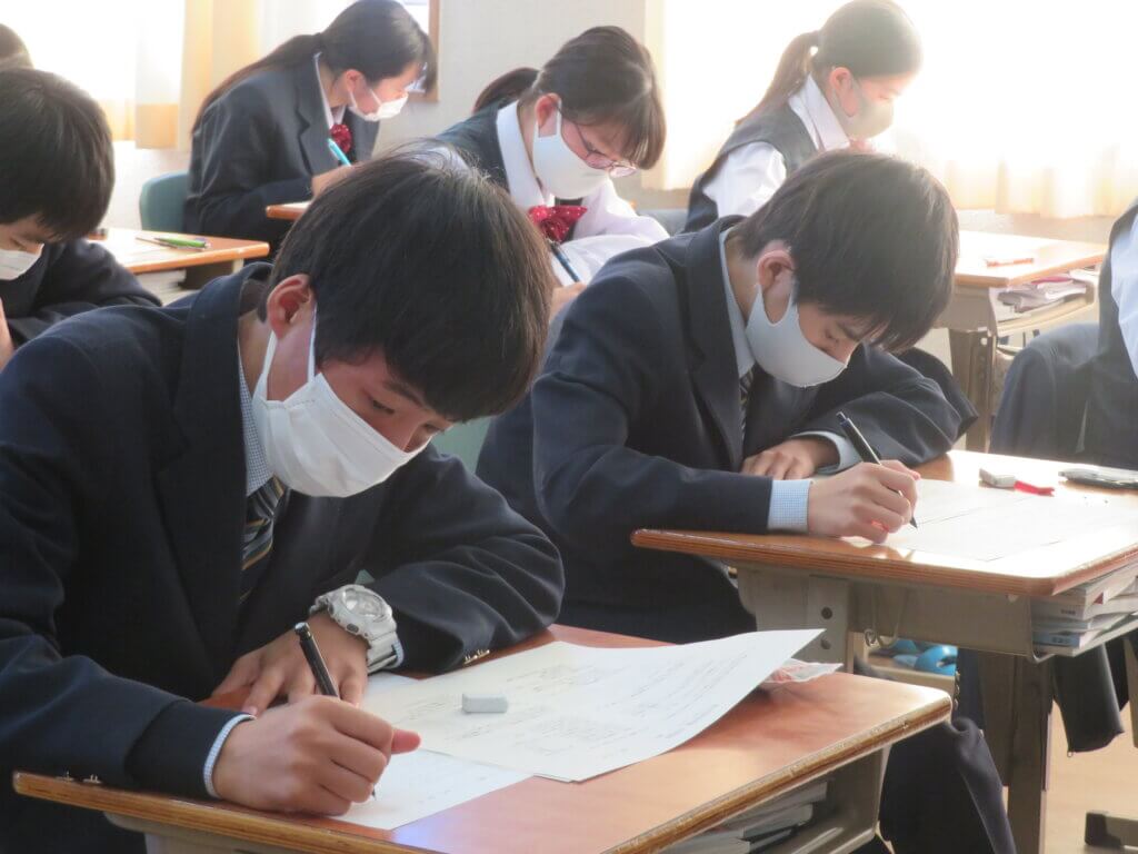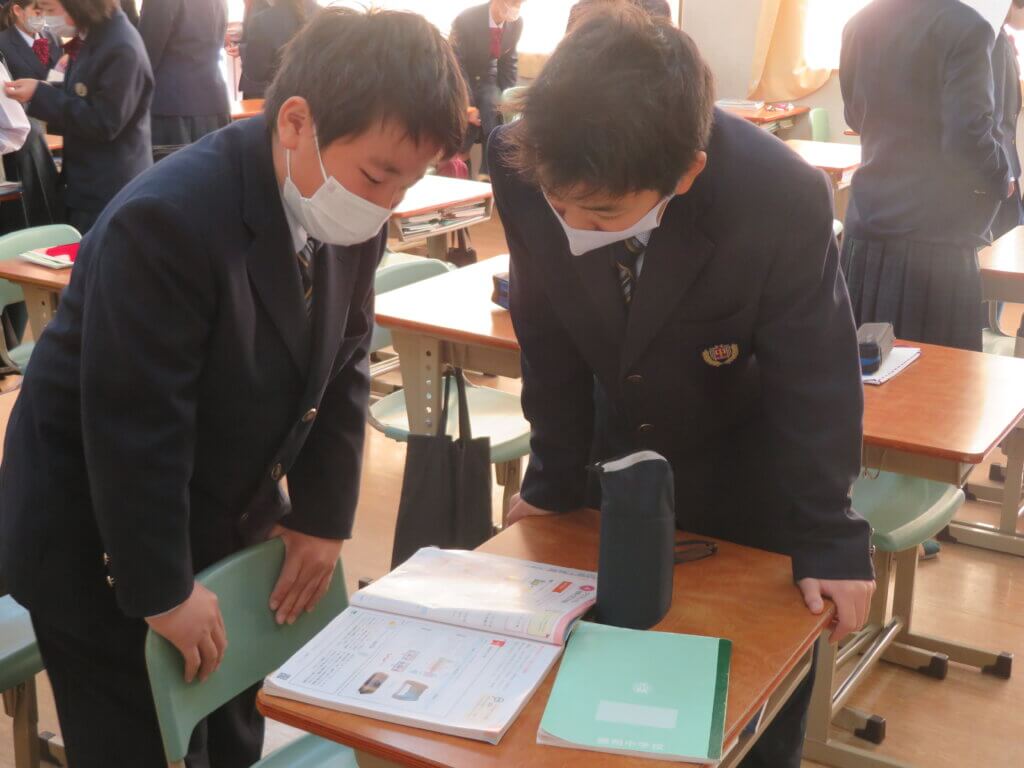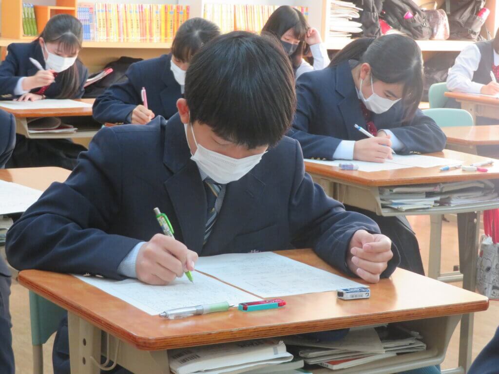 第4回定期考査2日目です。休み時間も友人と最終確認をしていました。 今日の教科は「技術家庭・理科・数学」が行われ、それぞれが一生懸命取り組んでいました。 勉強の成果を発揮できるよう最後まで頑張りましょう!頑張れ、鵬翔生!応援しています!