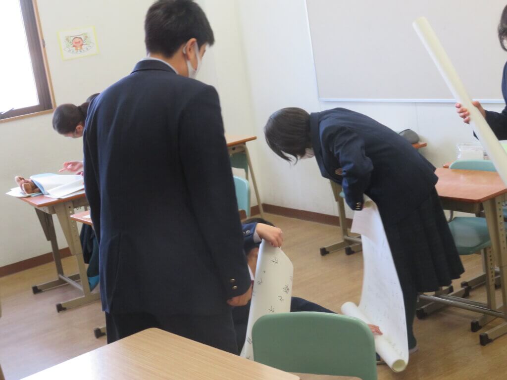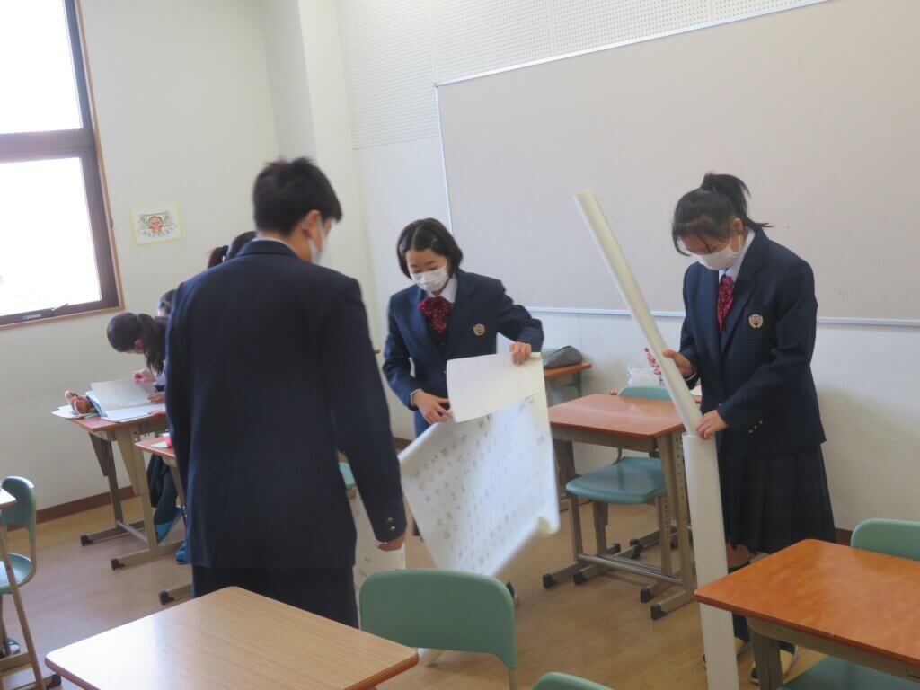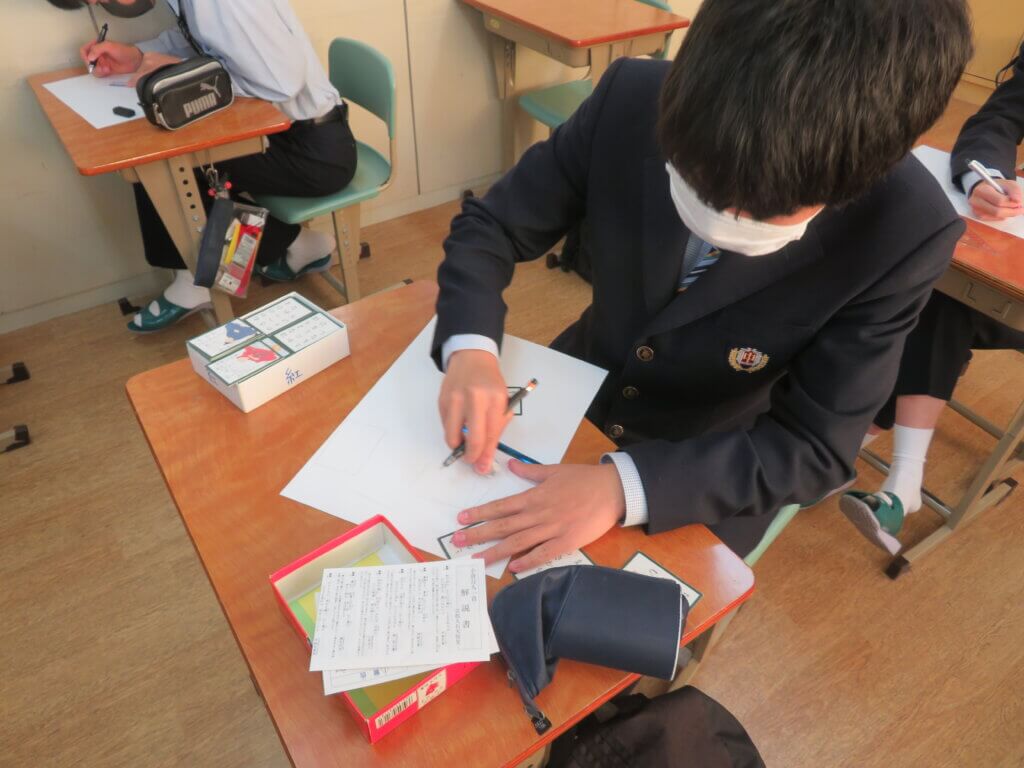 昨日、各種委員会を行いました。文化委員会は、12月17日に実施する百人一首大会に向けて、トーナメント表などの作成を行っていました。生徒会は、ファミリーマッチやファミリー交流会の準備をしていました。