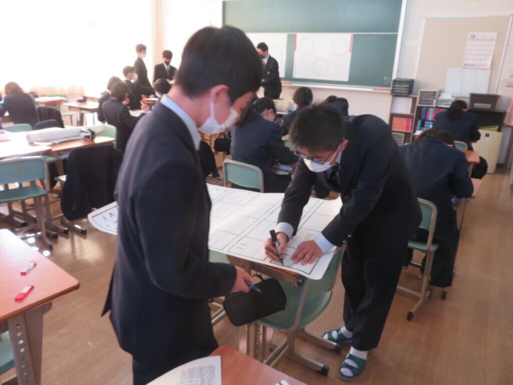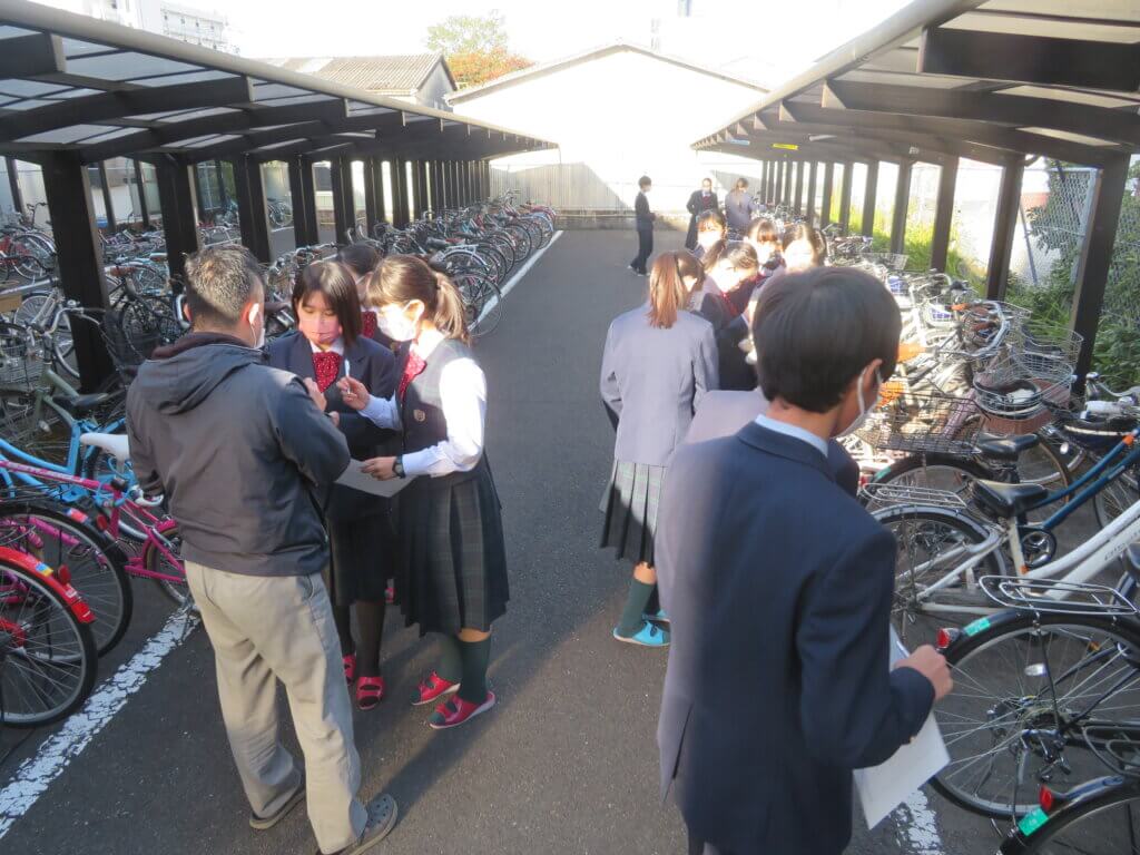 保健体育委員会は、新型コロナウイルス感染症やインフルエンザ感染症予防のためポスター作成をしていました。生活委員会は、実際に駐輪場へいき、2重ロックがきちんとされているか確認後、対策等の話し合いをしていました。