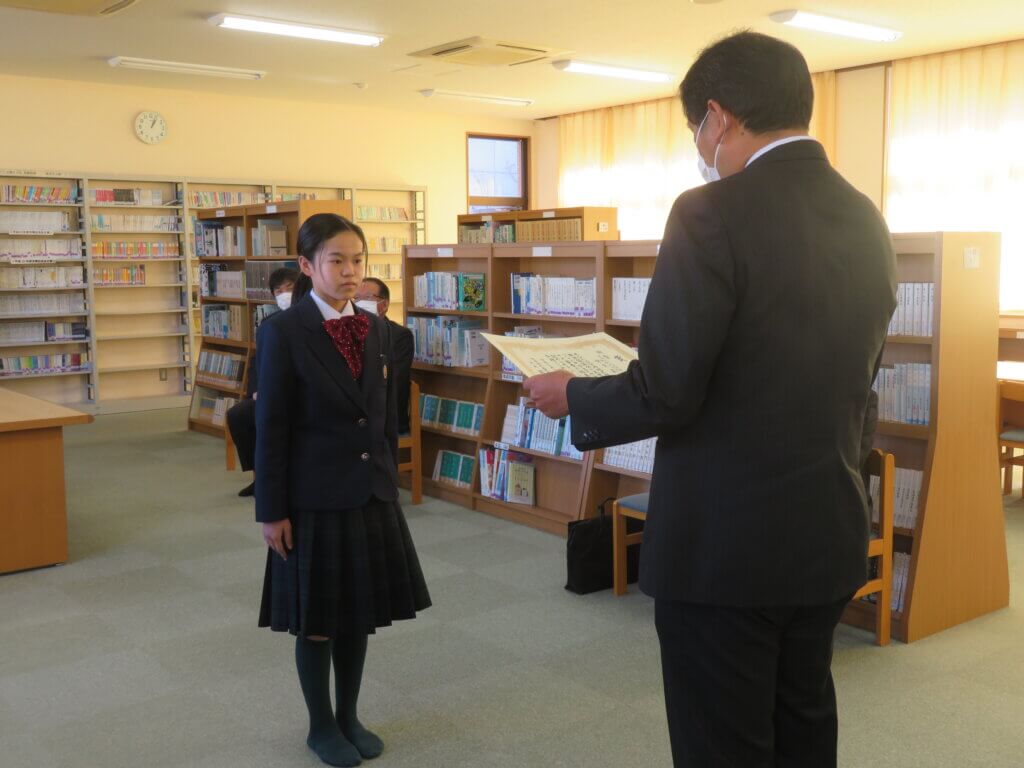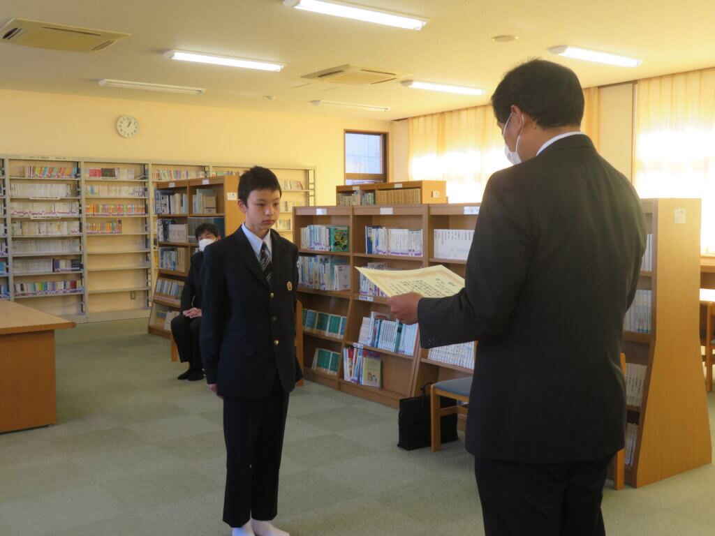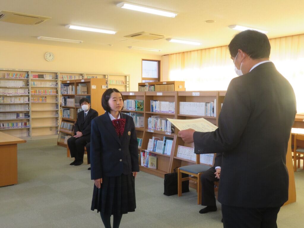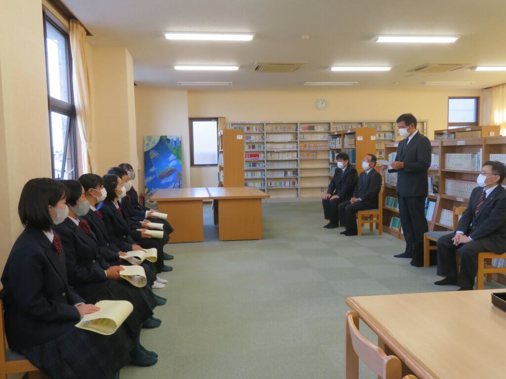 本日、「税についての作文」の表彰式が行われました。本校では、毎年租税教室を実施しています。また、夏休みの課題として税についての作文や標語を全校生徒で書き、応募しています。今回は、税についての作文の入賞者に表彰が行われました。