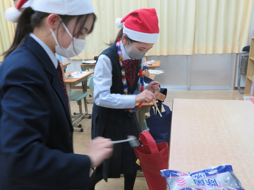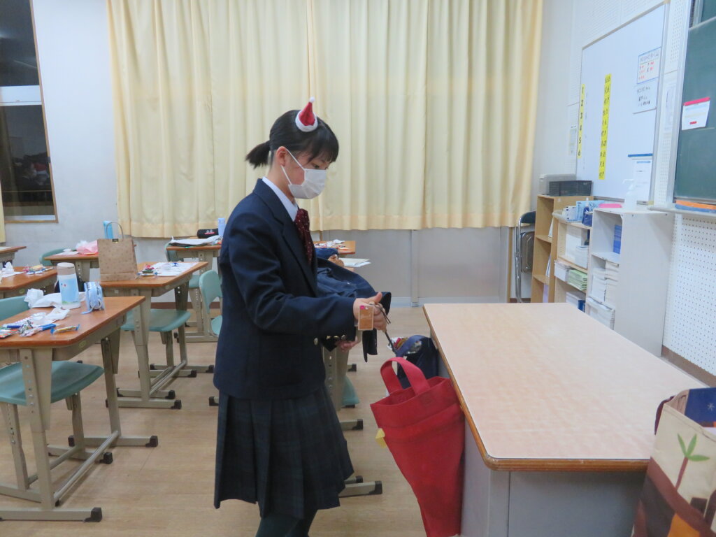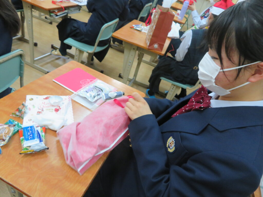 各自でプレゼントを用意して交換して、誰が準備をしてくれたプレゼントなのかを考えるというものです。誰からのプレゼントなのかを楽しそうに考えていました。