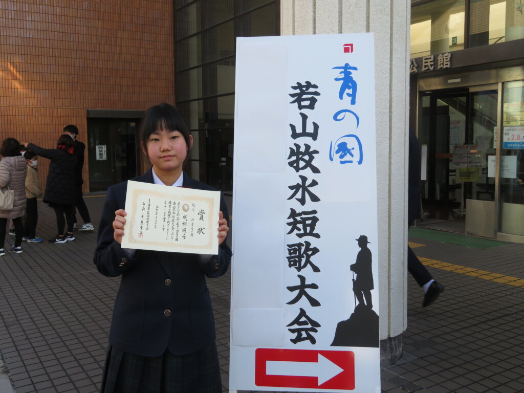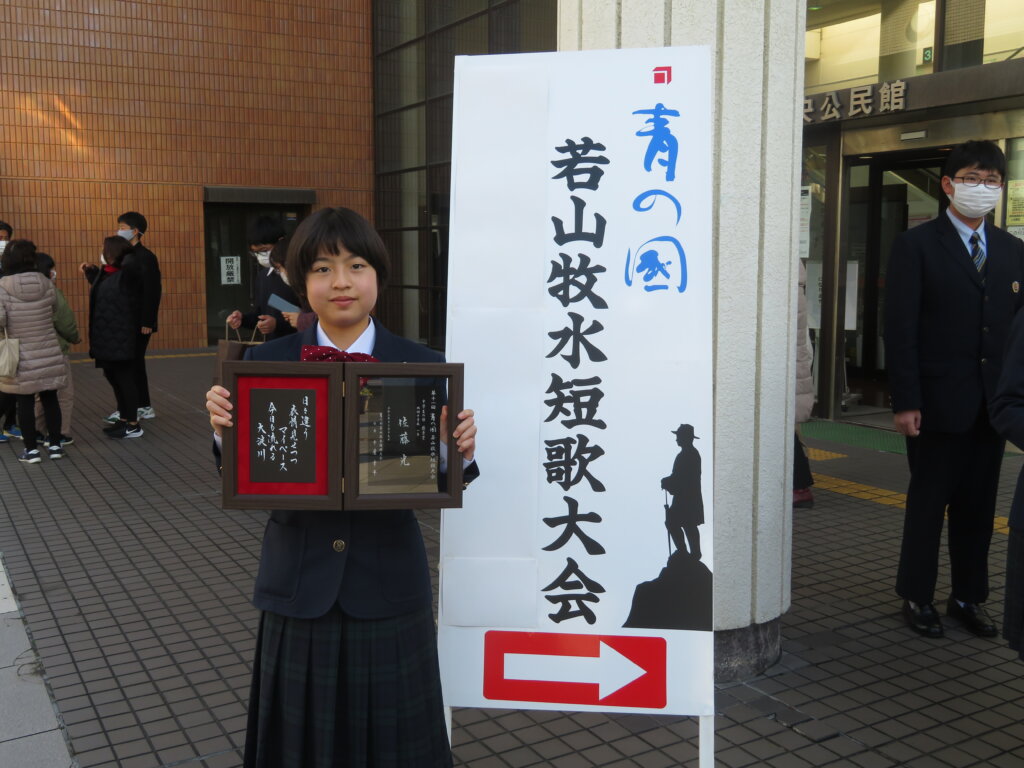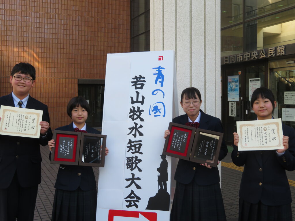 12月19日(日)に第11回青の國若山牧水短歌大会の表彰式が行われました。本校より4名の生徒が参加しました。