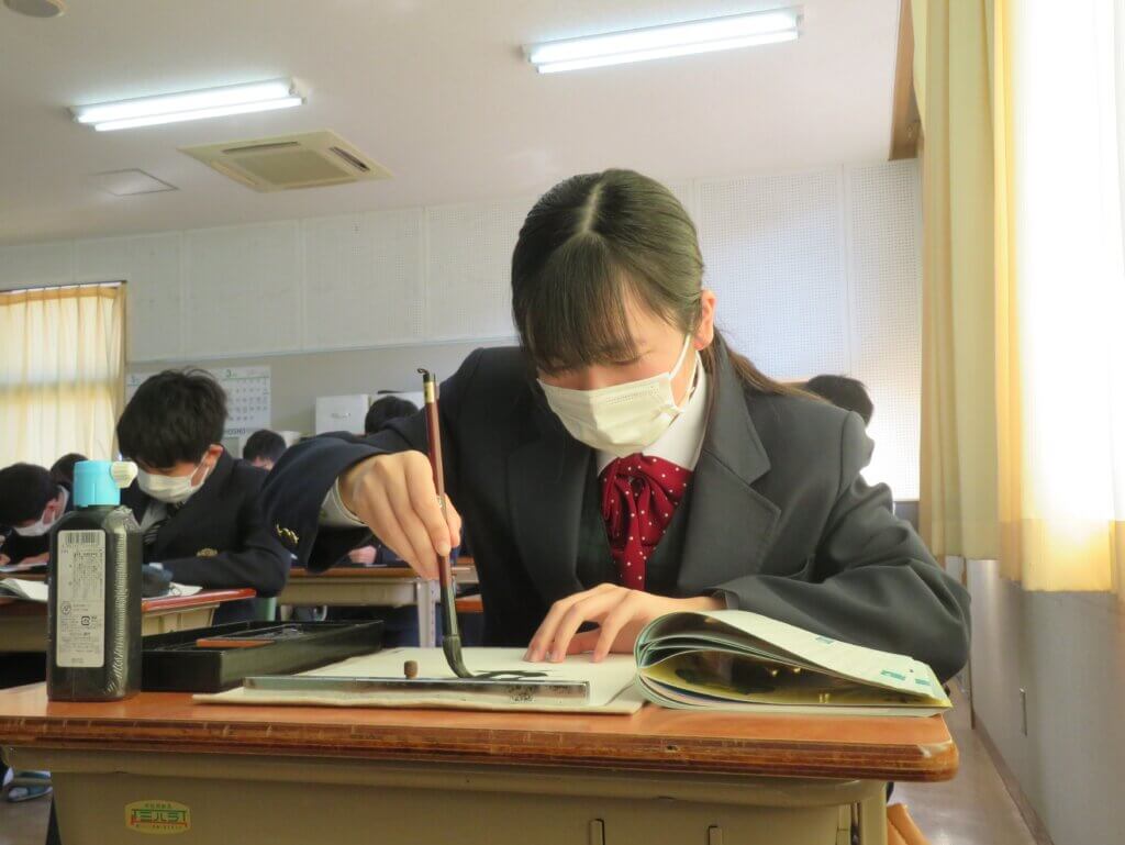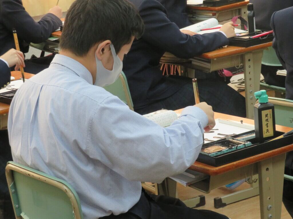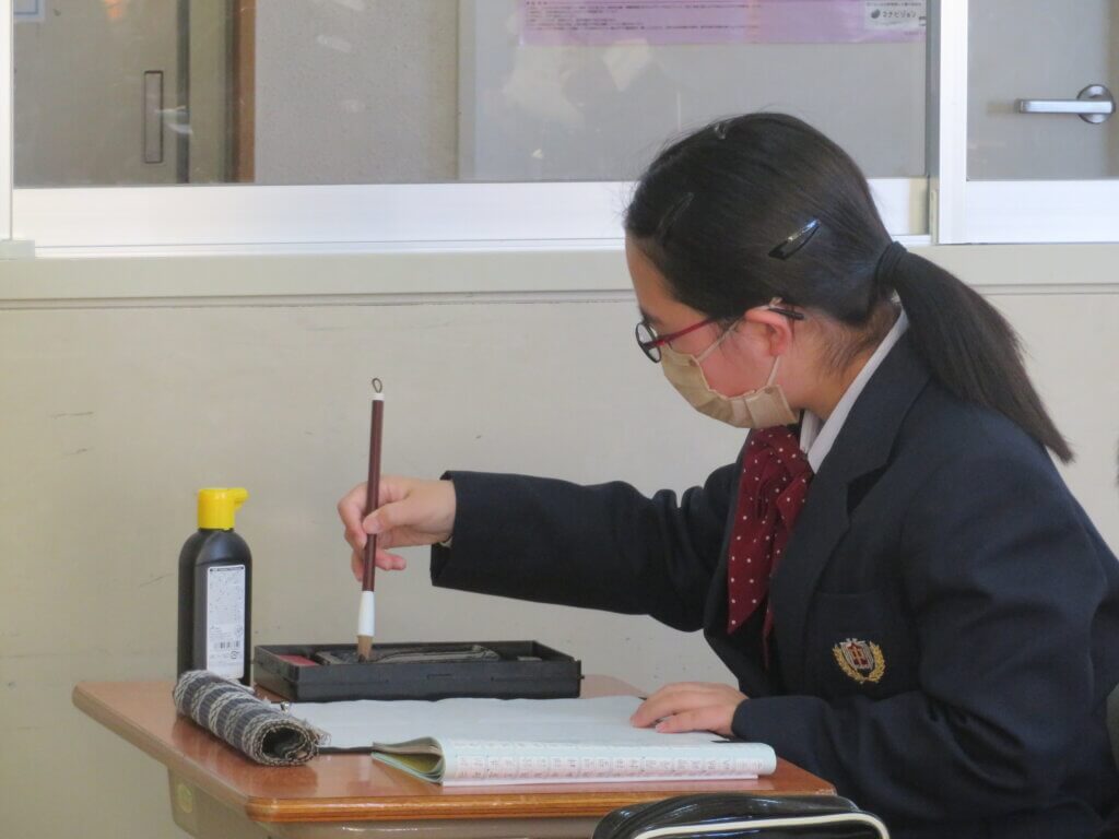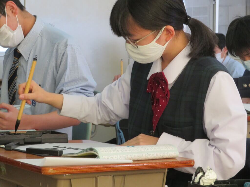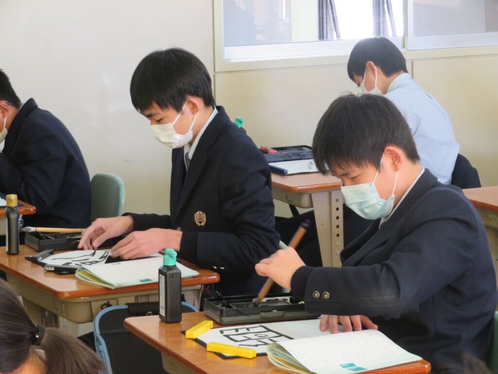 2月9日(水)に予定しています立志式に向け、J2生は書道の時間に自分で決めた一文字を清書していました。