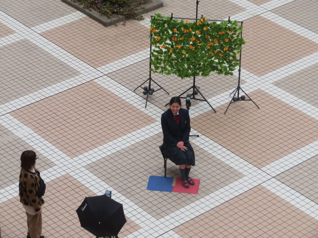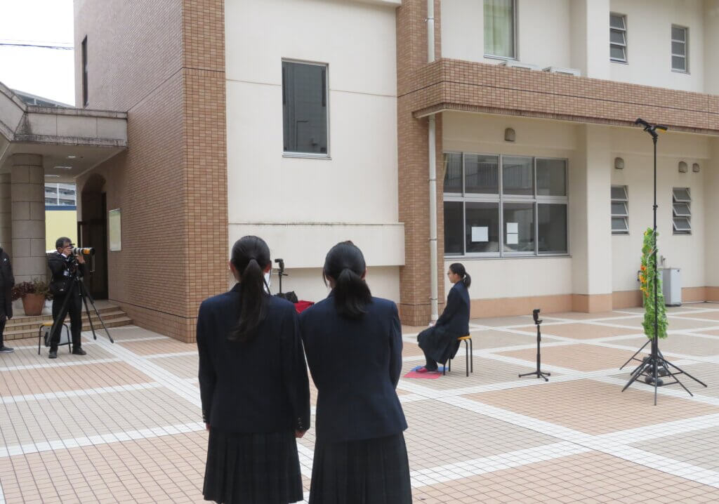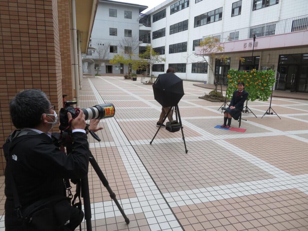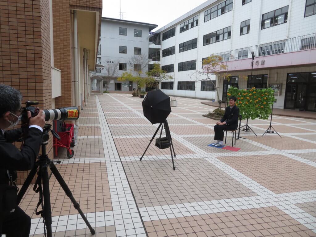 中庭では、J3生が修了アルバムの個人撮影を行っていました。 クラスメイトに見られ恥ずかしそうではありましたが、笑いがあり楽しい雰囲気での撮影でした。