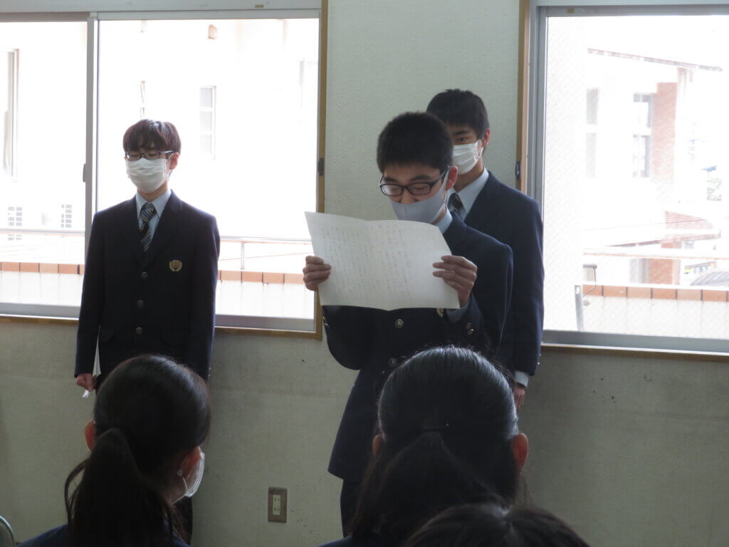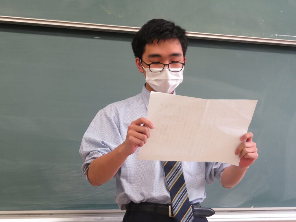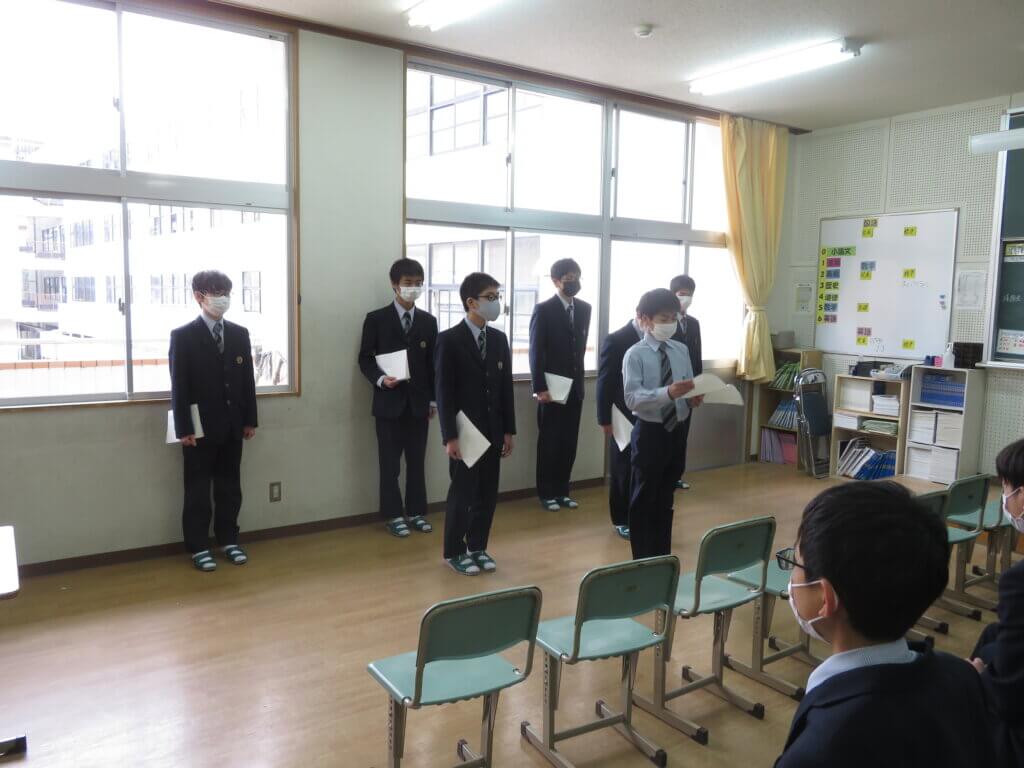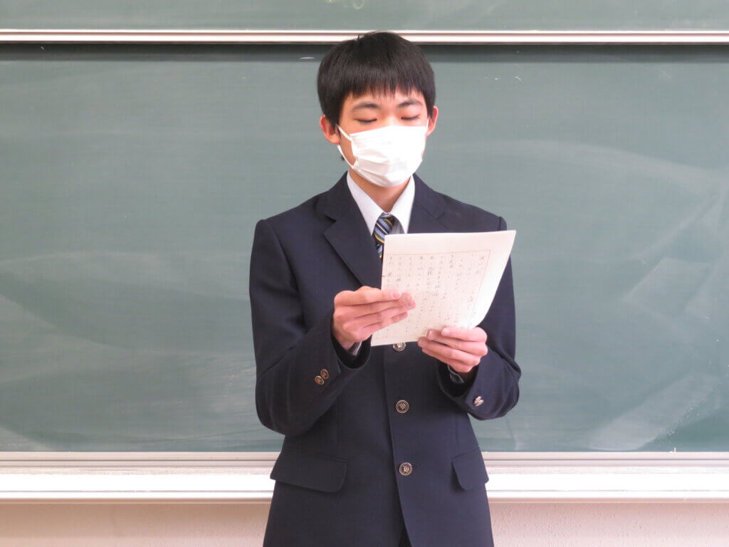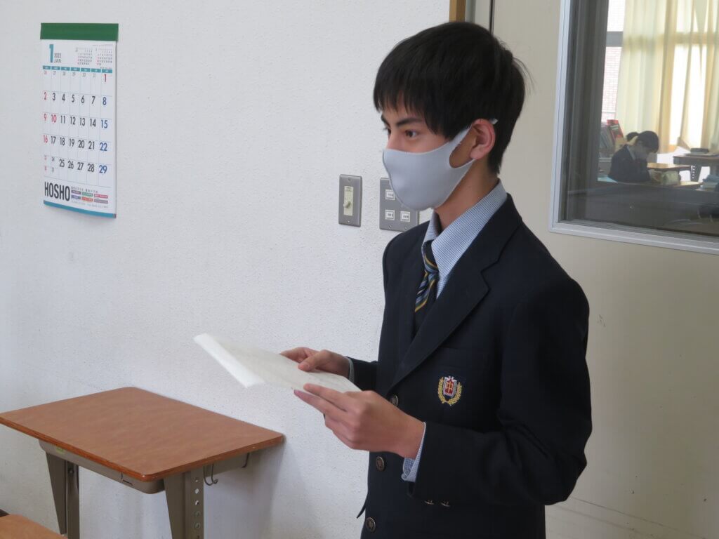 本日4限目、J2生は立志式の練習を行いました。J2-Aは、全体練習。J2-Bは、個人練習をしていました。