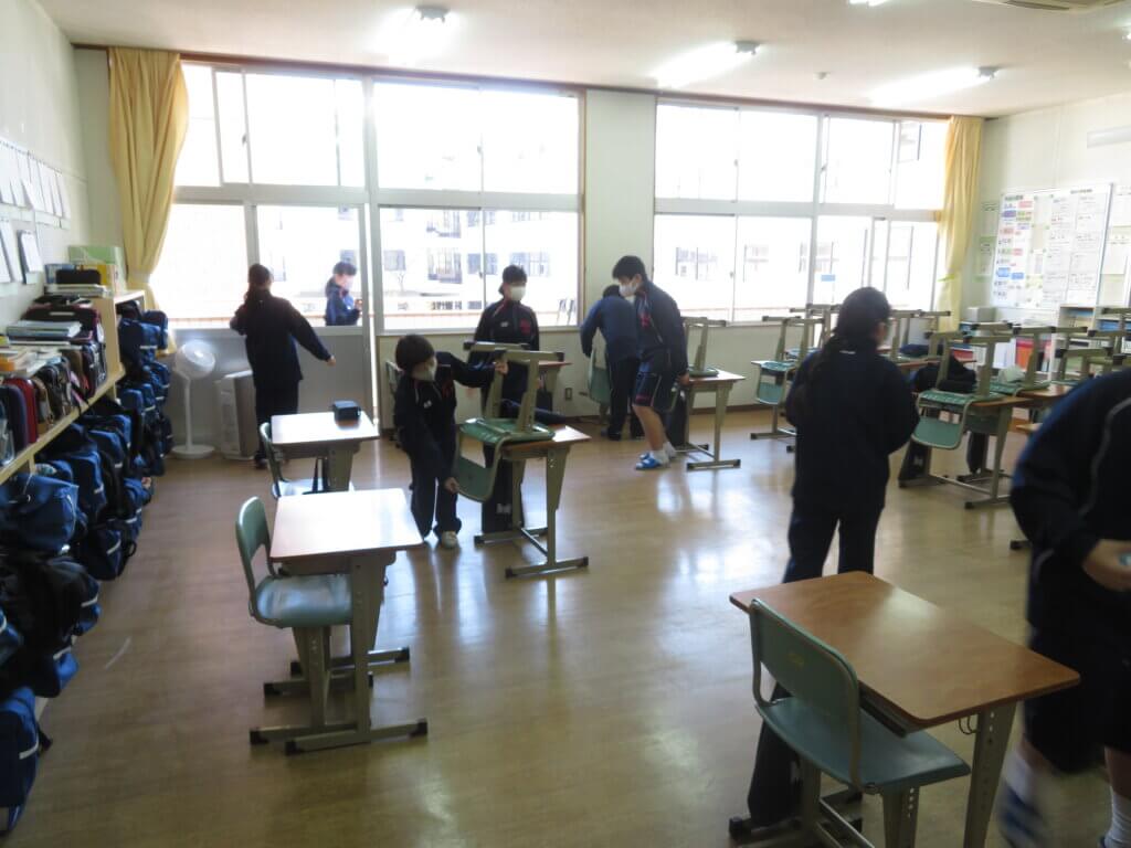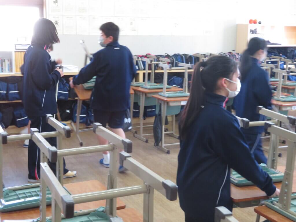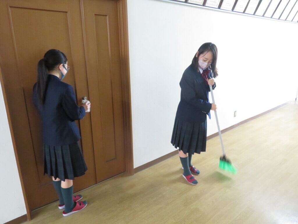 清掃の時間です。クラスメイトやファミリーの先輩後輩と一緒に行います。