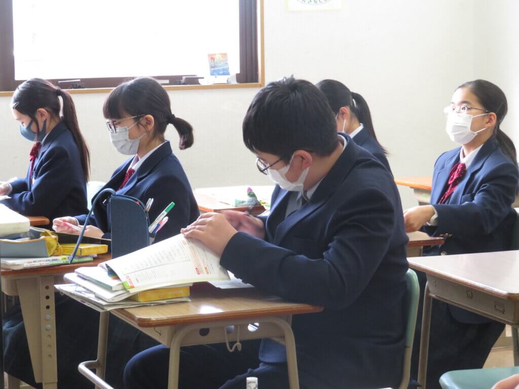 定期テストまで2週間を切りました。各教科から試験範囲の発表が続々と行われてきています。直前になって焦ることがないよう、計画的に学習を進め、学年最後の定期テストで有終の美を飾りましょう。