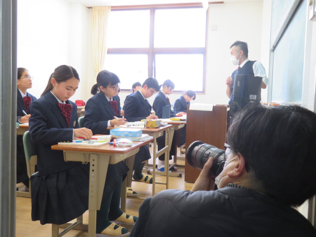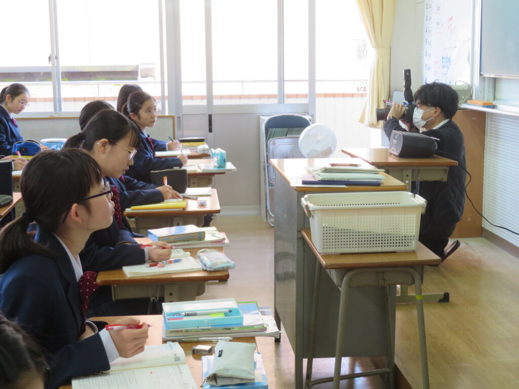 本日、授業風景と部活動のパンフレット撮影を行いました。1年生は初めての経験ですね!十分に換気をし、撮影時のみマスクを外し行いました。初めは緊張している様子でしたが、徐々に普段通りの笑顔が見られました。