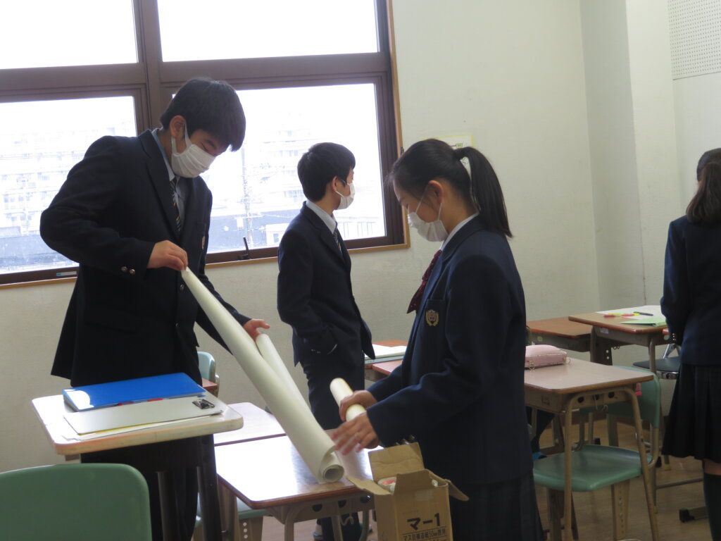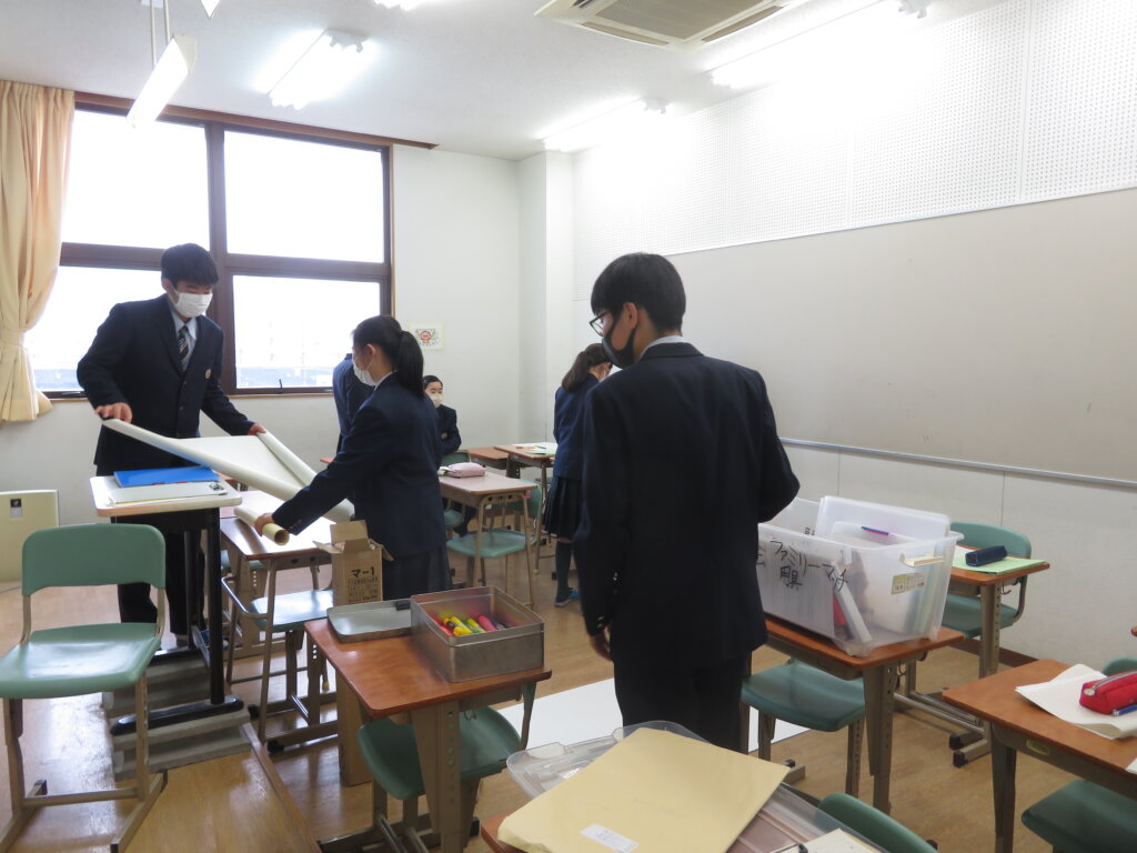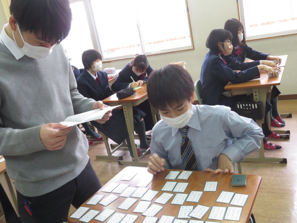 本日、各種委員会が行われました。 学習委員会は新入生に向けた学校紹介新聞作成、文化委員会は、百人一首大会で使用した札の整理、生活委員会は自転車点検、美化委員会はクラスの現状を踏まえた今後の目標設定、保健体育委員会は換気グッズ作成、 生徒会は、お別れファミリーマッチの準備をそれぞれ行いました。