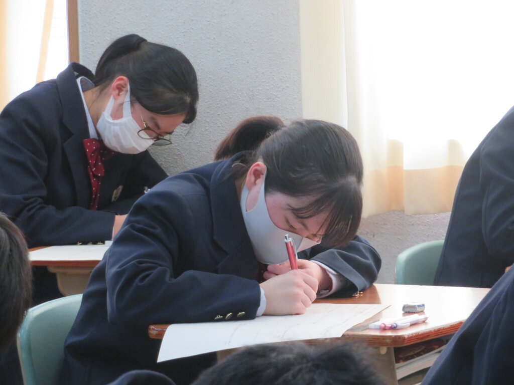 定期考査は、これまでの授業内容をベースにして出題されています。単に覚えるべきことを書き出すという勉強法ではなく、授業で学んだことを一つ一つ振り返っていくことで、学習に脈絡が生まれます。様々な知識が、互いに結びつくことで知識は記憶にとどまりやすくなります。授業で使ったワークシートやノートを最大限に活用してください。