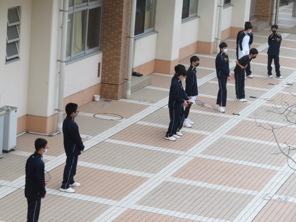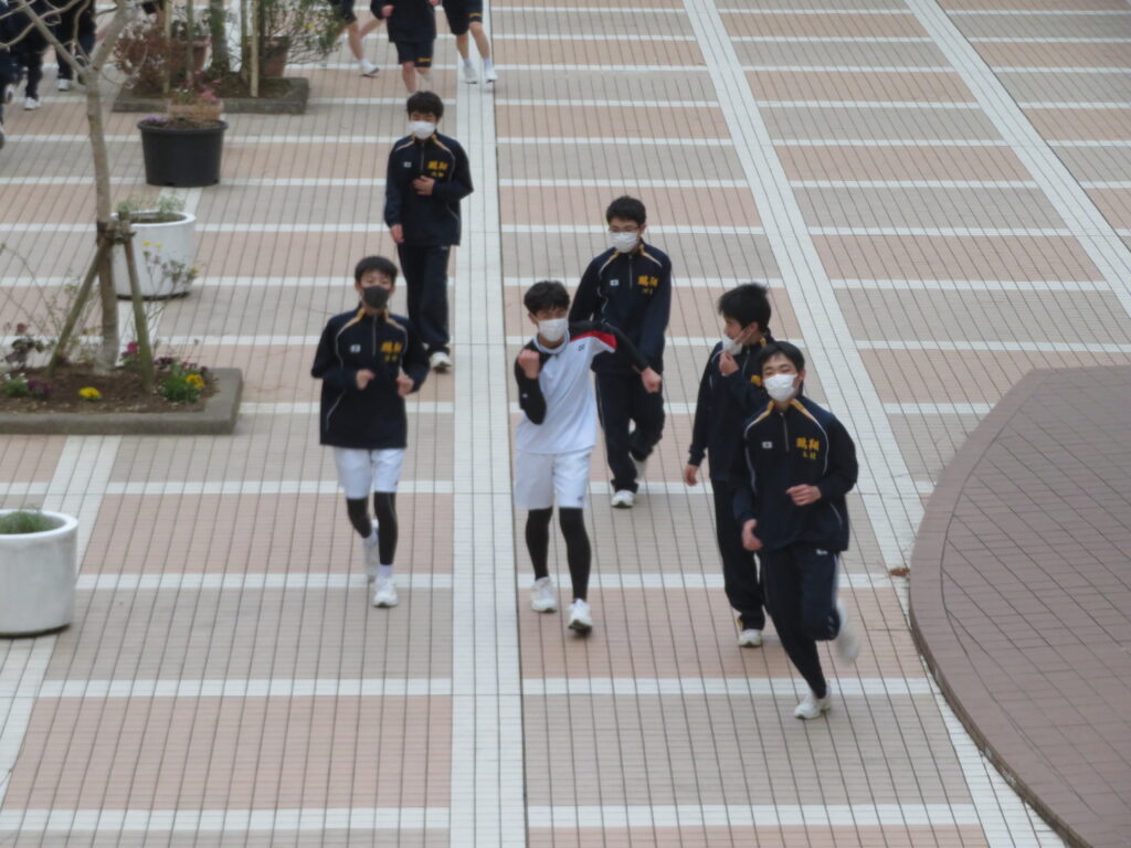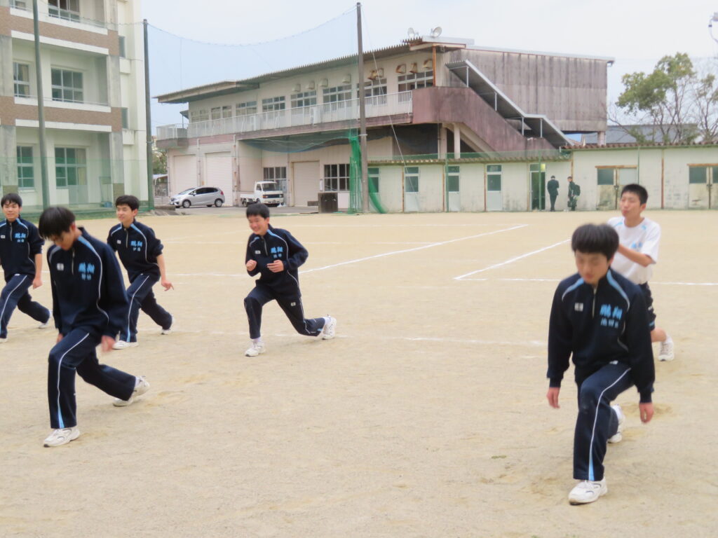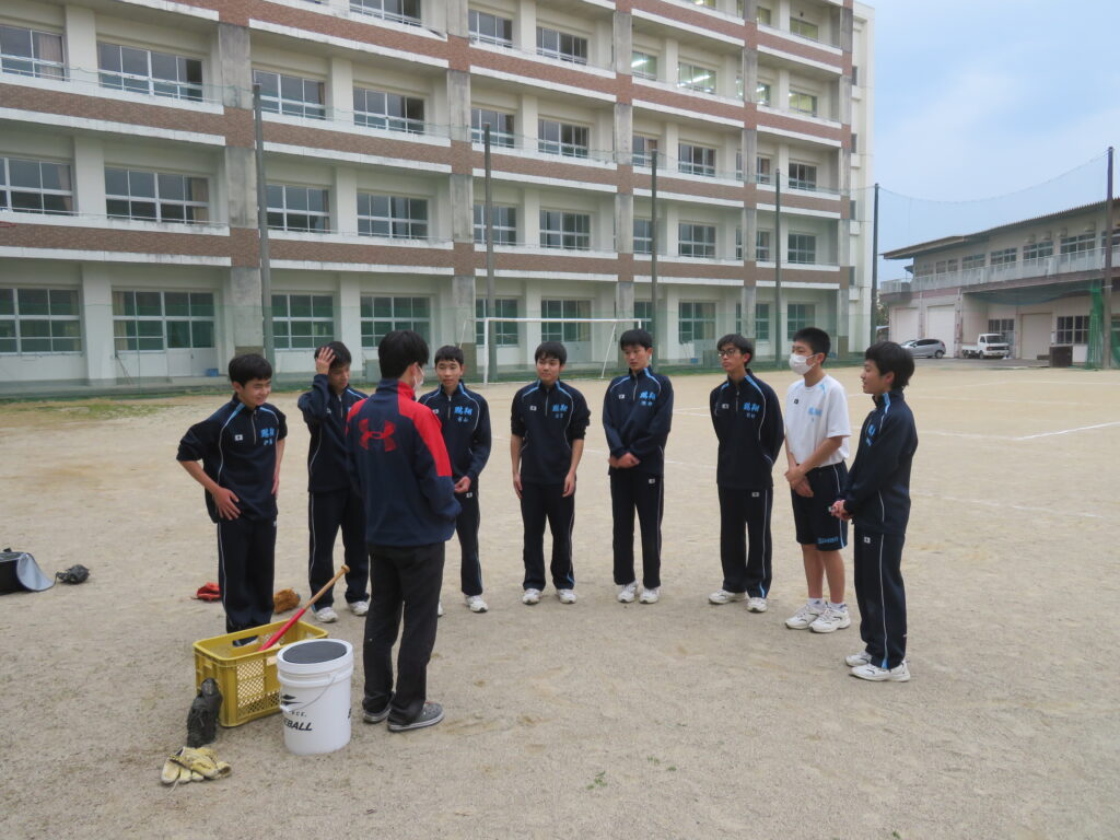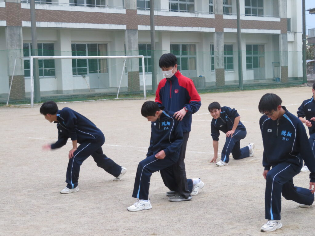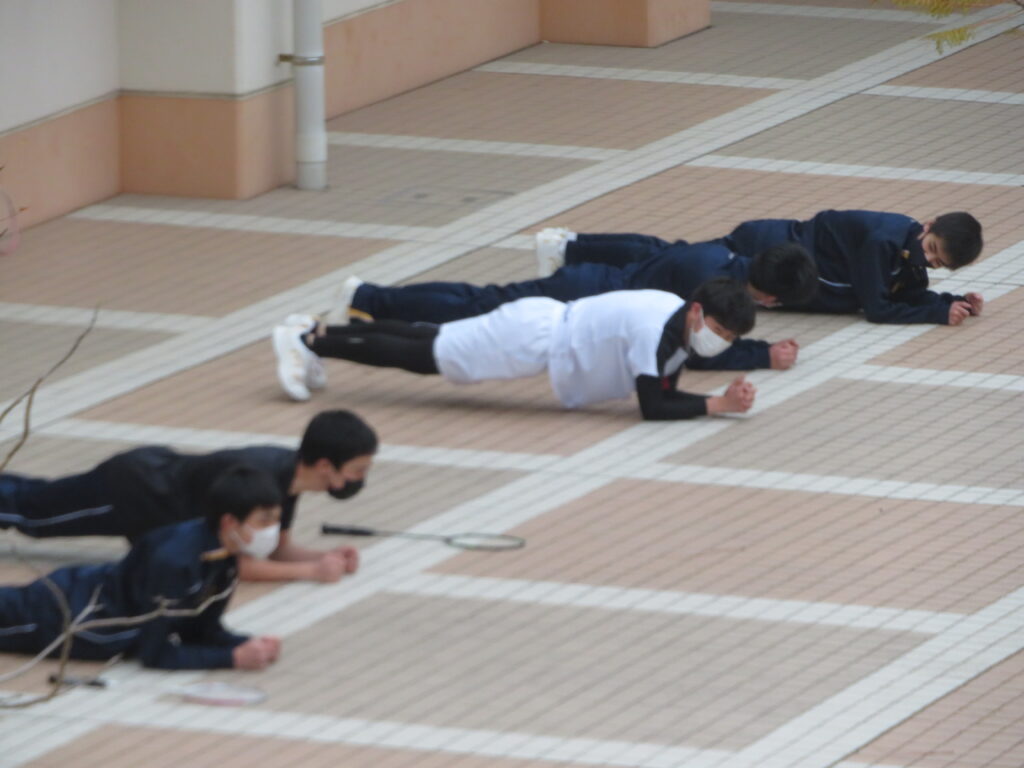本日、部活動の日です。野球部は、グラウンドで活動しています。中萬先生の指導のもと、体幹トレーニングを行っていました。
