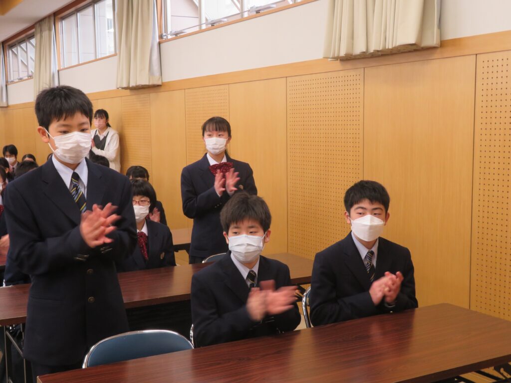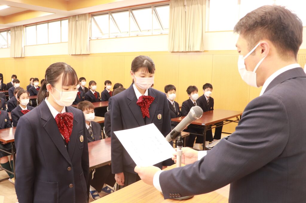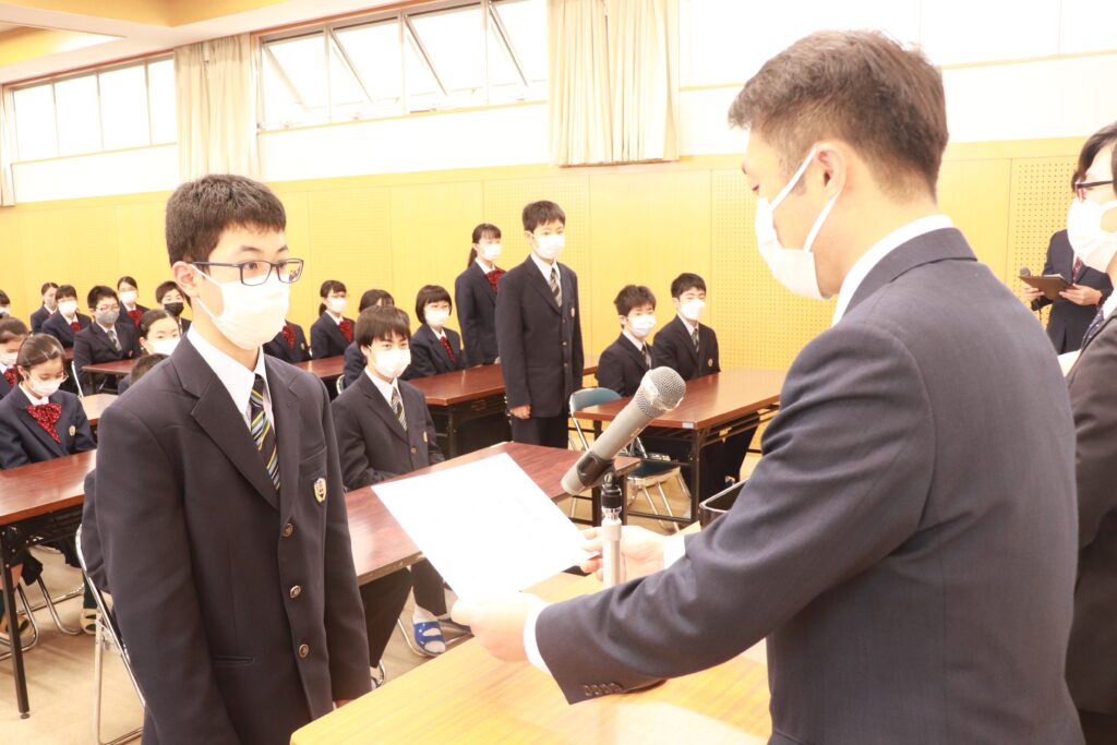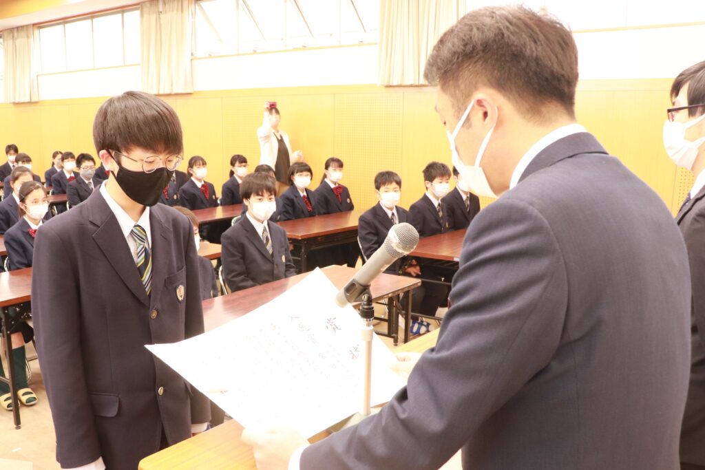 本日、総復習テストと全国読書感想文コンクールの表彰式が多目的ホールにて行われました。総復習テストの表彰者は、各学年の総合1位の代表生徒のみ写真にて紹介します。