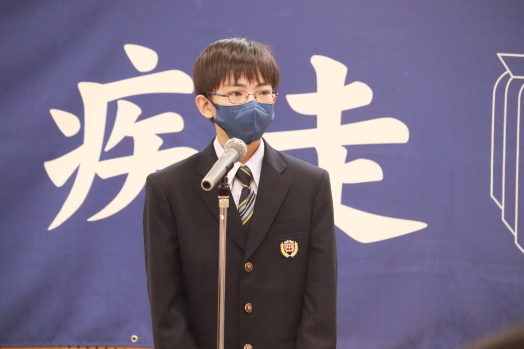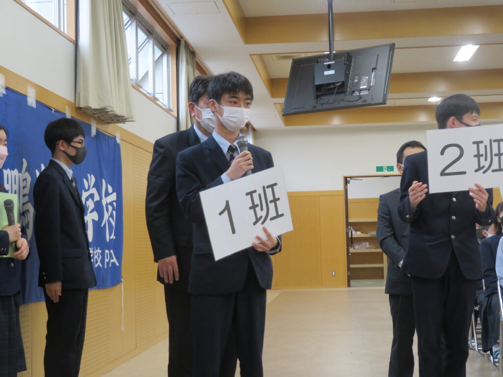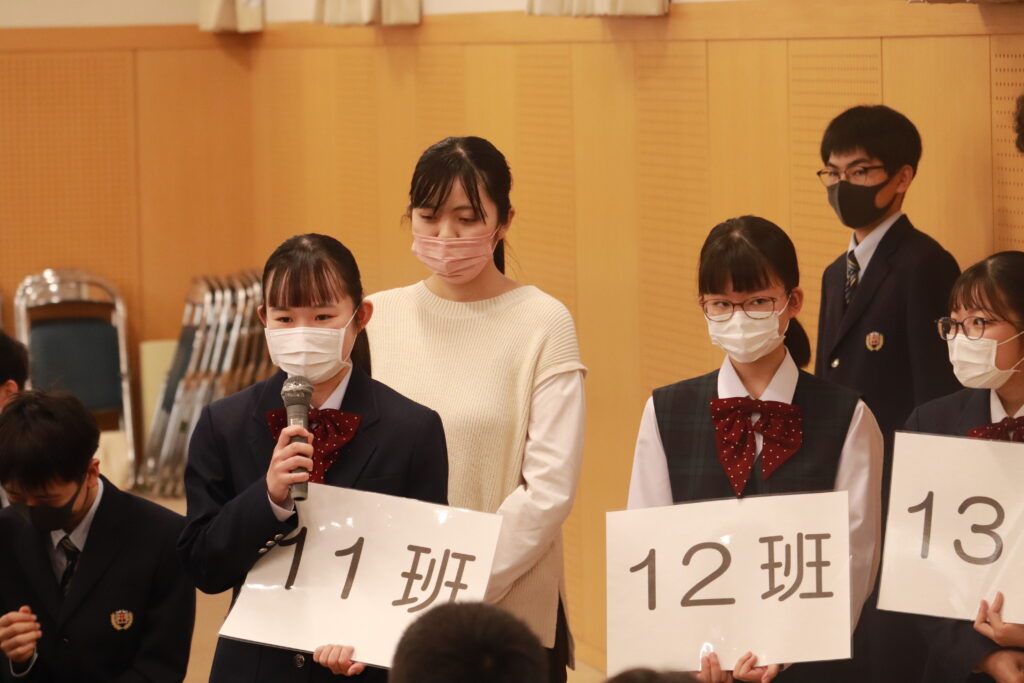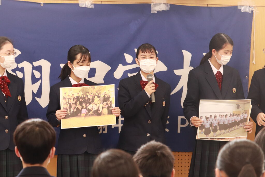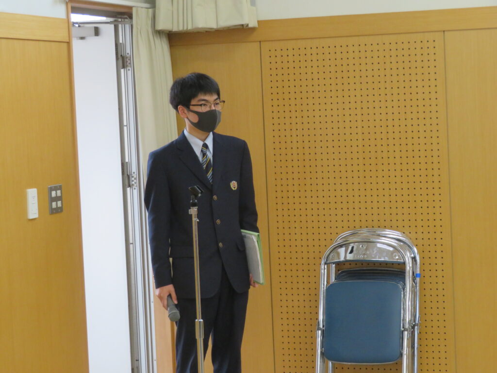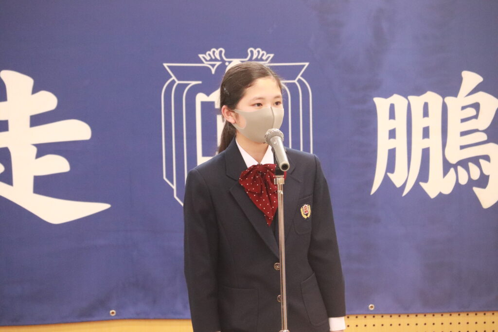 J1生への挨拶は、J3-A篠原李和子さん。 1生からJ2・J3生への挨拶を、J1-B三重野樹さんが行いました。