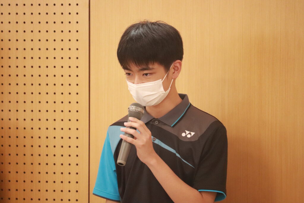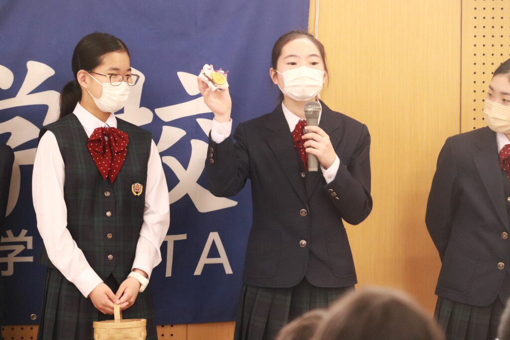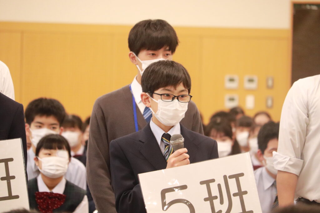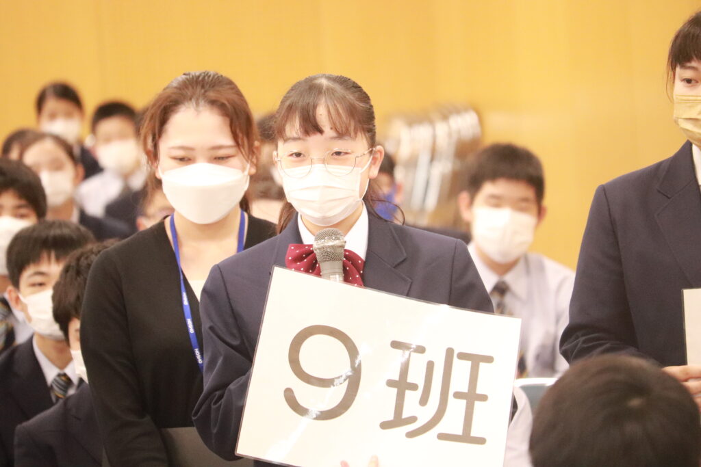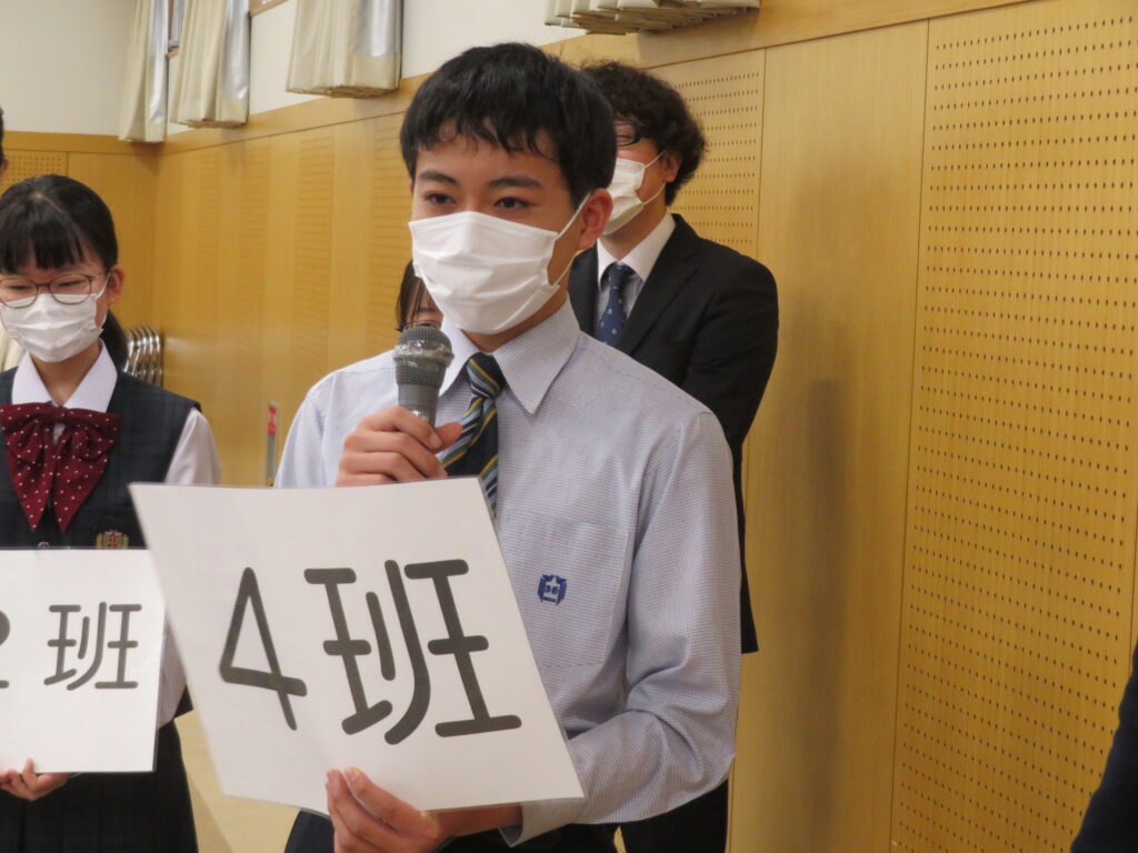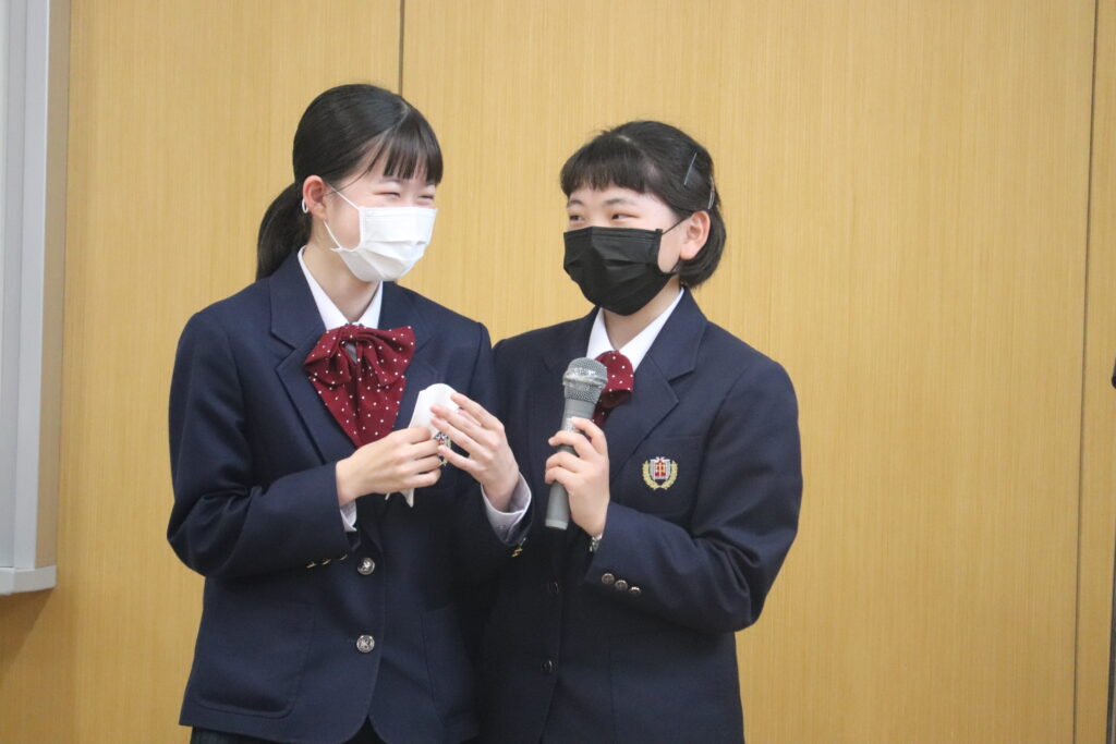J1生への挨拶は、J3-A篠原李和子さん。 1生からJ2・J3生への挨拶を、J1-B三重野樹さんが行いました。
