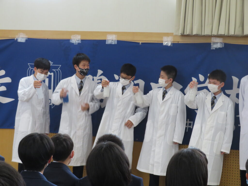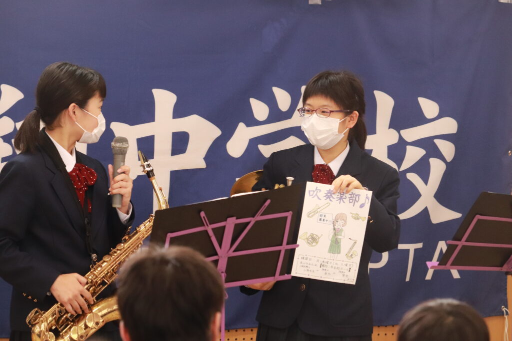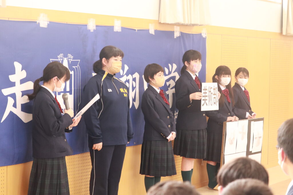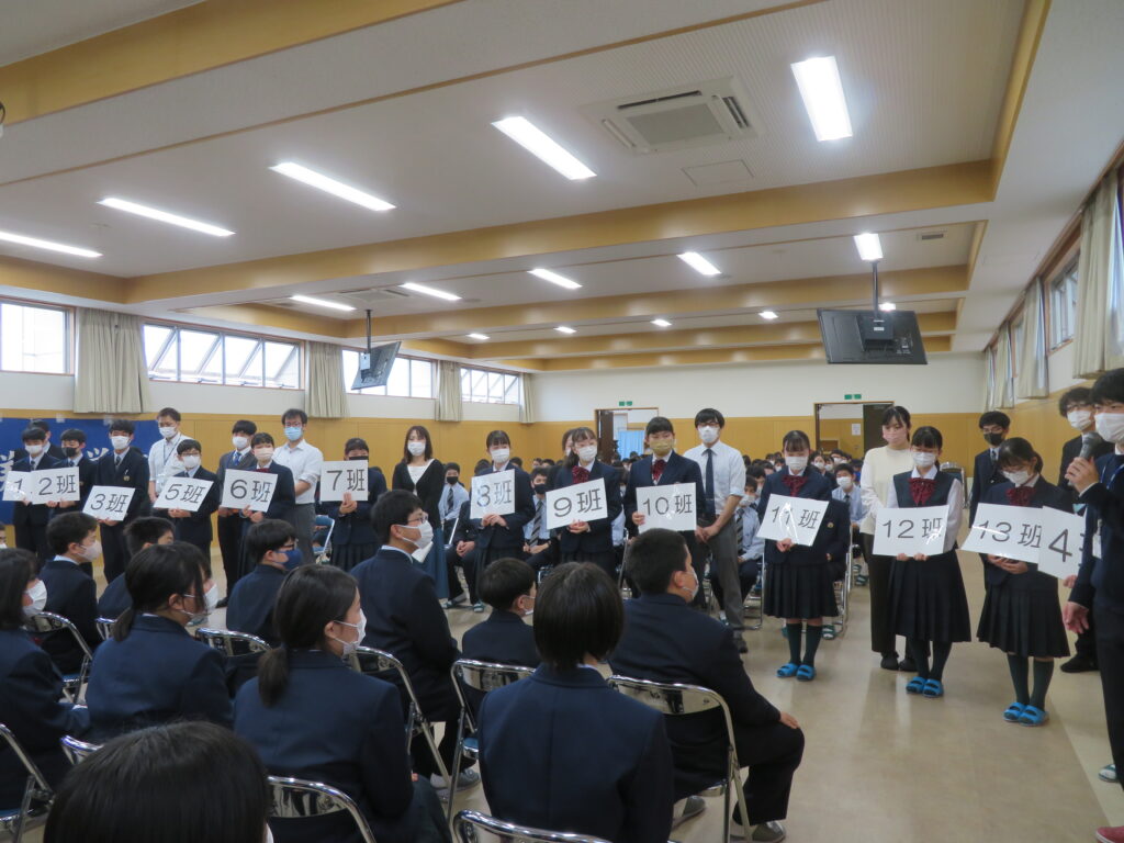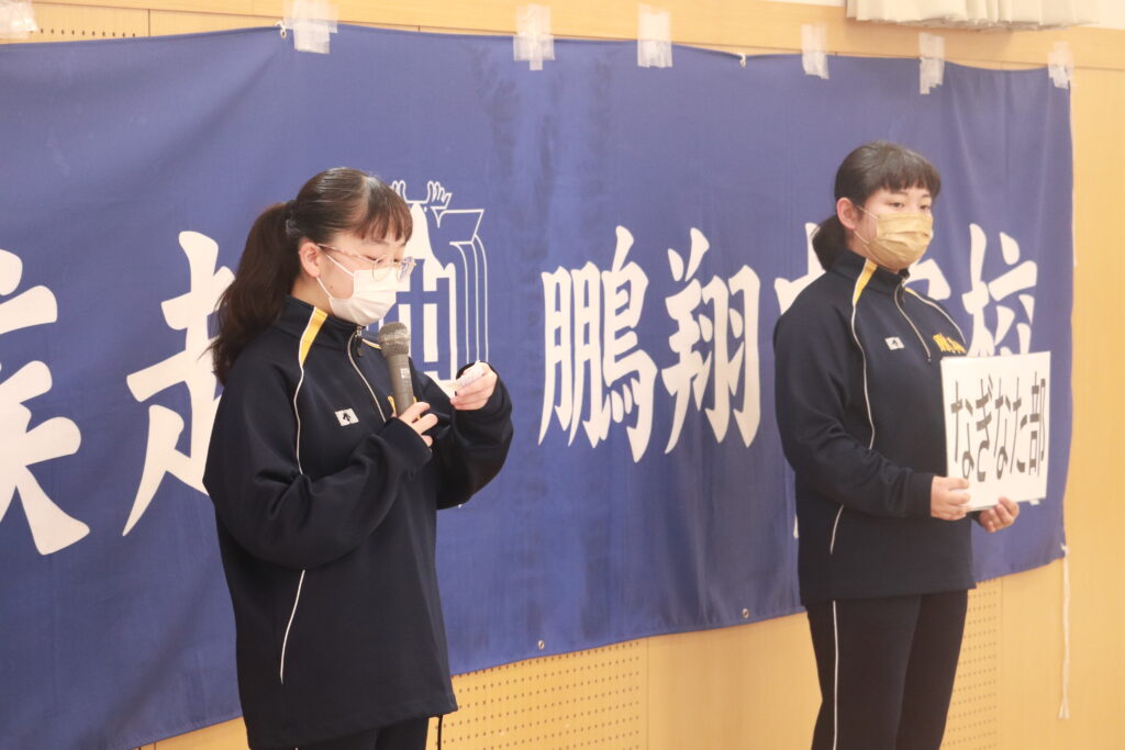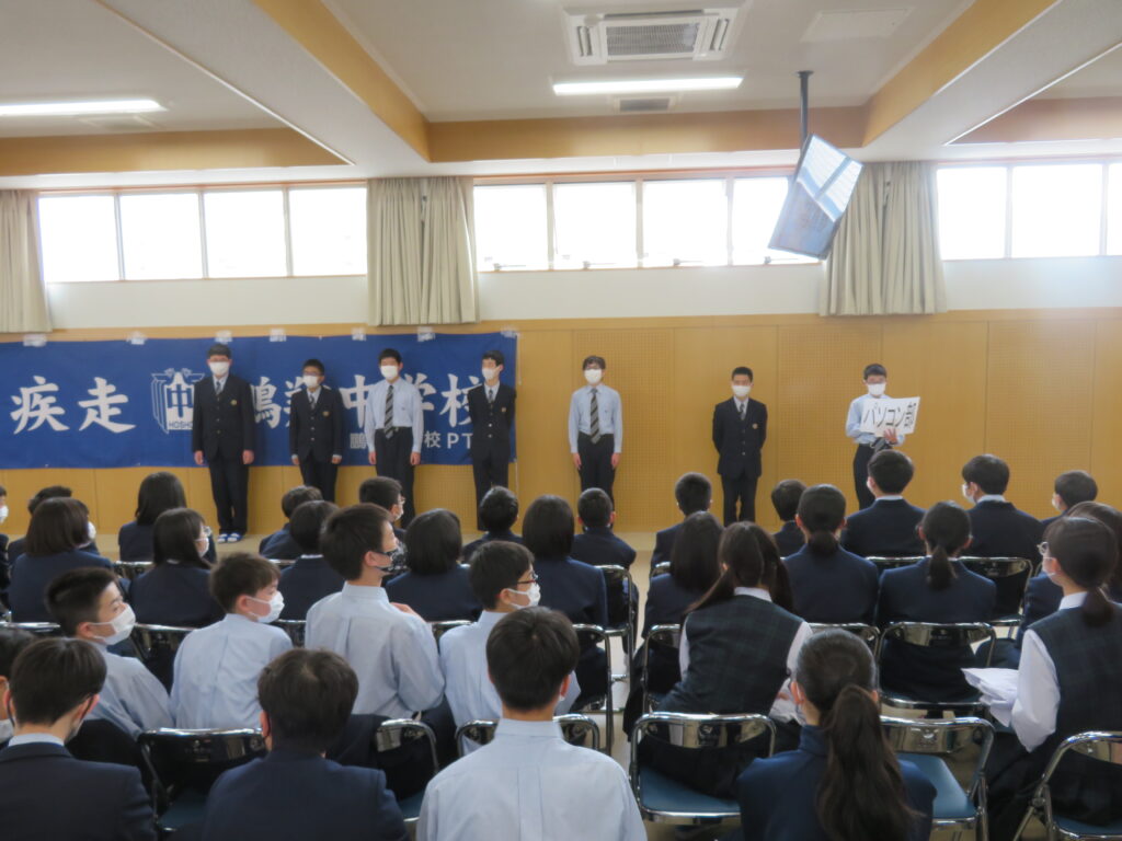 J1生は、今日の部活動紹介を見たうえで、宿泊研修後、2回の体験部活動を経て、正式な入部という流れになります。J2・J3生も中体連や文化発表会に向け、取組む姿勢がより強くなる時期です。鵬翔ファミリー一致団結し、精一杯頑張りましょう。最後になりましたが、生徒会のみなさん、企画運営ありがとうございました。