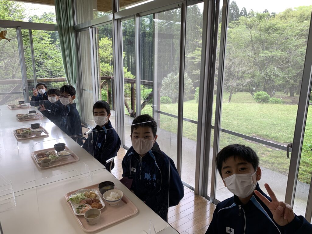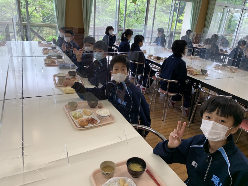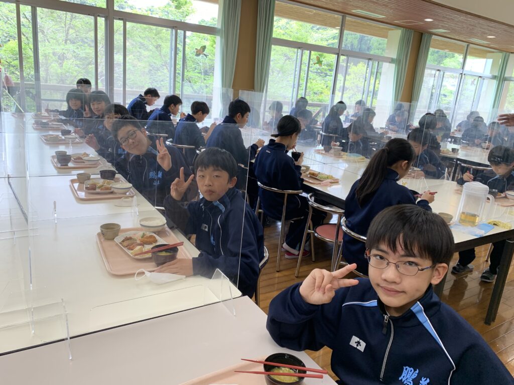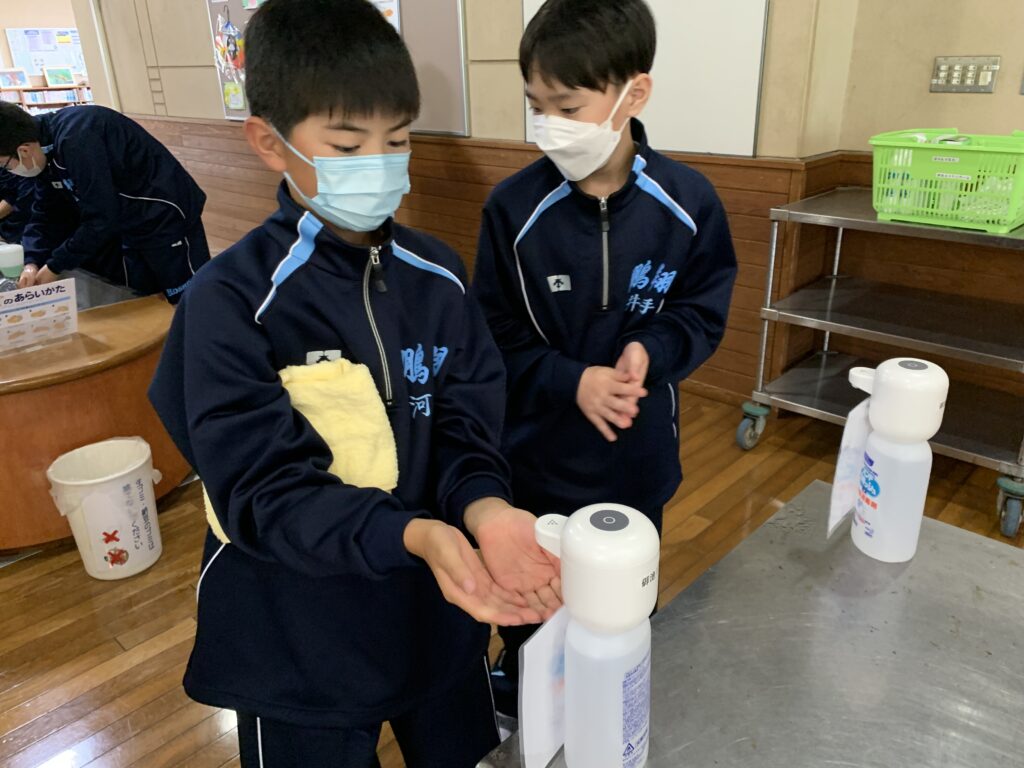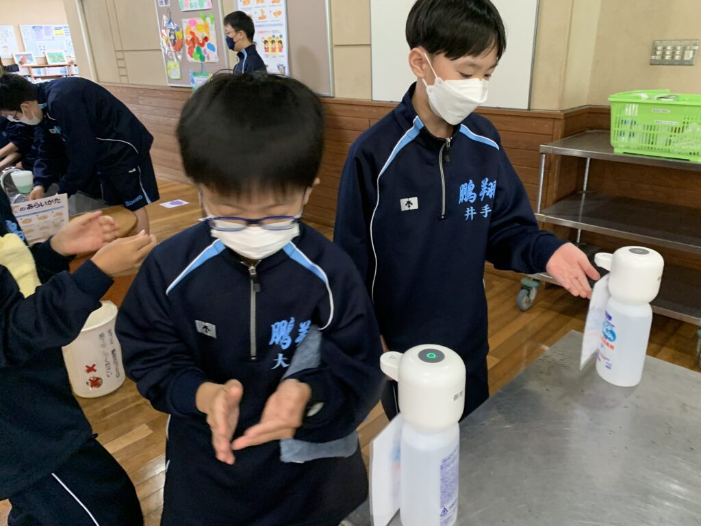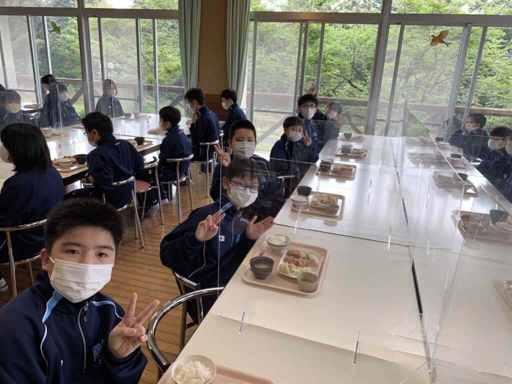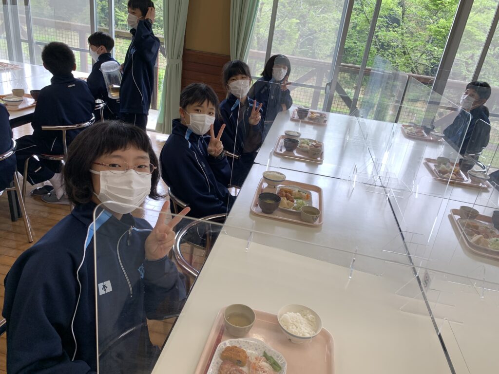 下の写真は昼食時の様子です。しっかり手洗い消毒をしてから食事に移ります。