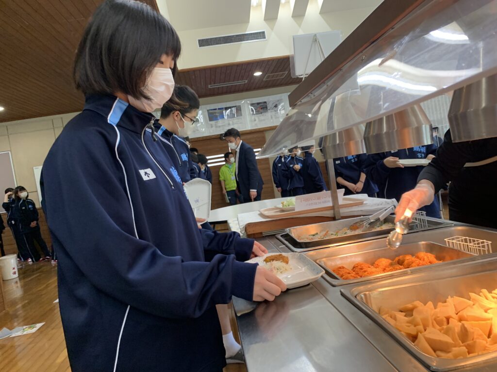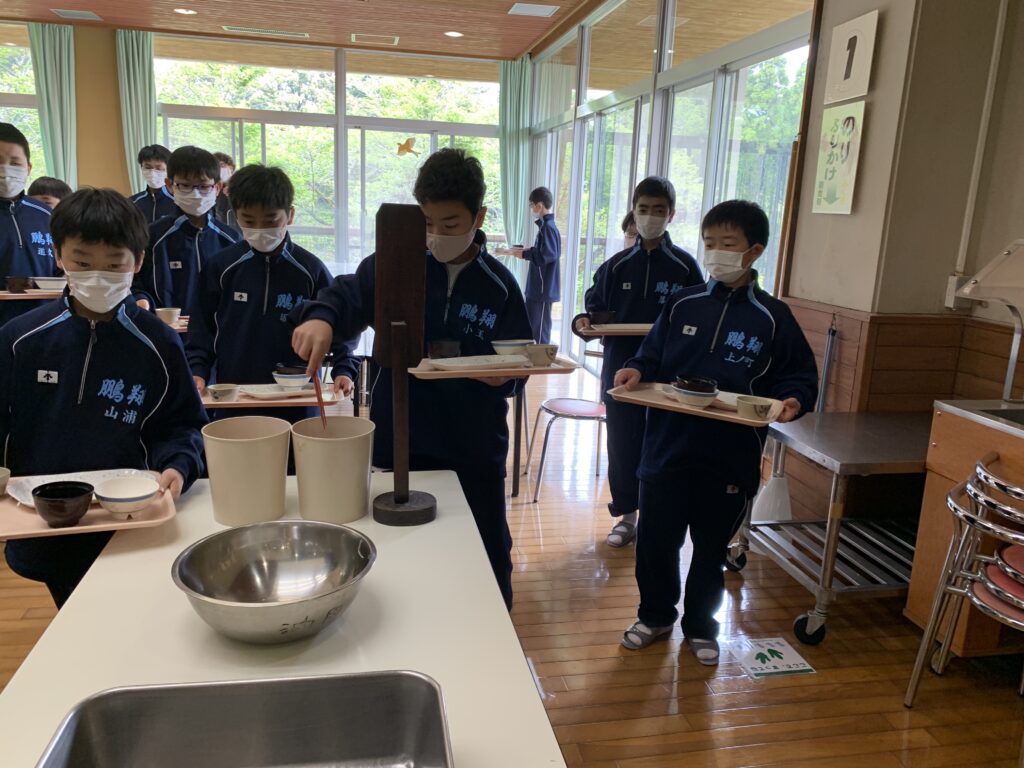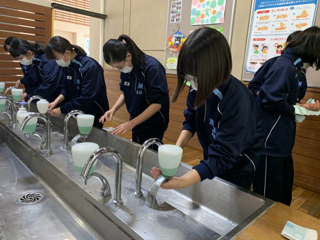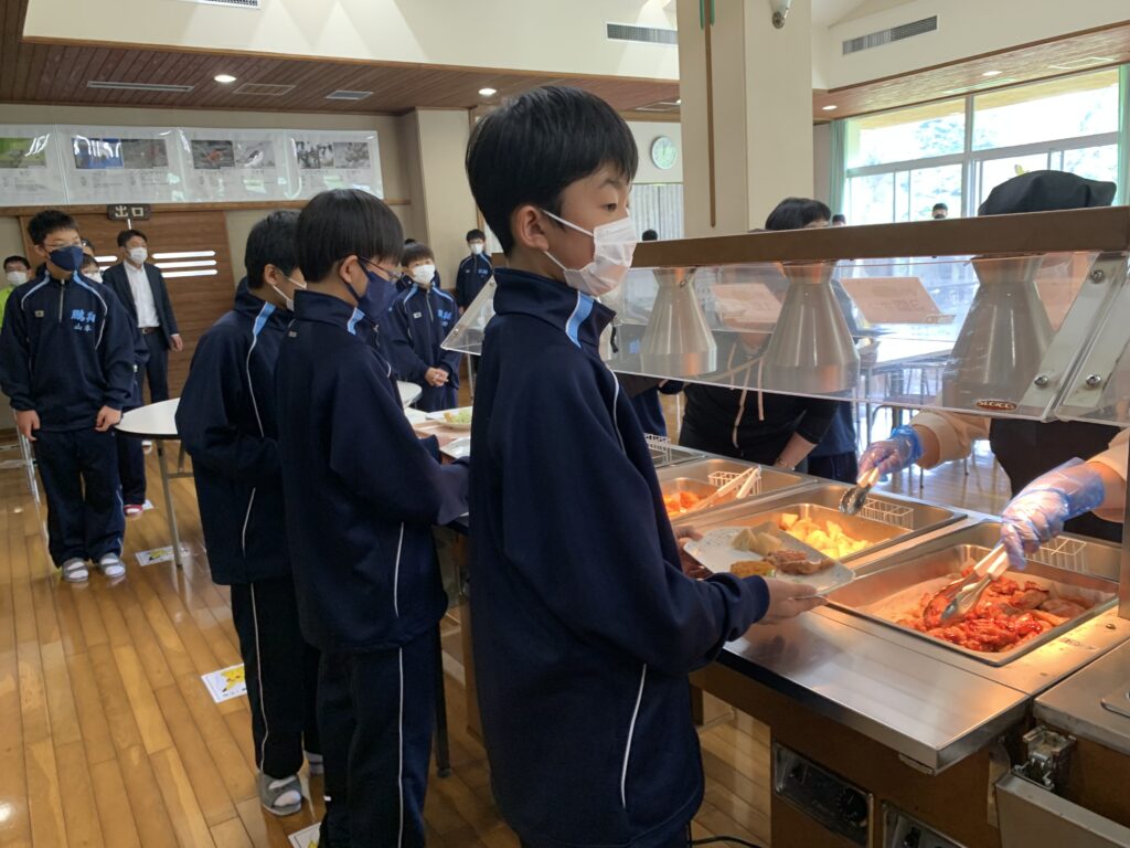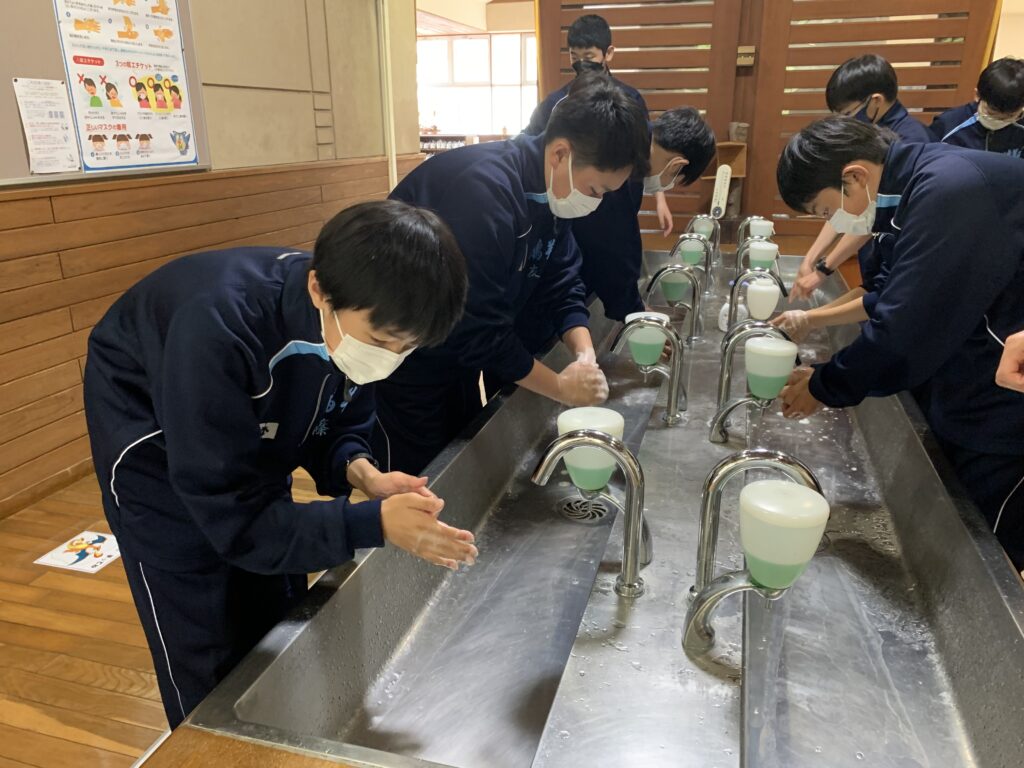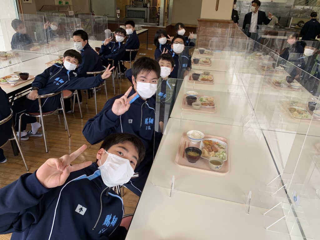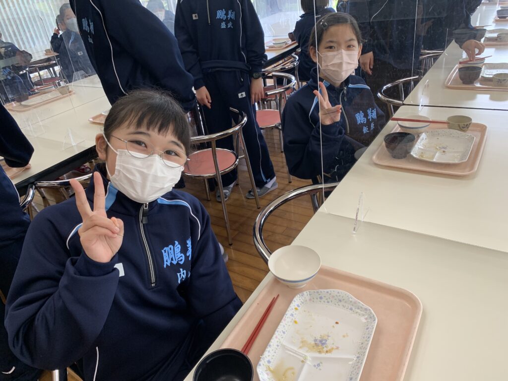 下の写真は昼食時の様子です。しっかり手洗い消毒をしてから食事に移ります。