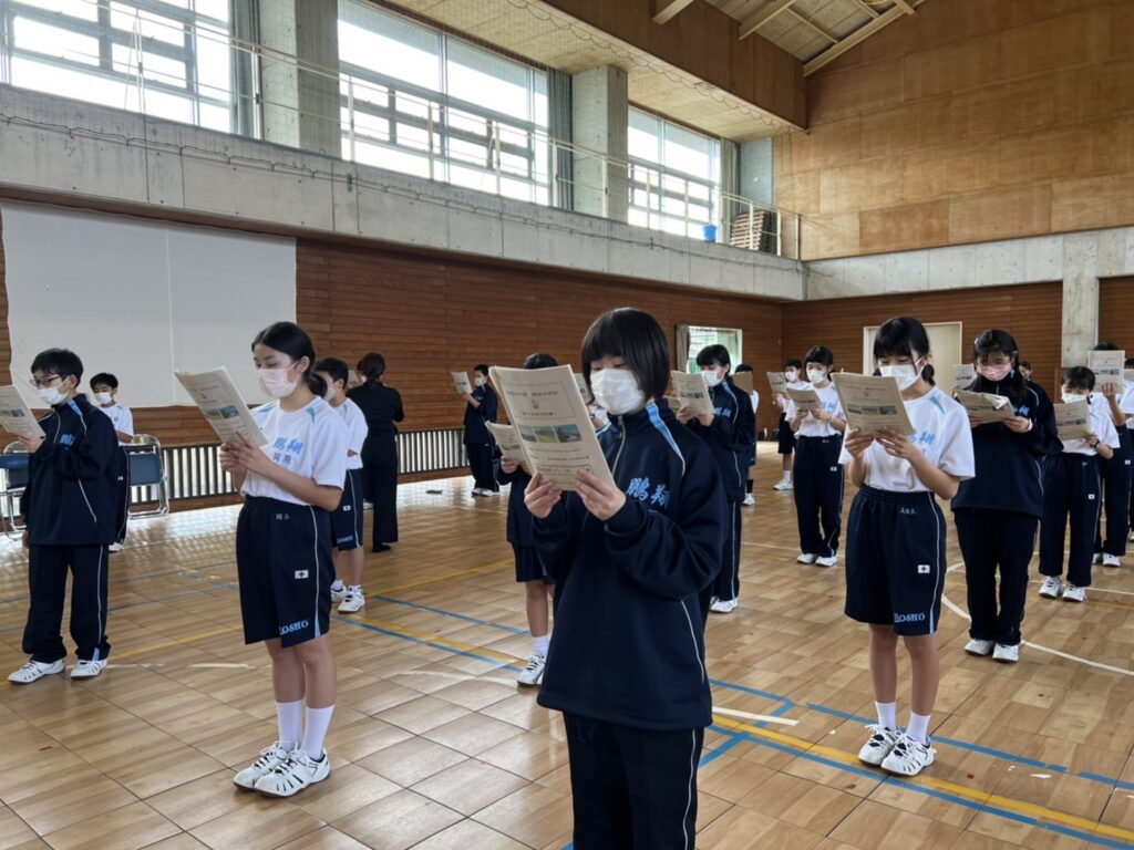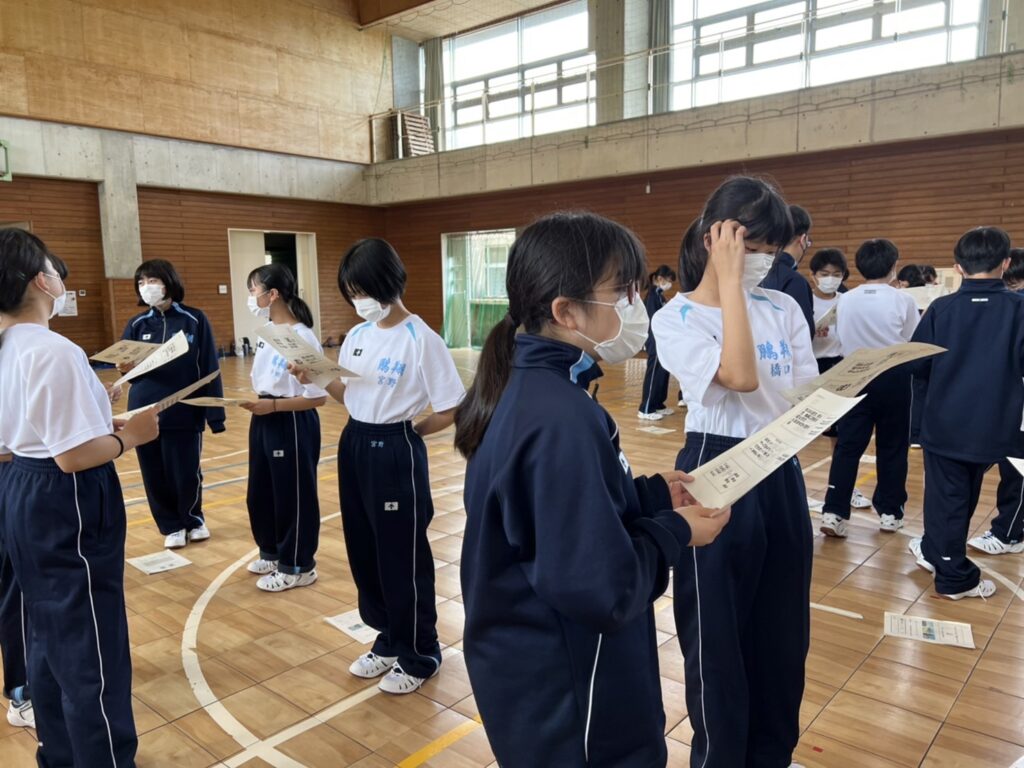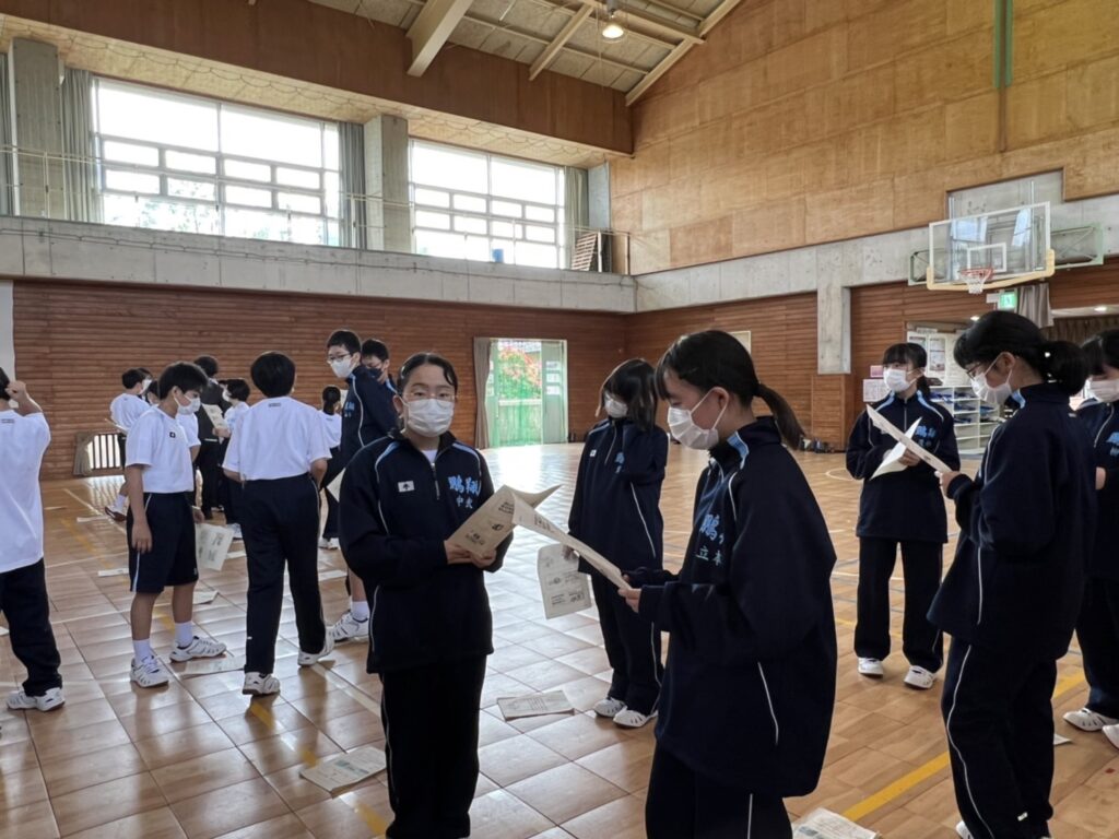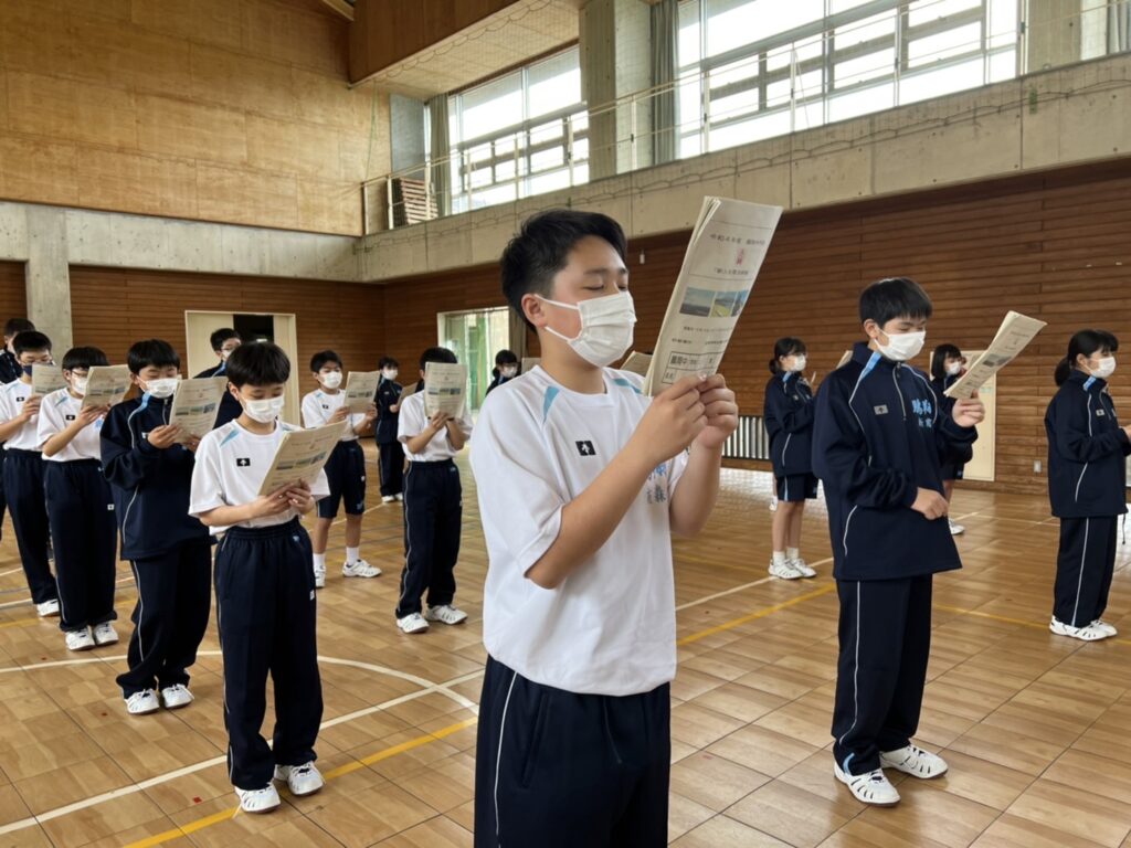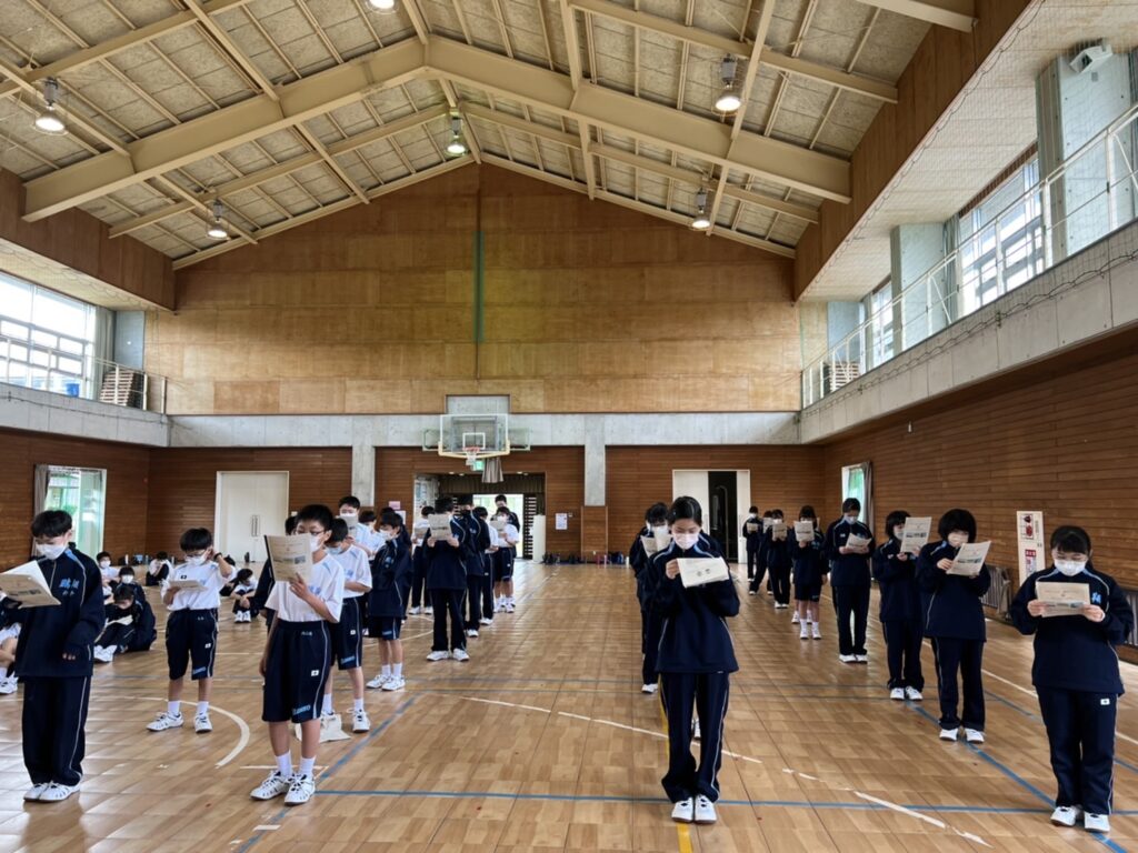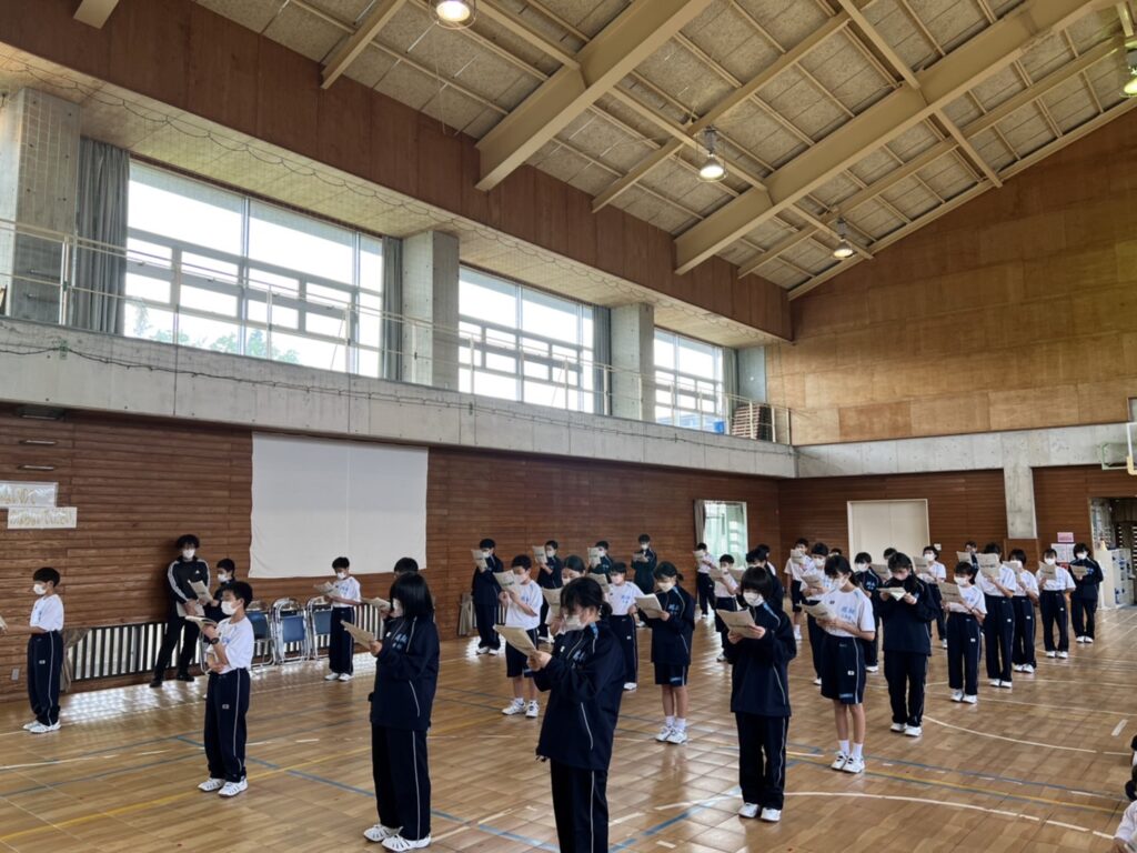 午後は、集団行動、校歌練習、校長講話、強歩会事前指導がありました。