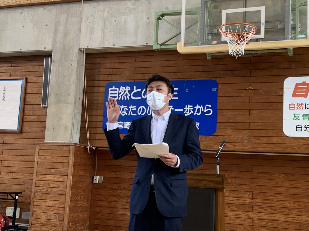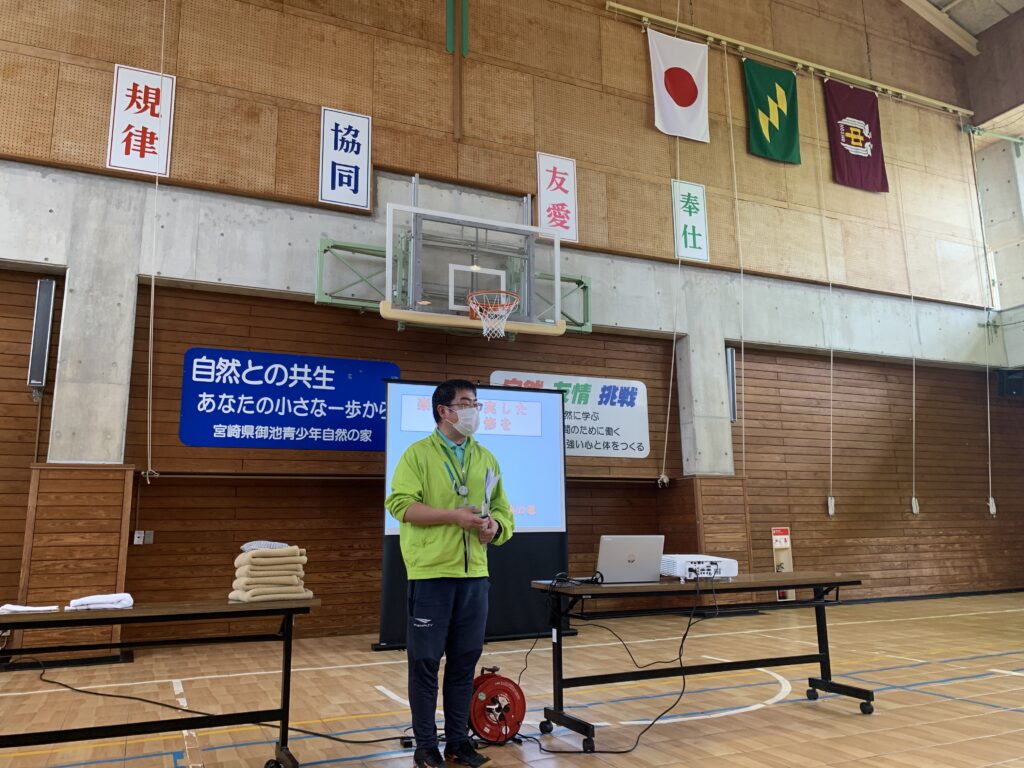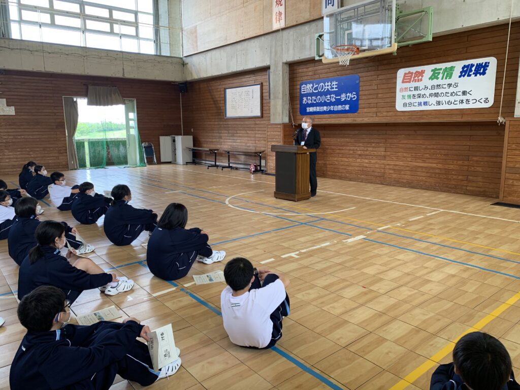 所長の渡邉さんより「自然に親しむ心を育んでください。規律協同友愛奉仕について見つめてください。困難に負けない強い心と体を身につけてください。」とのお言葉をいただきました。生徒代表の三重野くんから「3日間、楽しみましょう」という挨拶もありました。