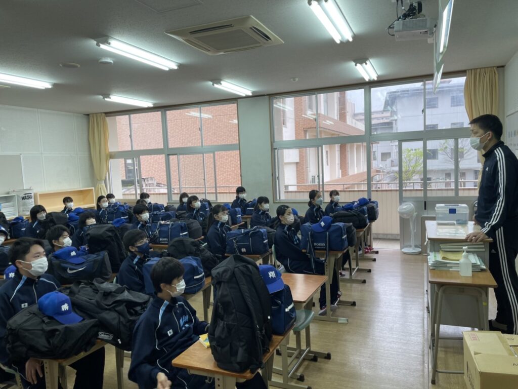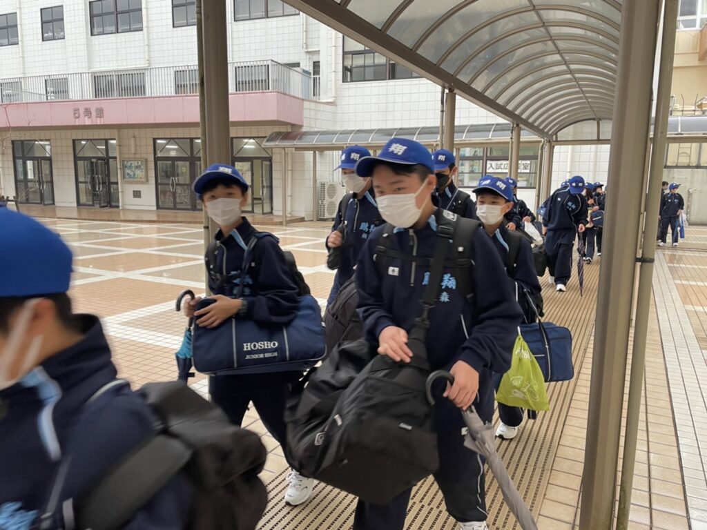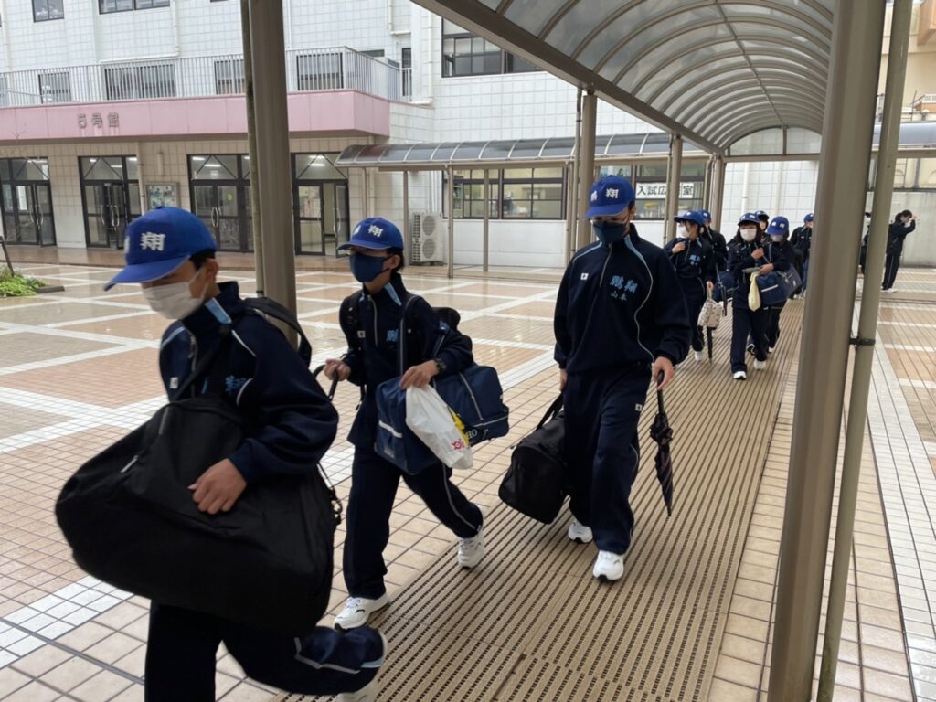 本日からJ1生の宿泊研修が始まりました。朝、各教室でホームルームを行ってから学校を出発し、2泊3日の間お世話になる御池青少年自然の家へ、無事に到着しました。