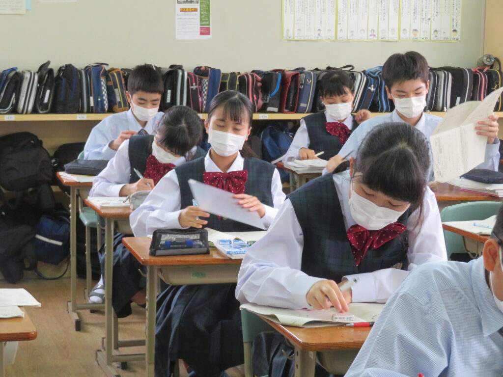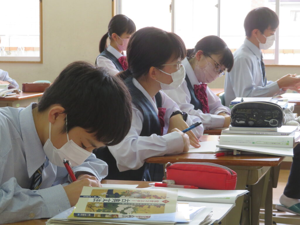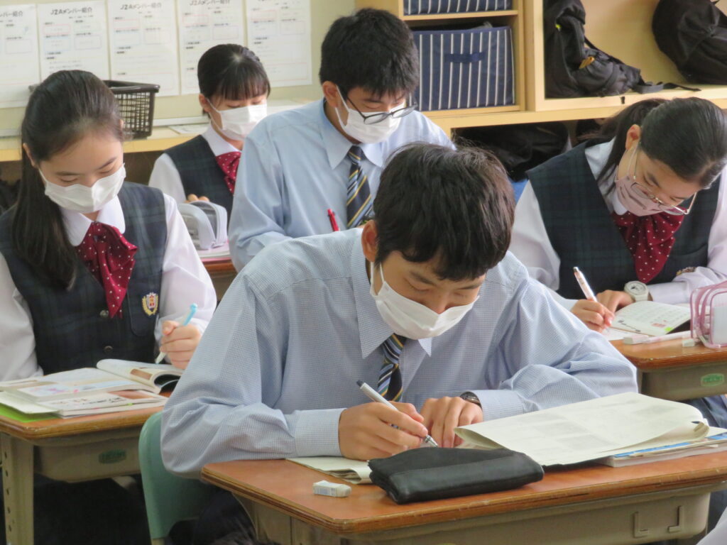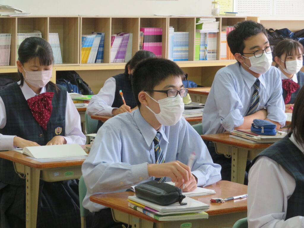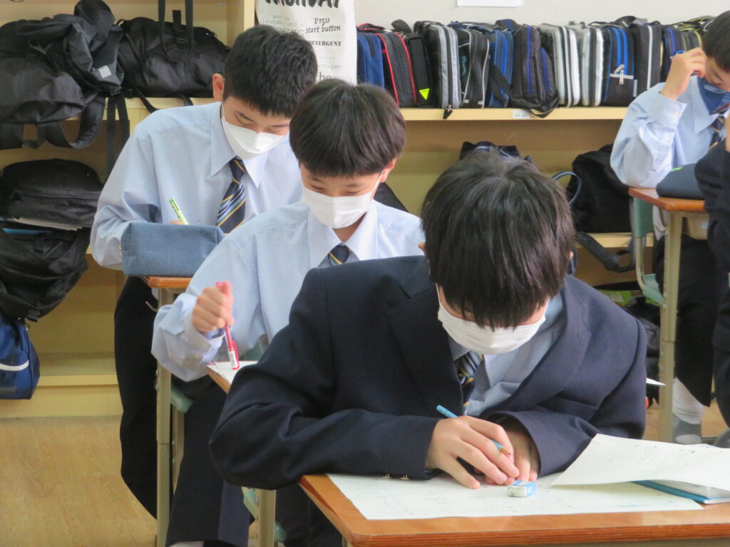 第1回定期考査2日前です。J1の数学では、テスト対策が行われていました。休み時間や放課後の時間には、先生に質問に行く姿も見られました。