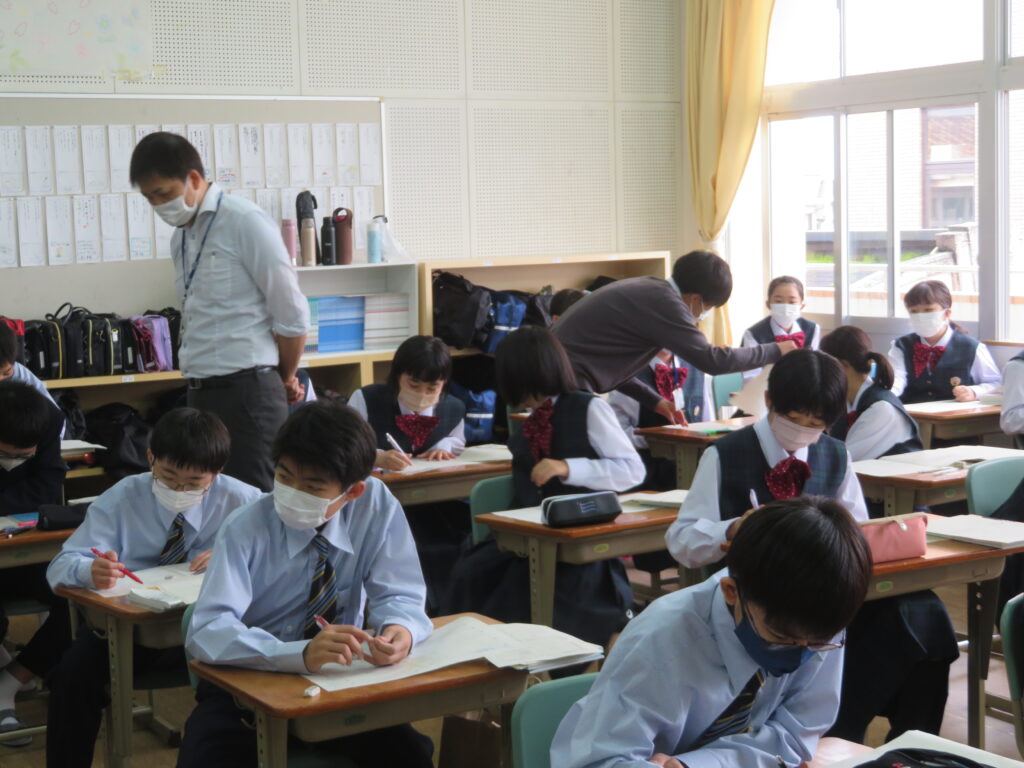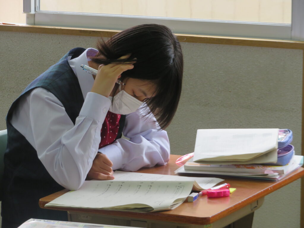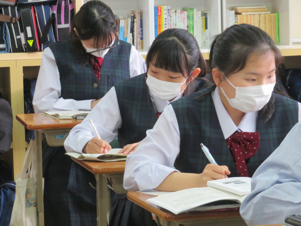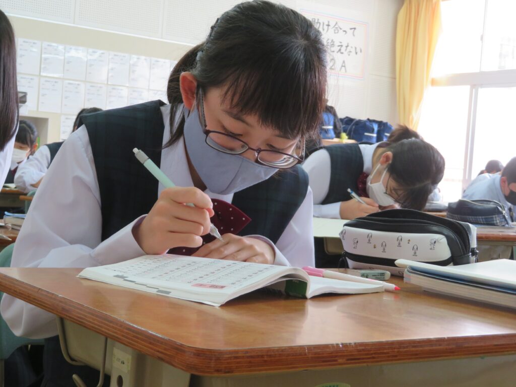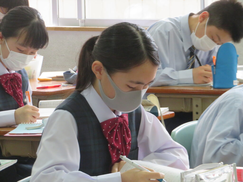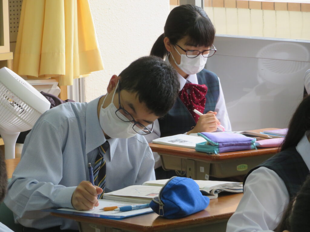 第1回定期考査2日前です。J1の数学では、テスト対策が行われていました。休み時間や放課後の時間には、先生に質問に行く姿も見られました。