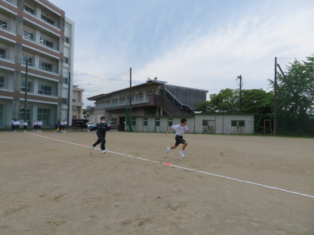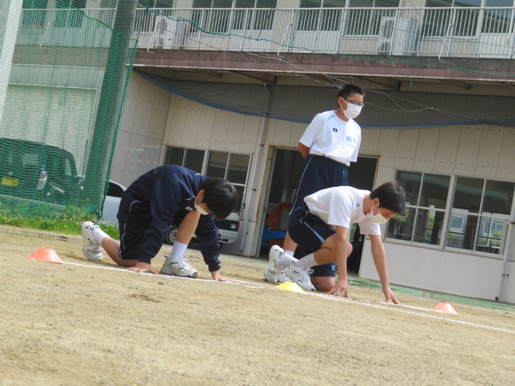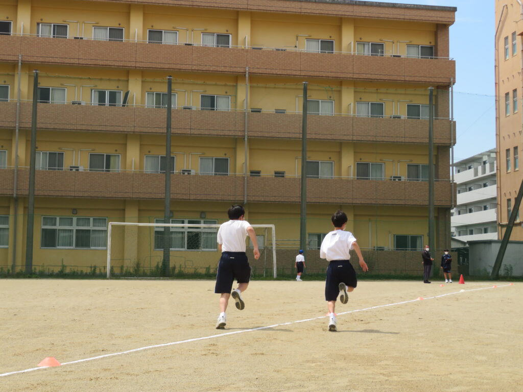 本日5限目、J1生は50メートル走をしていました。体育の授業はスポーツテスト真っ最中です!