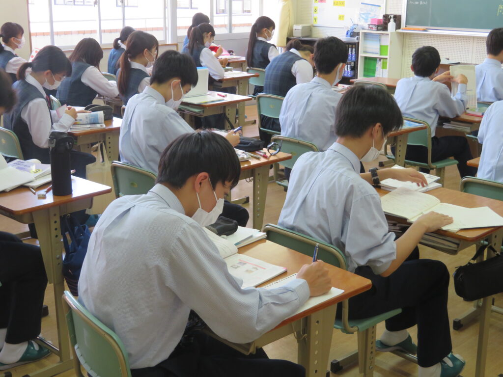 本日より、第1回定期考査が始まりました。J1生は、初めての定期考査ですね。 登校後から教室では静かにテスト勉強に励む姿が見られました。
