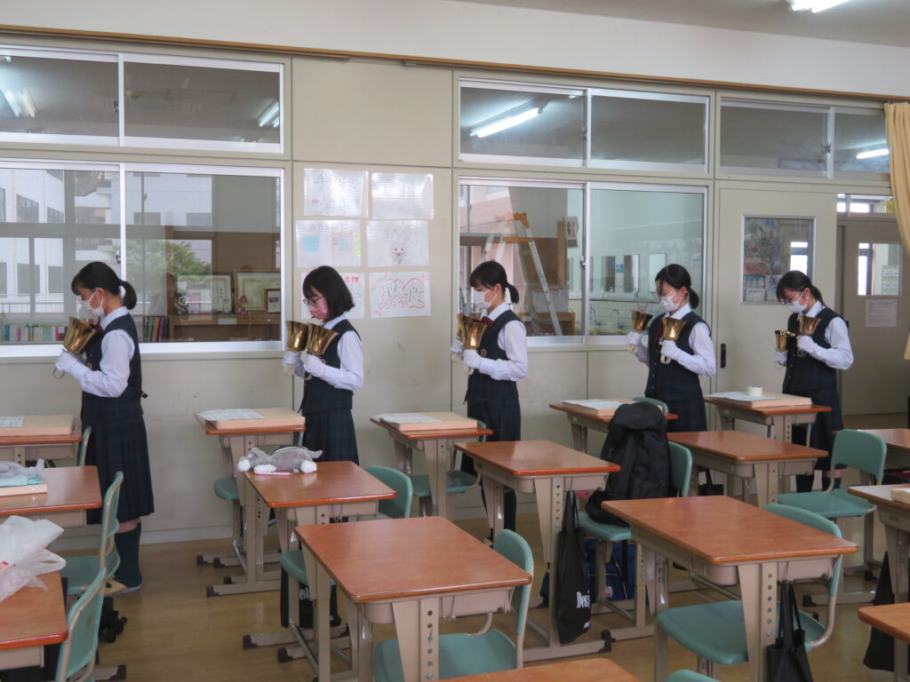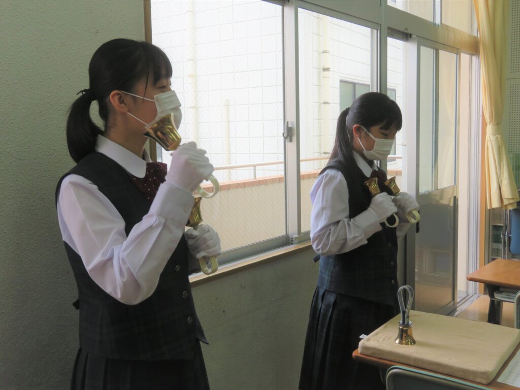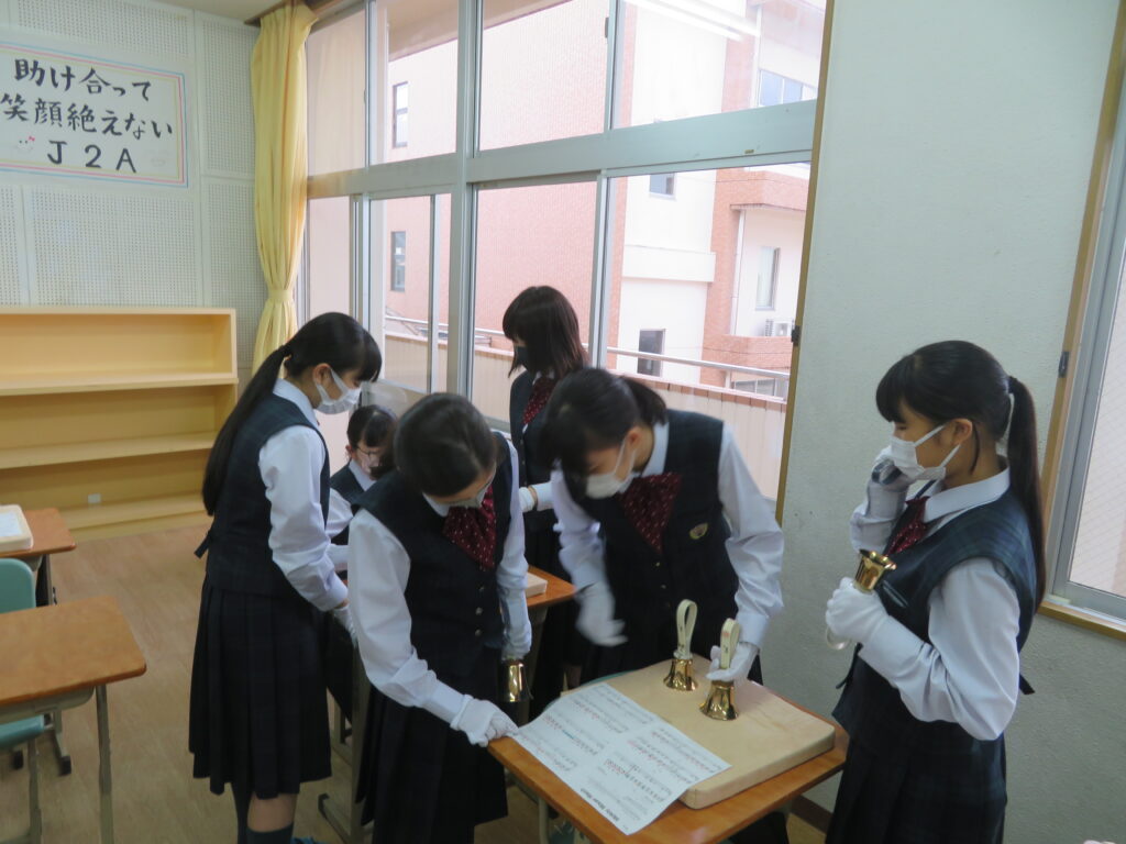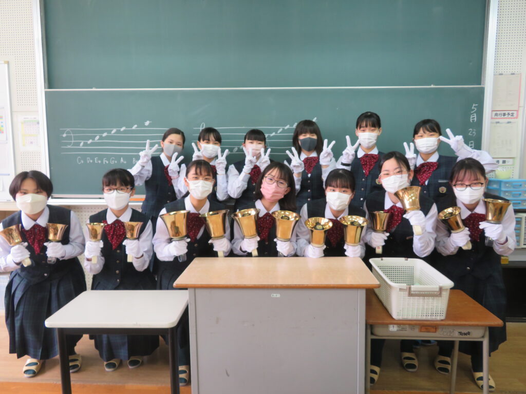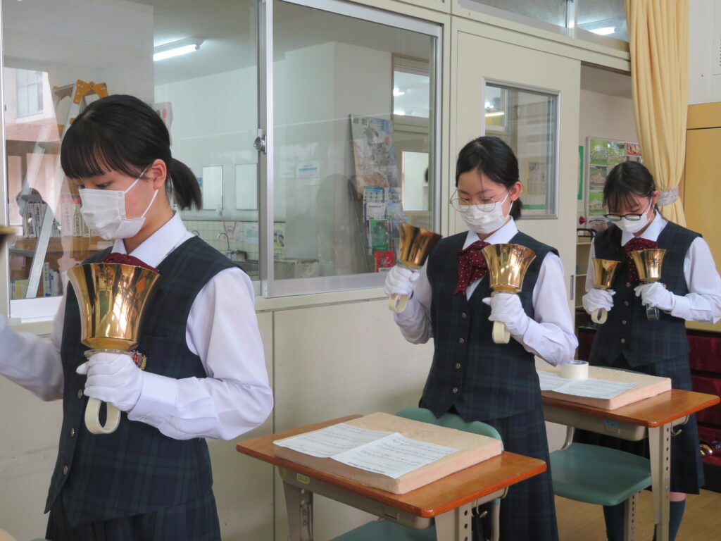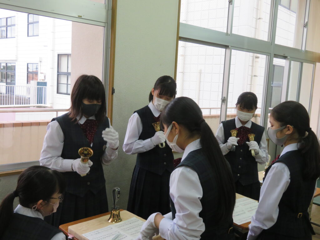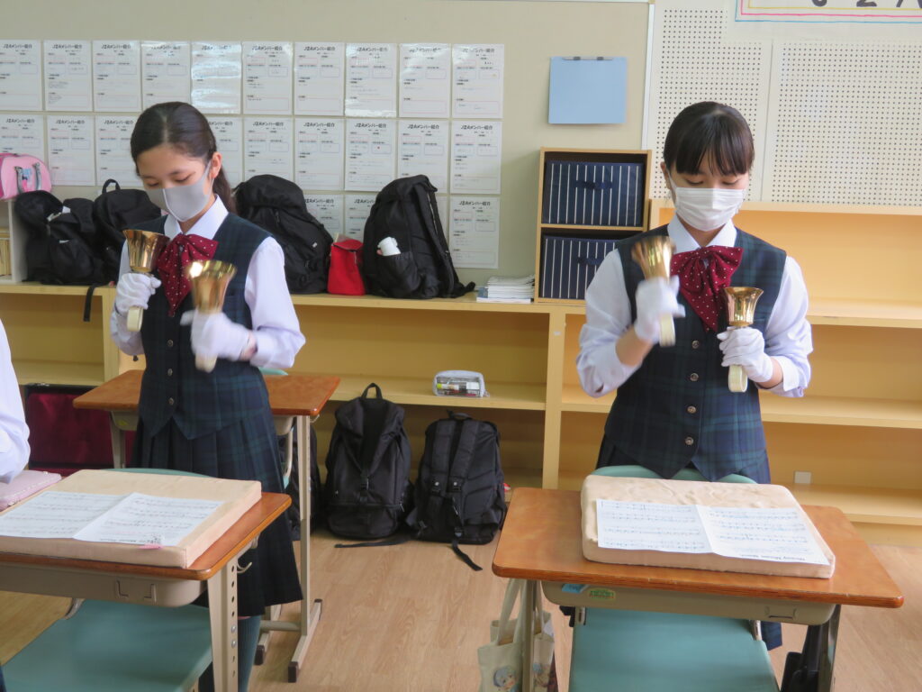 本日は、ハンドベル練習の様子を紹介します。J3生とJ2生の合同チームです!J2生は、この練習が初めてになります。