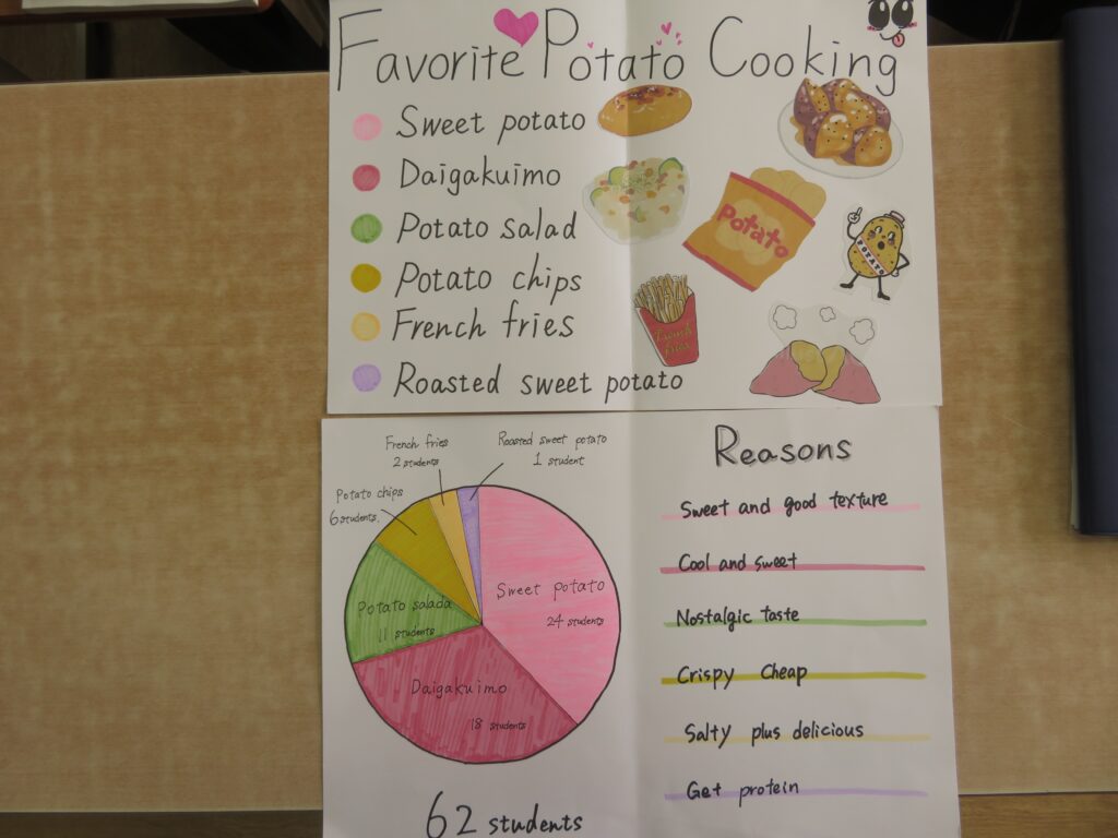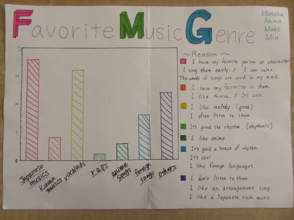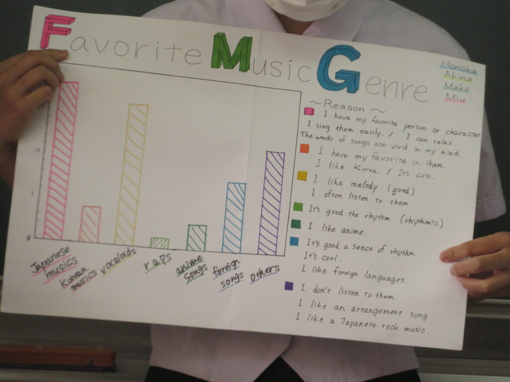 聞き手にうまく伝わるように、グラフを作成するグループもあり、工夫してプレゼンテーションを行うことができました。