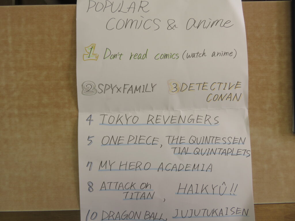 本日、J2英語発展クラスでは「人気のあるものを調べて発表しよう!」というテーマでプレゼンテーションを行いました!