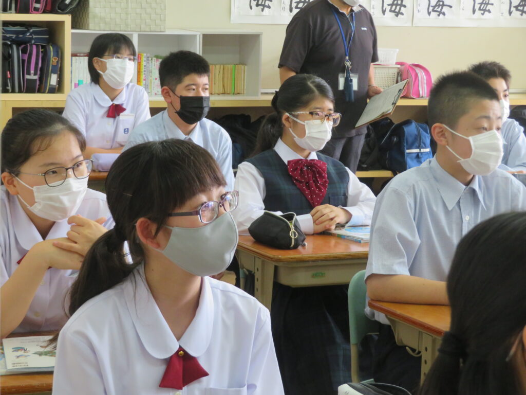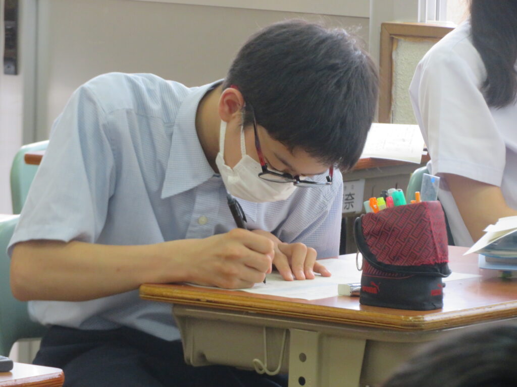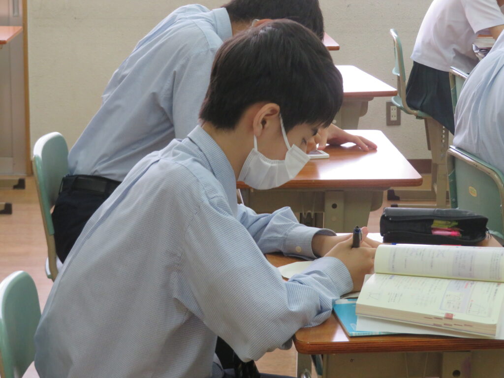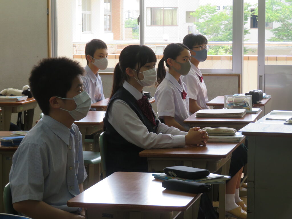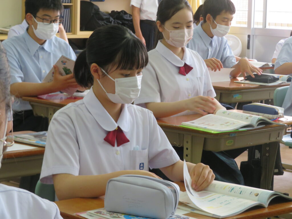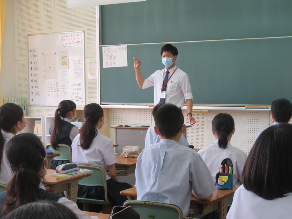本日3限目、J2-A教室にて教育実習生村田先生の研究授業が行われました。教科は、保健です。たくさんの先生が見に来られている中、いつも通り集中して授業を受けていました。