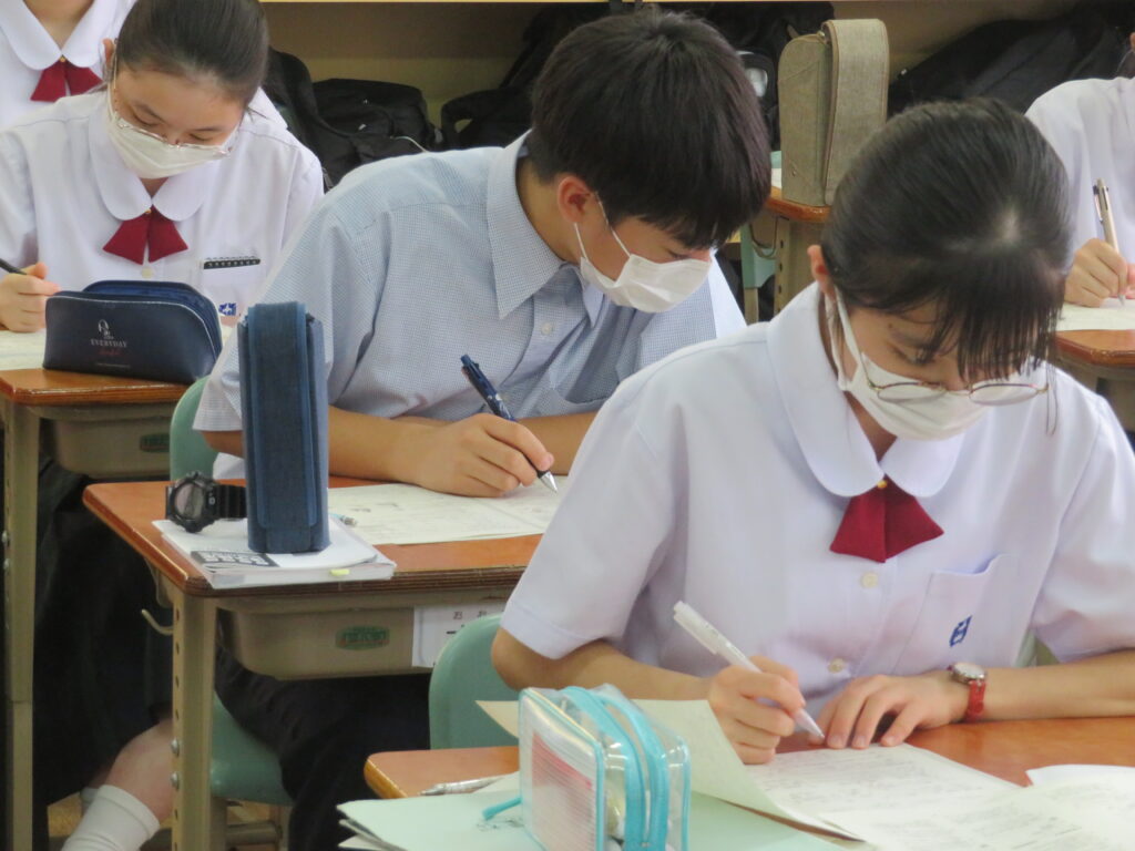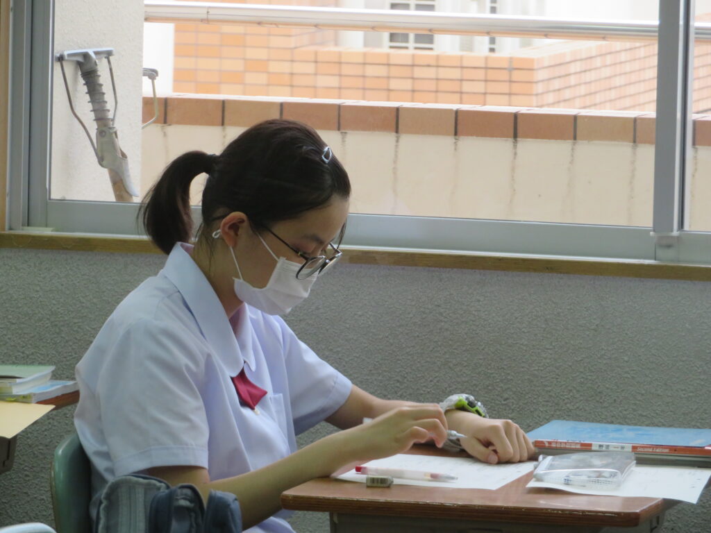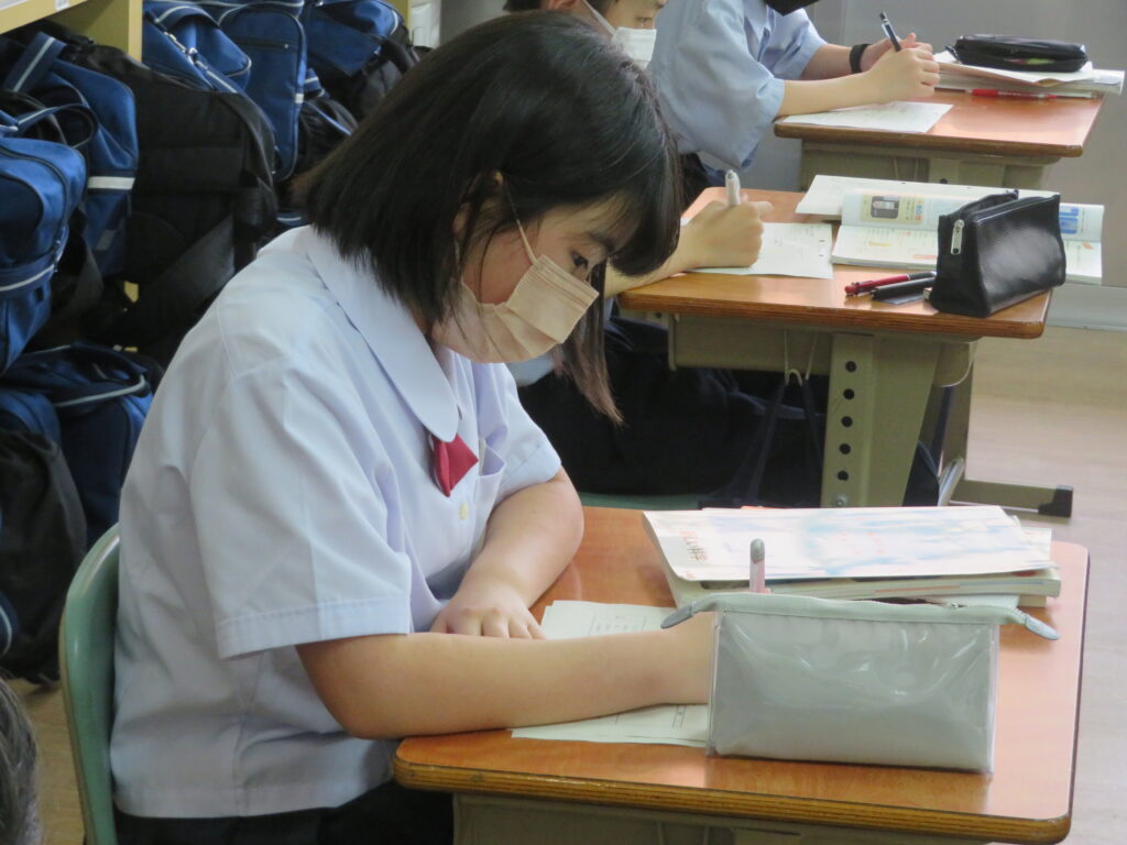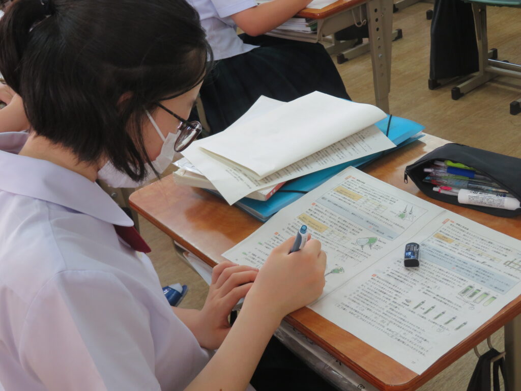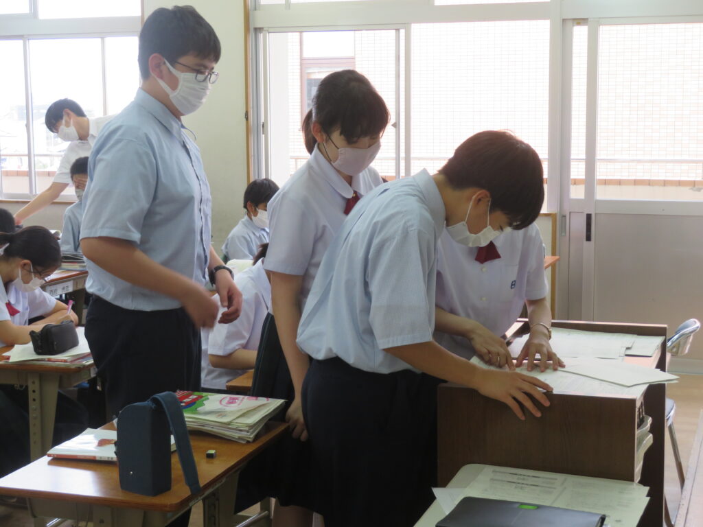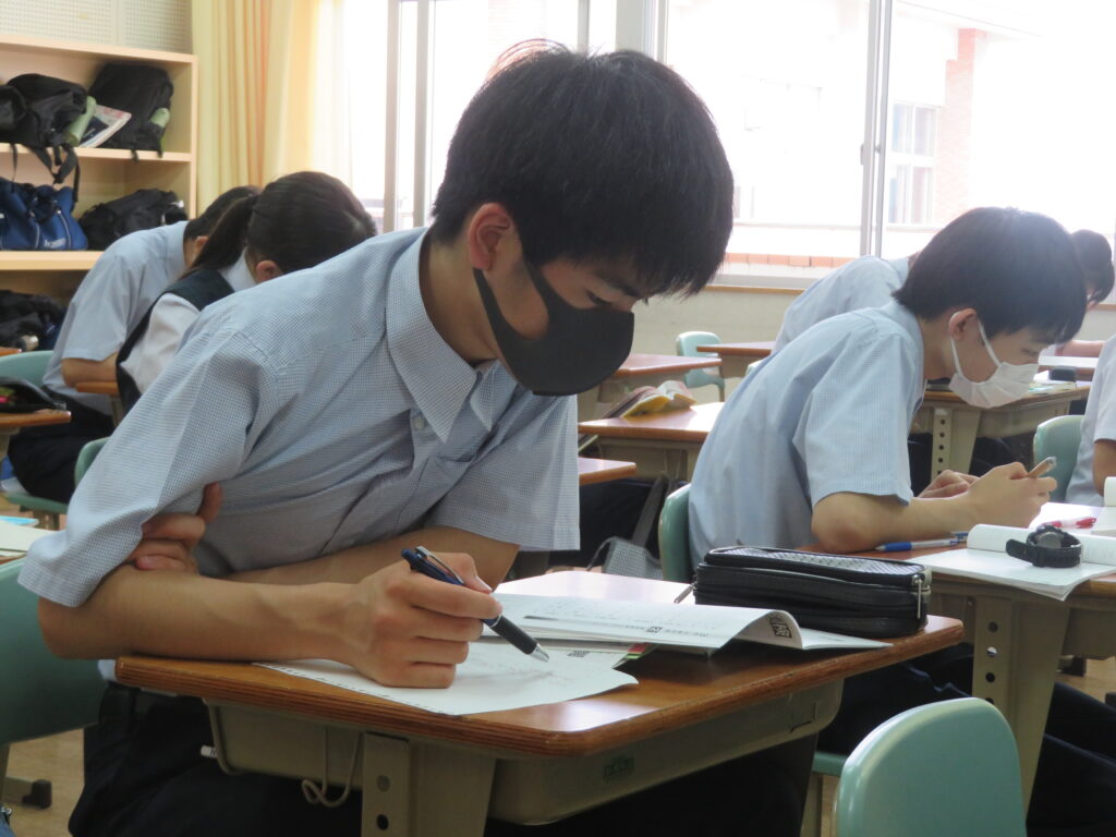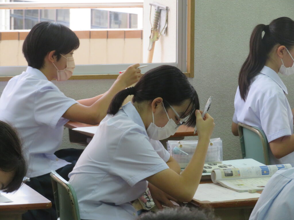 本日3限目、J2-A教室にて教育実習生村田先生の研究授業が行われました。教科は、保健です。たくさんの先生が見に来られている中、いつも通り集中して授業を受けていました。
