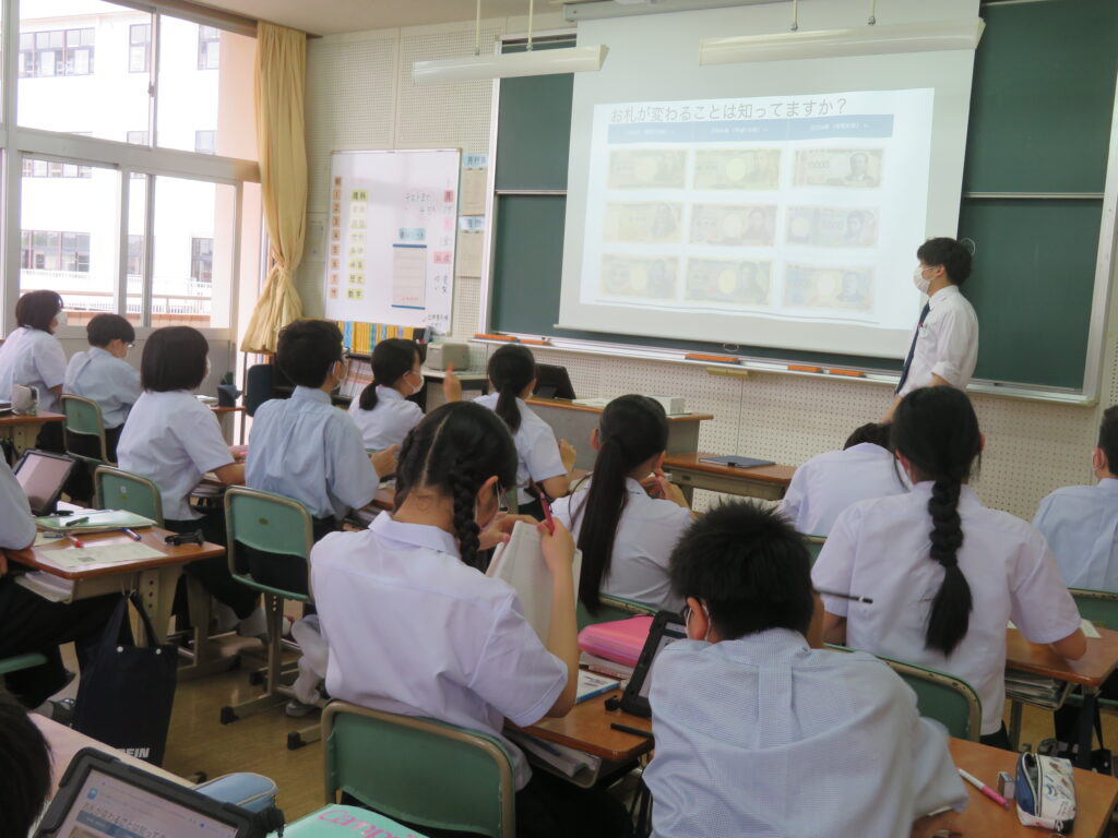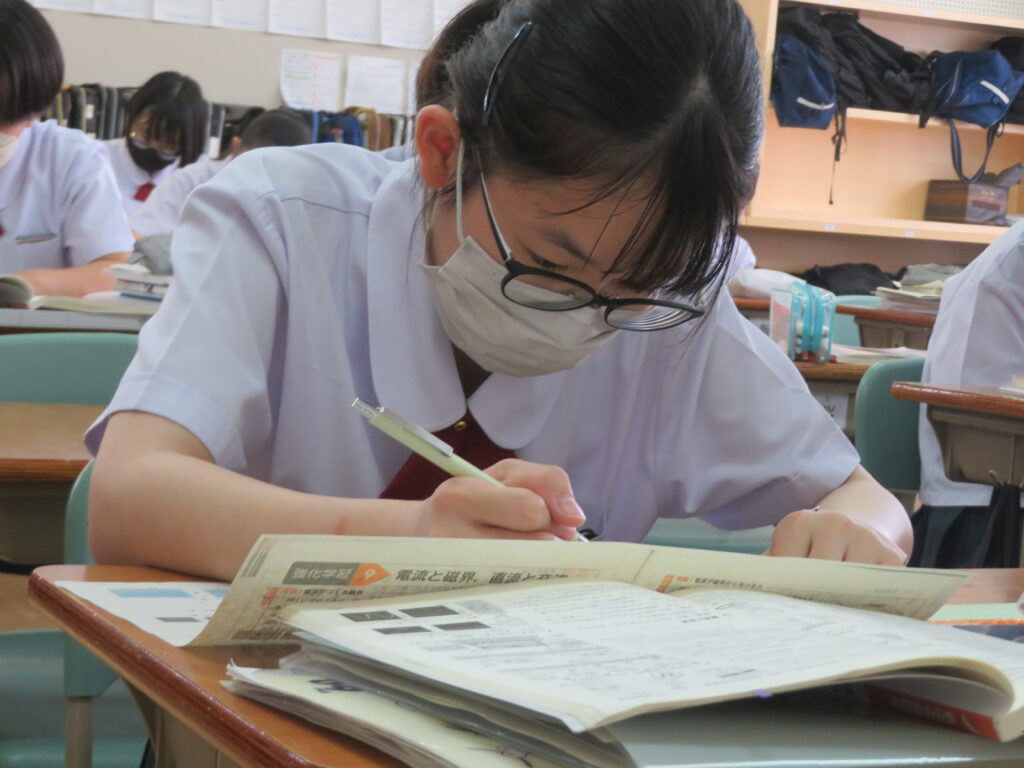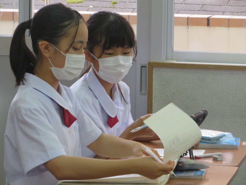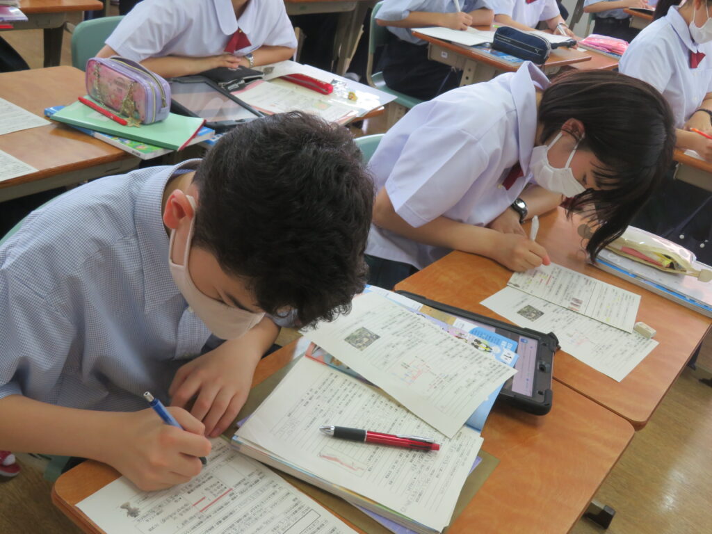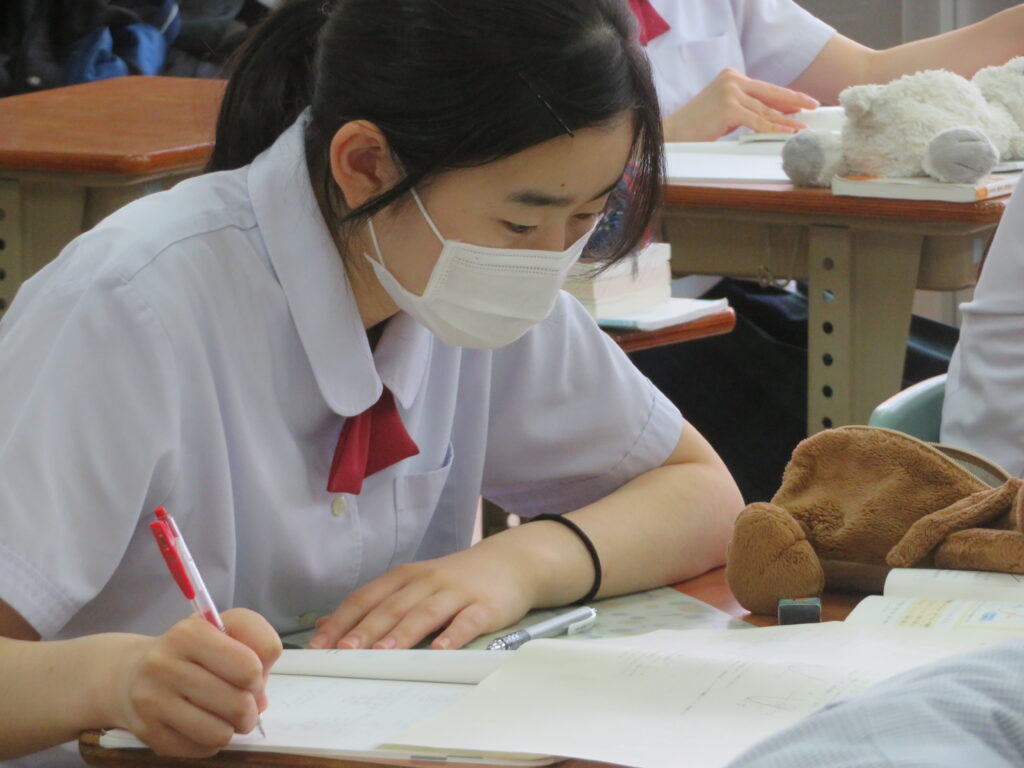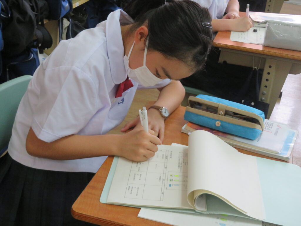 本日3限目、J2-A教室にて教育実習生村田先生の研究授業が行われました。教科は、保健です。たくさんの先生が見に来られている中、いつも通り集中して授業を受けていました。