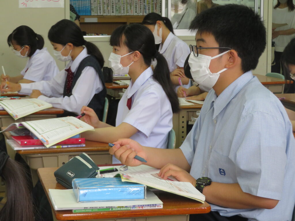 参観授業は、J1A・B 国語 J2A・B 英語 J3A・B 理科の授業が行われました。その後、学級懇談が行われました。