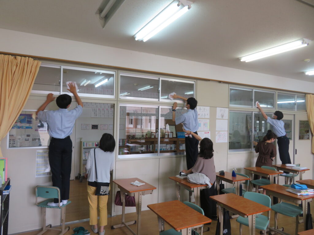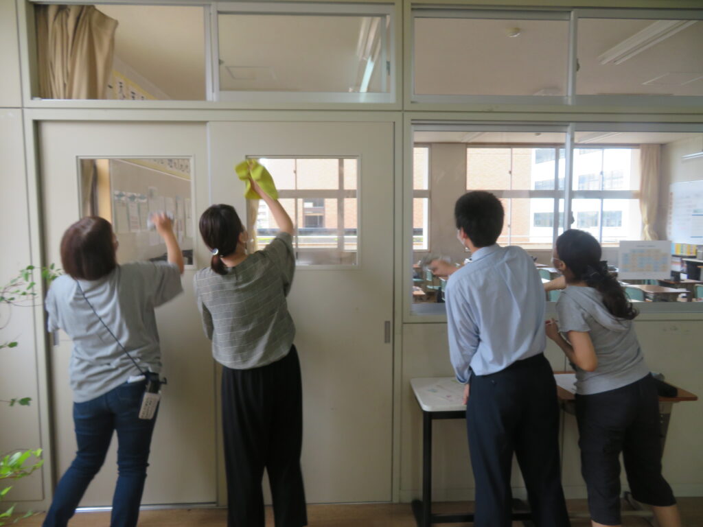 最後に、PTA清掃ボランティアを行いました。普段の清掃では手の届かない上窓など、一緒に清掃をしていただき、本当にありがとうございました。よりきれいになった校舎で、来週から始まる第2回定期考査を頑張ります!