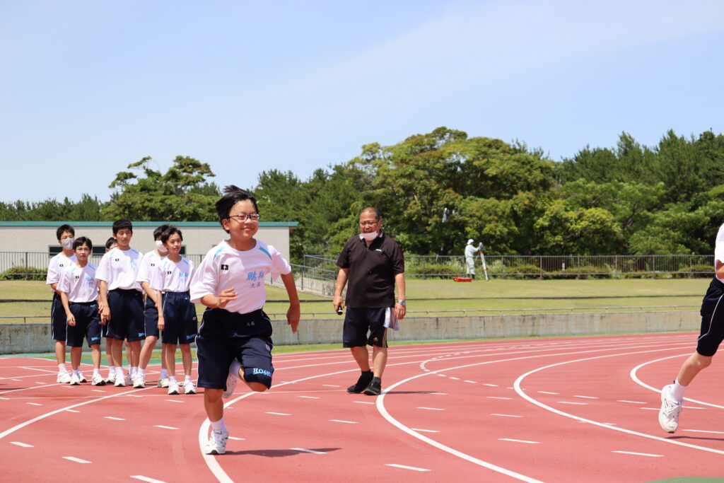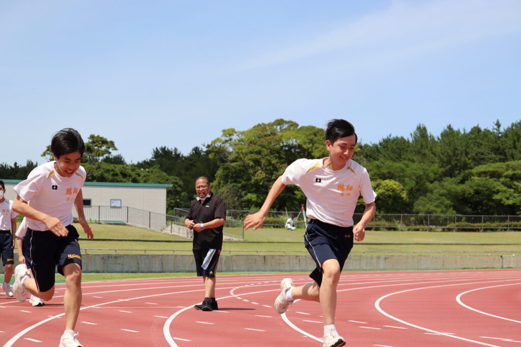 一方で、男子は陸上競技場で50m走のタイム測定を行いまいした。