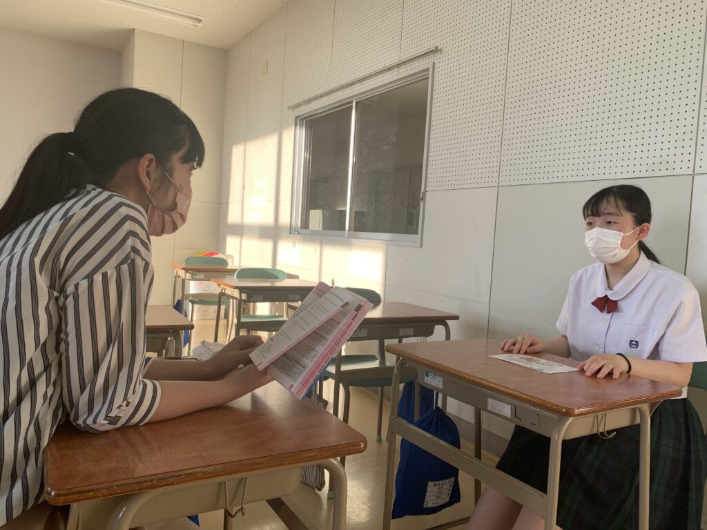 放課後の時間やお昼休みを使って、英語検定2次試験に向けた面接練習が行われています。