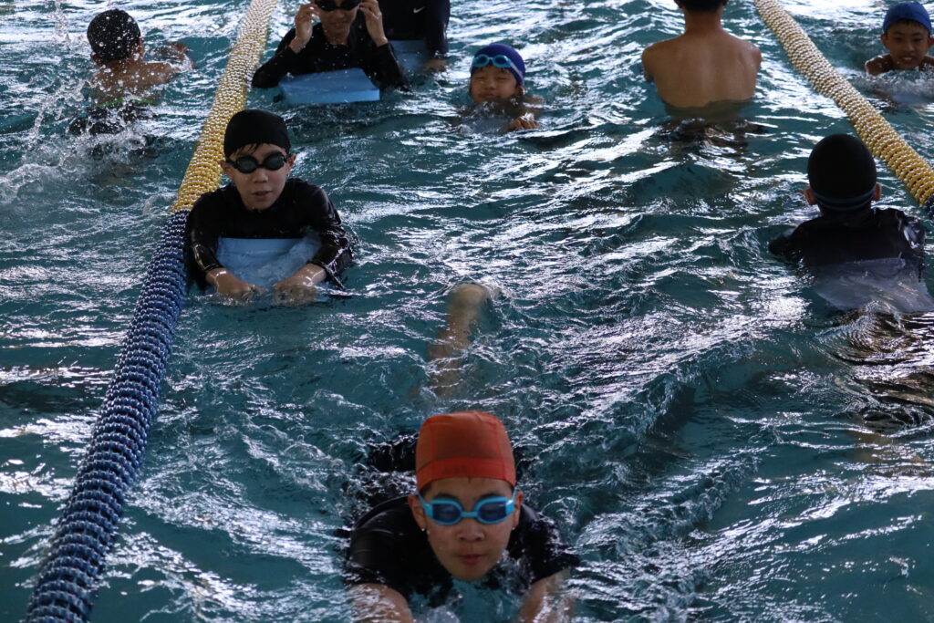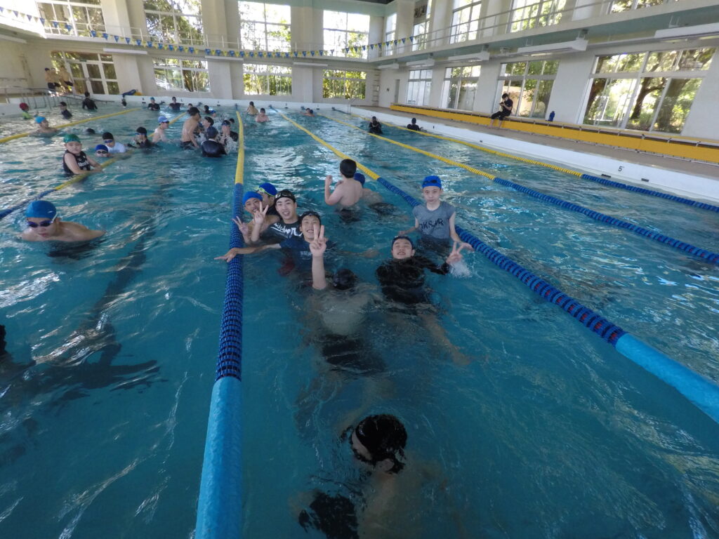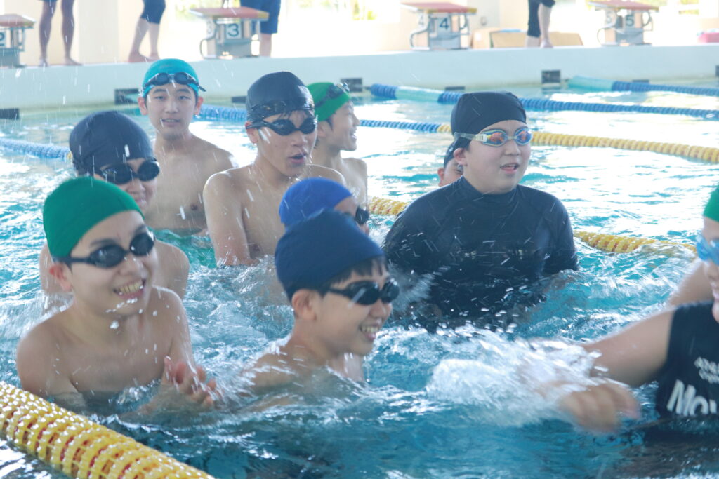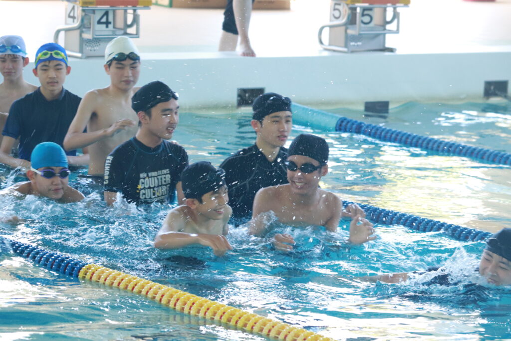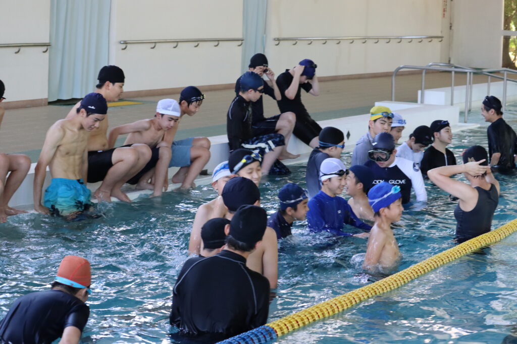 体育の先生に泳ぎ方等を教えていただき、コースに分かれて時間いっぱい練習を行いました!