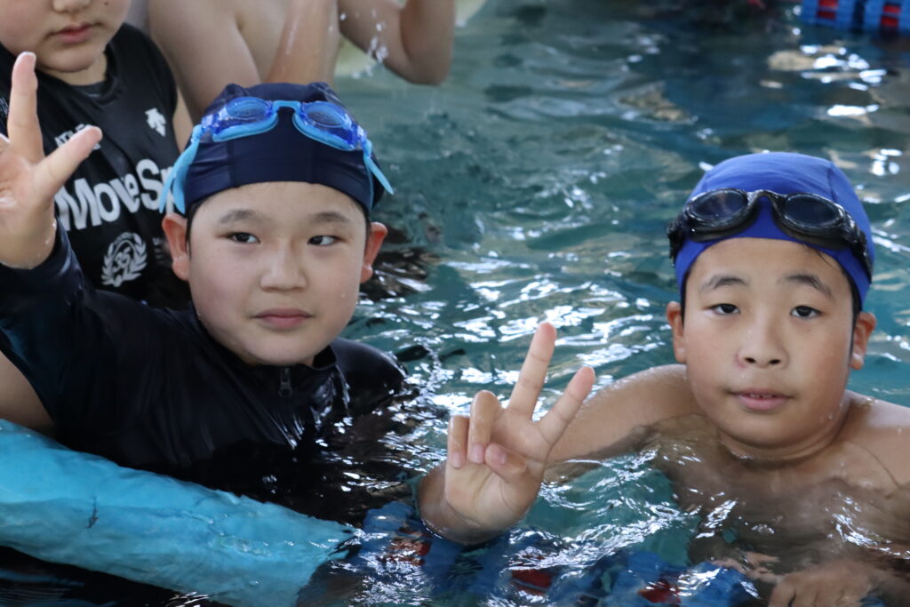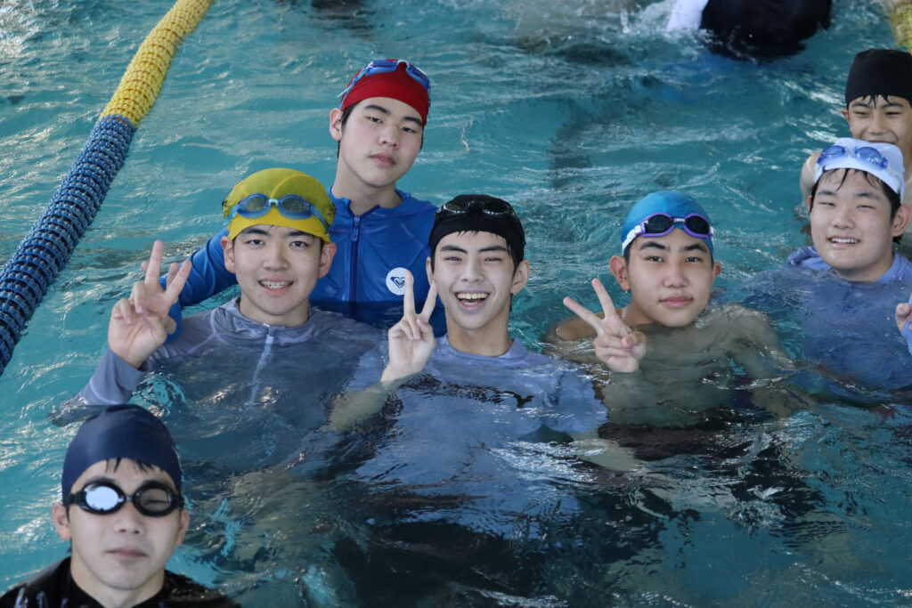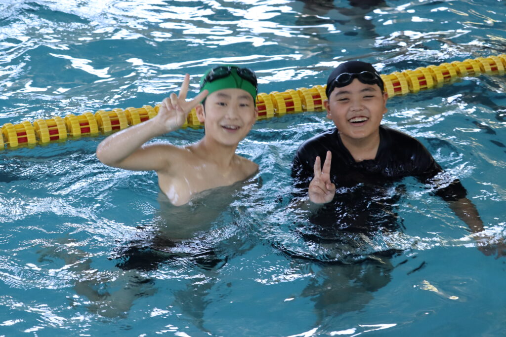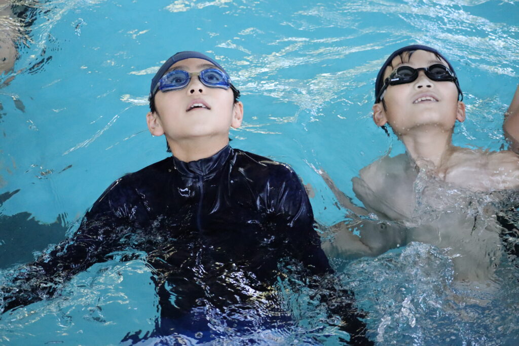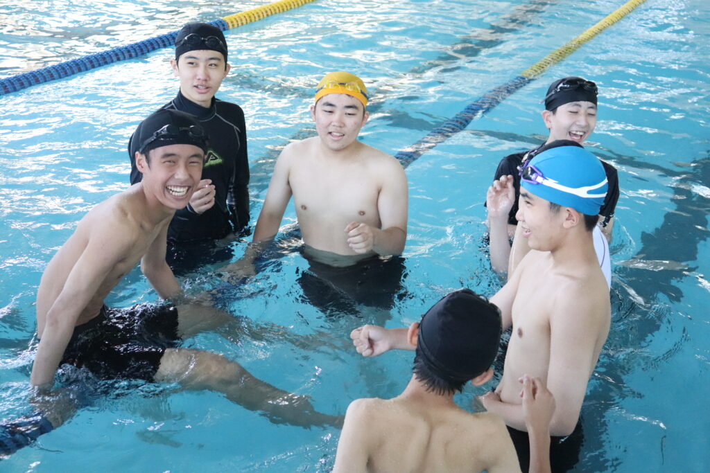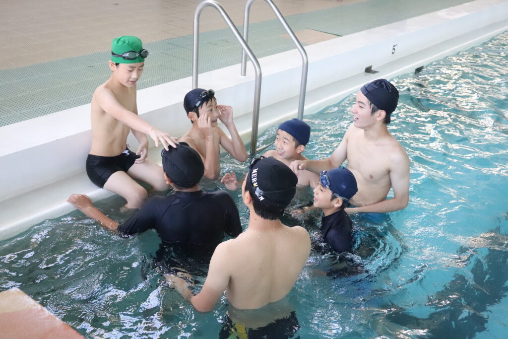 体育の先生に泳ぎ方等を教えていただき、コースに分かれて時間いっぱい練習を行いました!