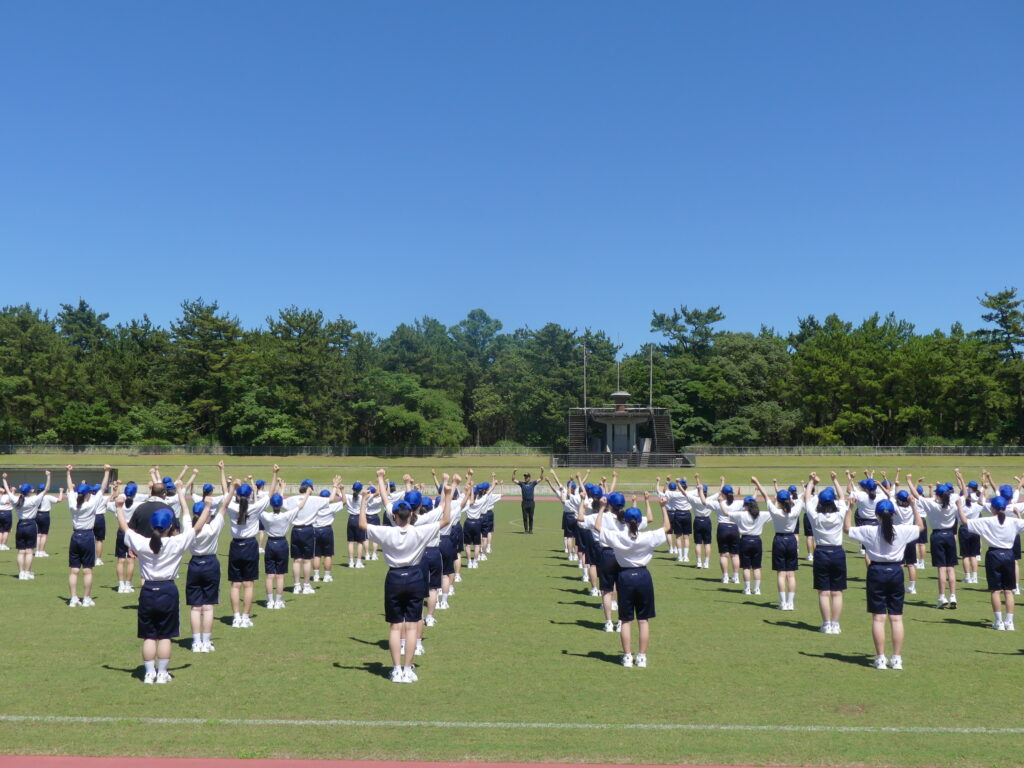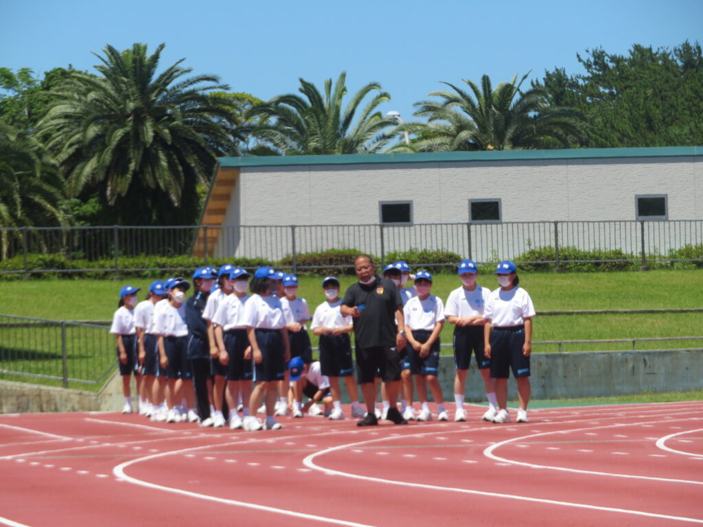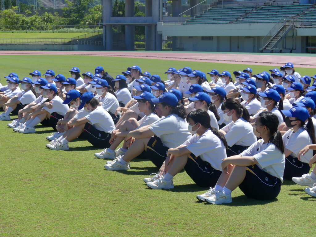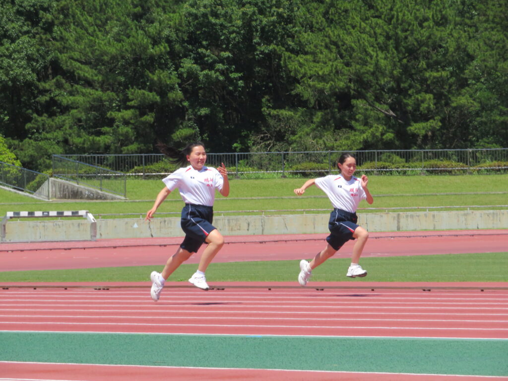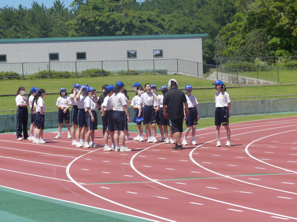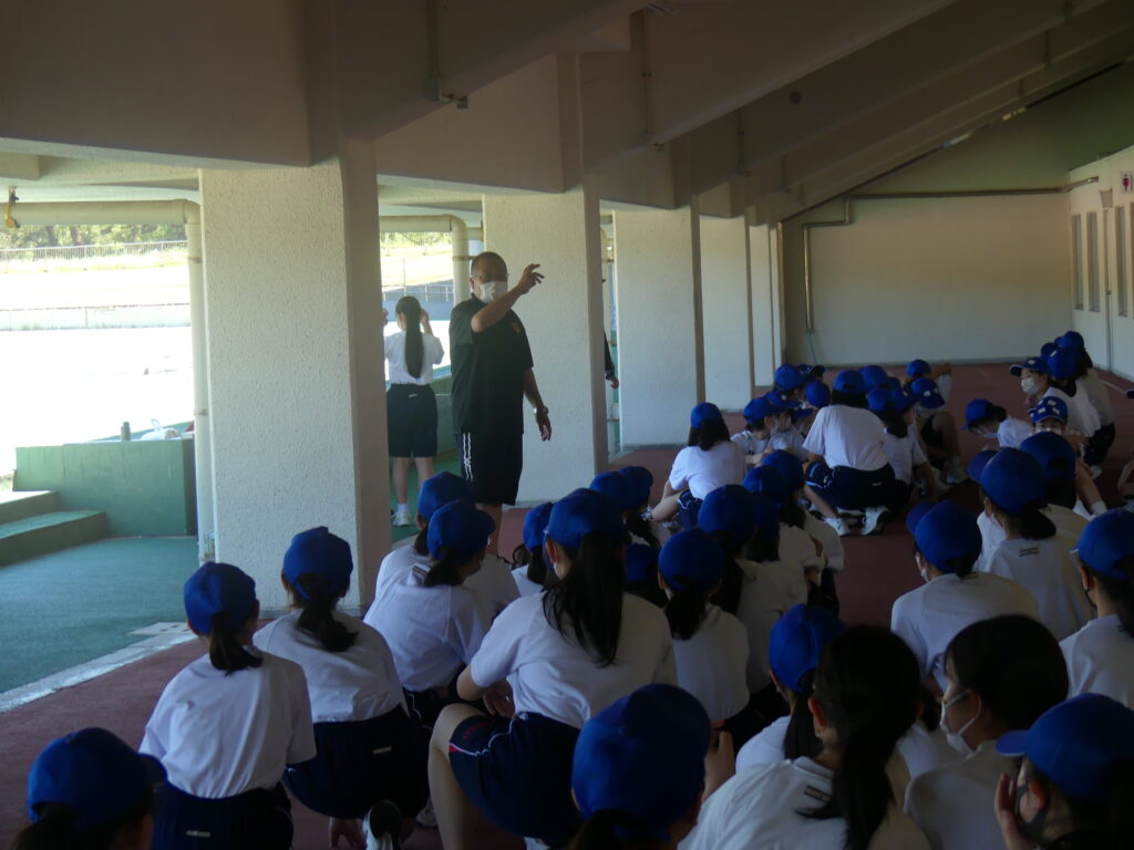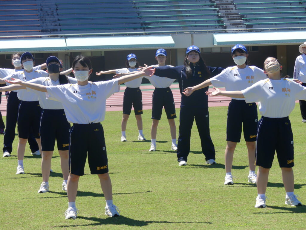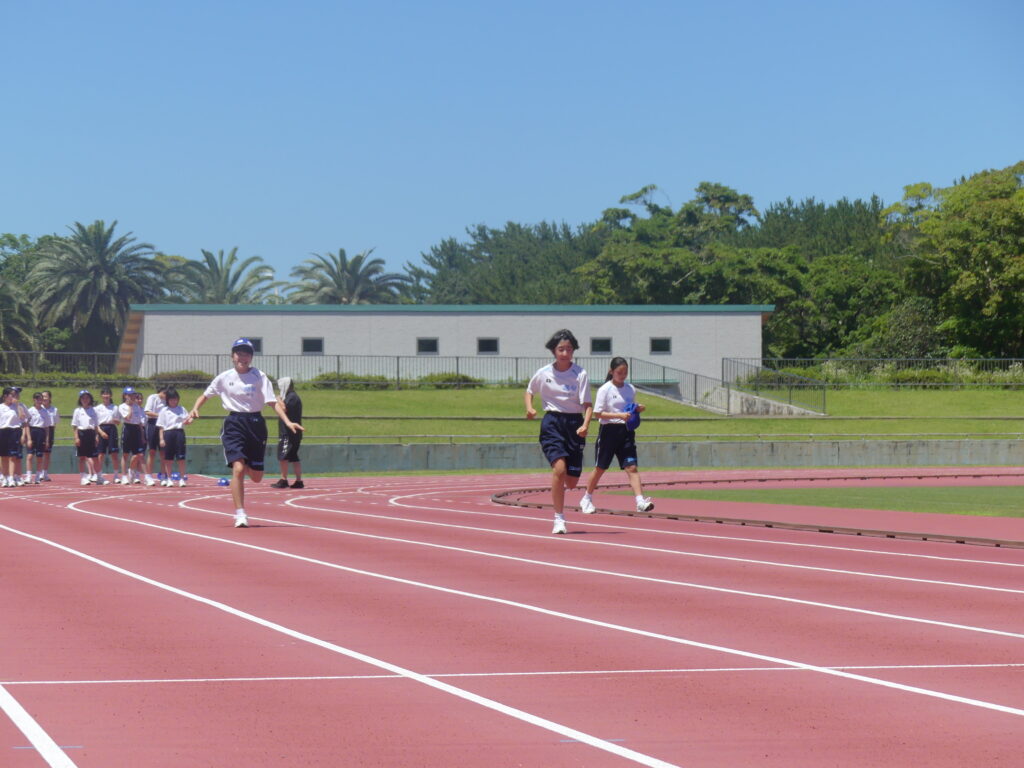 女子は陸上競技場で50m走のタイム測定、ラジオ体操を行いました。