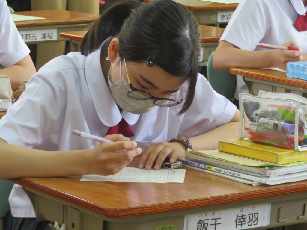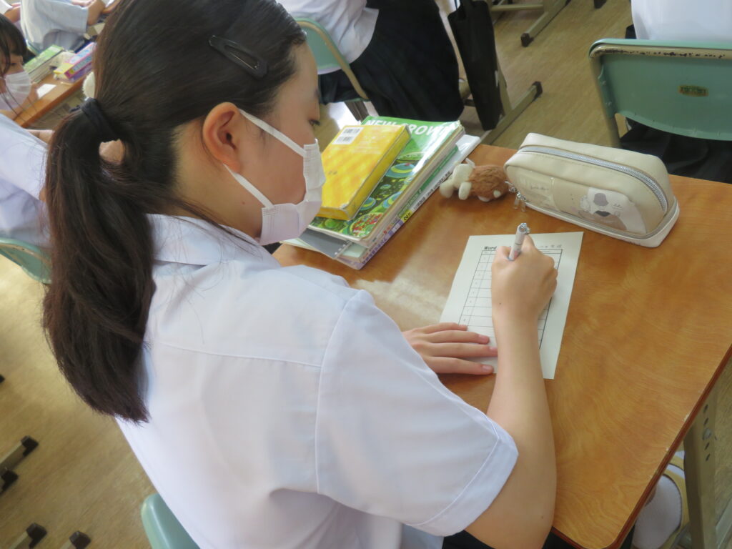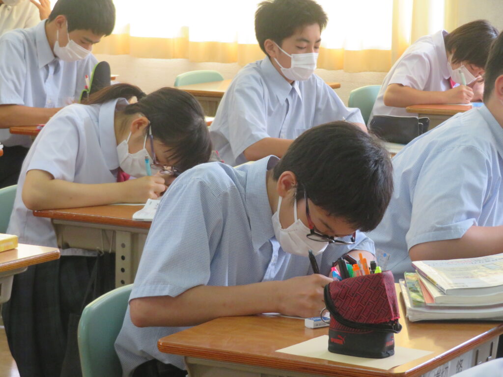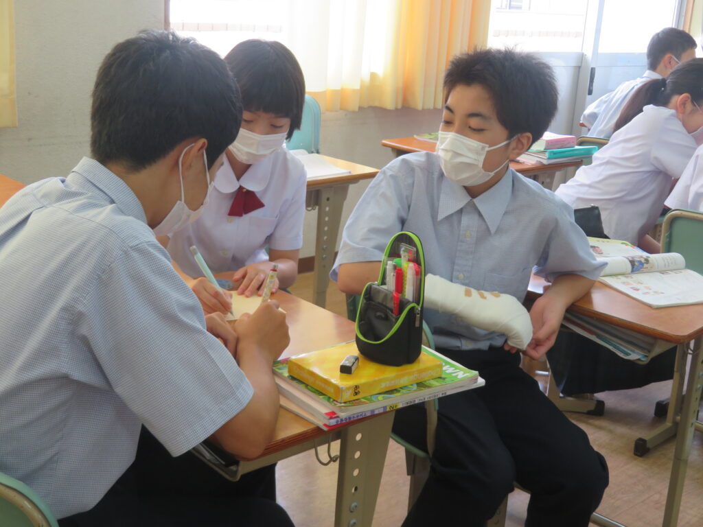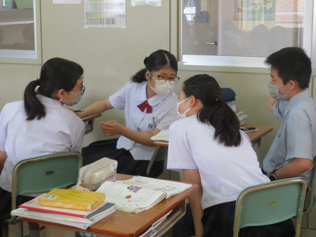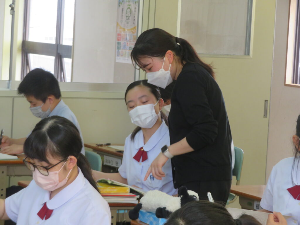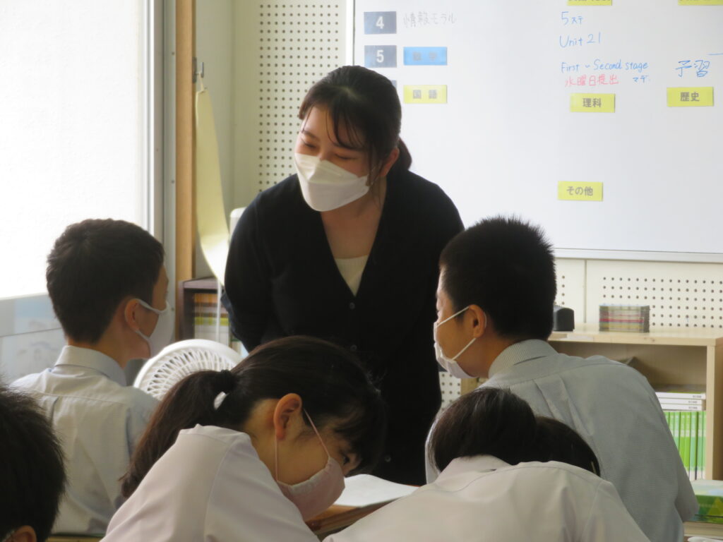 英語科の先生方が参観に来られて少し緊張している様子ではありましたが、和やかな雰囲気で授業が行われていました。生徒との対話のような掛け合いの中で、一つ一つの知識を丁寧に確認していました。