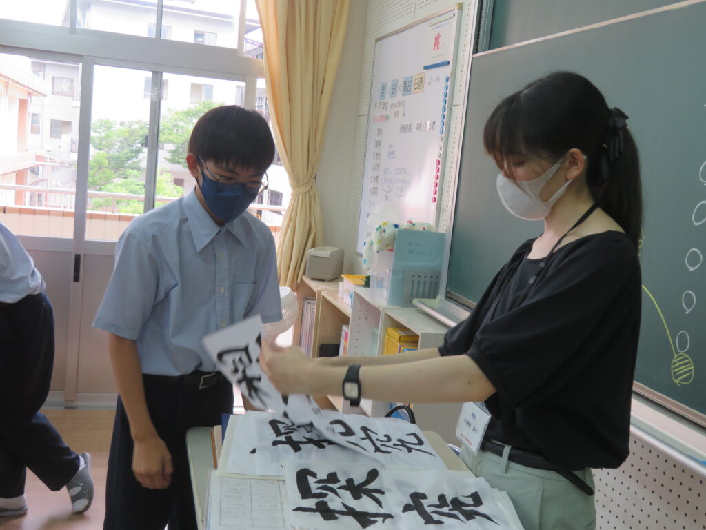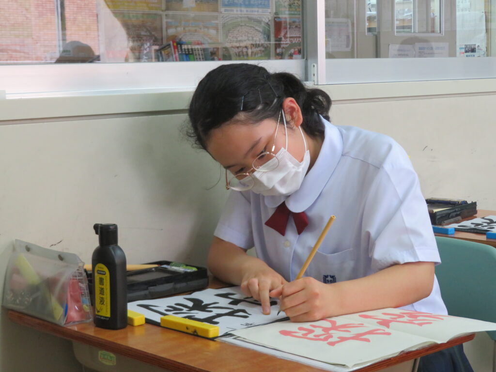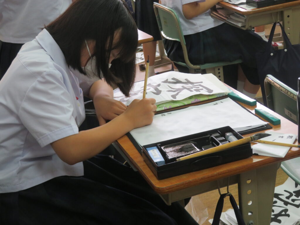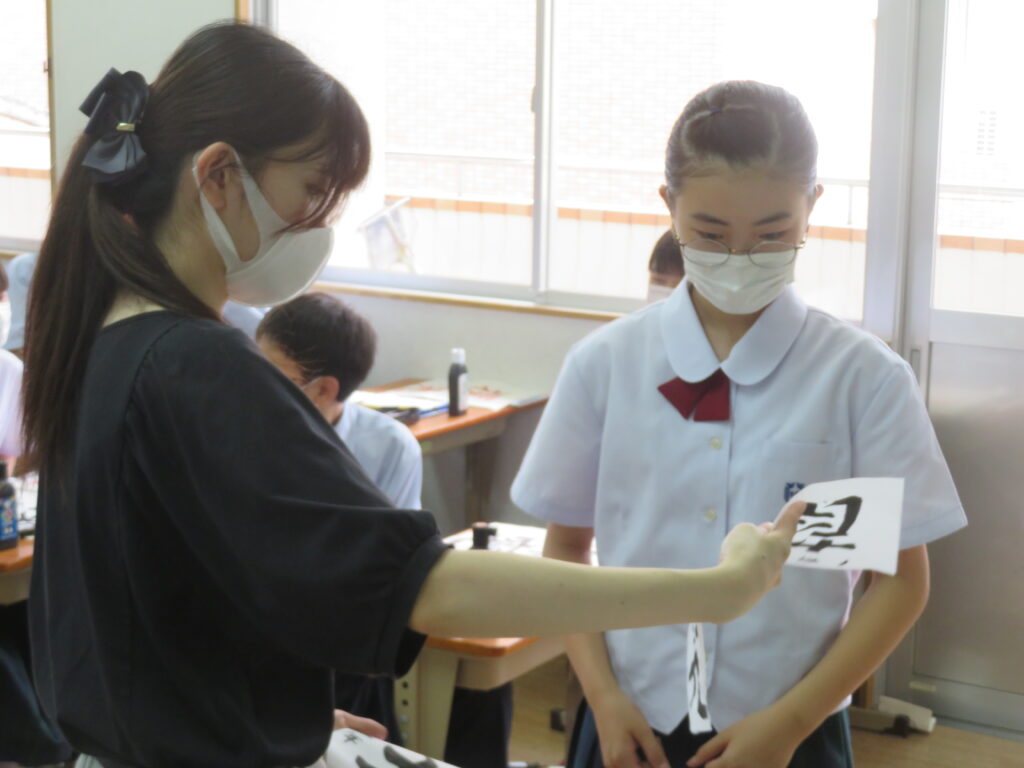 毎週火曜日の7限目、J1-Bは書道の時間です。今日は「探究」を書いていました。 中屋敷先生にアドバイスをもらいながら清書し、提出をしていました。 今回の作品は文化発表会の際、展示をします。楽しみにしていてください!