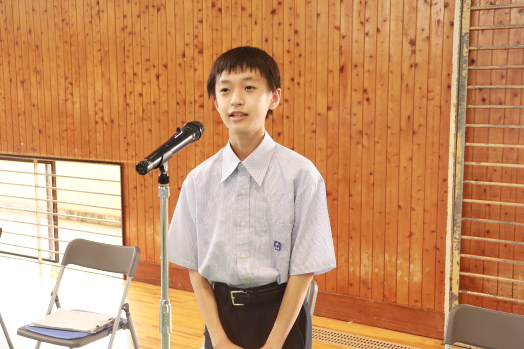 本日の司会は、J2-B濵田みゆきさん(国富小出身)、J1-B篠原尚希さん(宮大附属小出身)が行ってくれました。